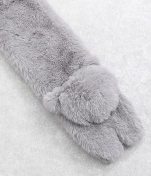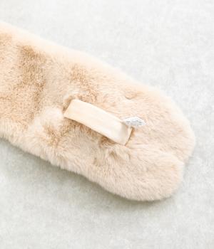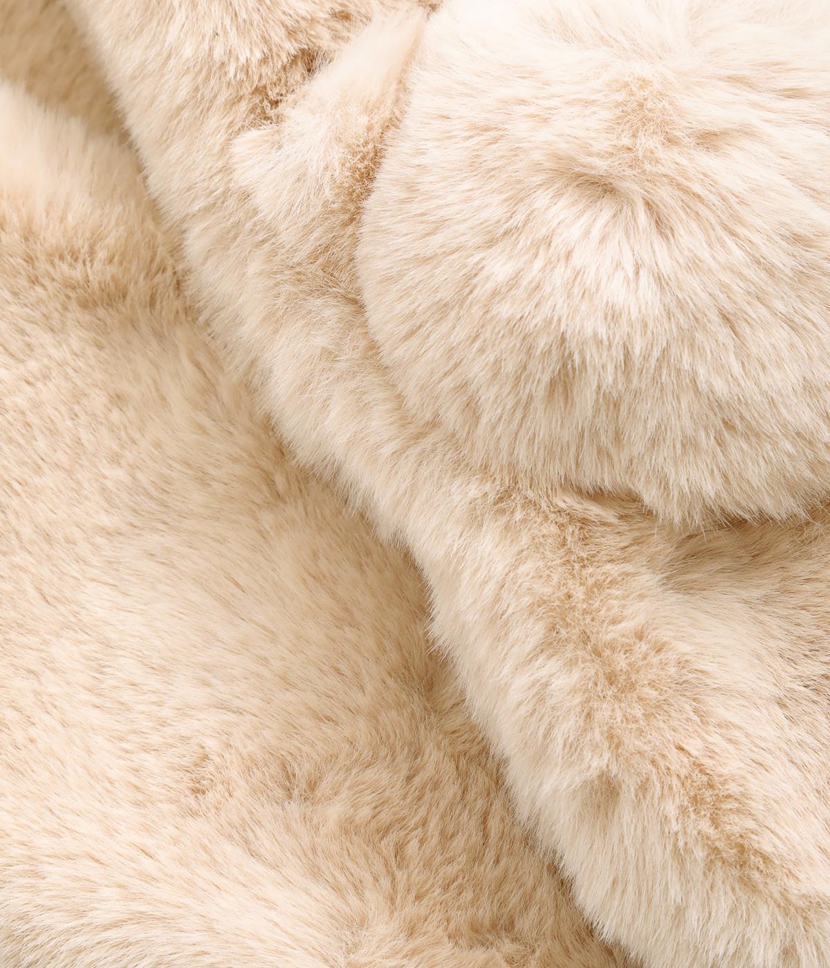 まるで首元にネコちゃんが寄り添っているような、愛らしいファーティペット。通しループ仕様で、着脱も簡単です。先端にはネコの足をイメージしたデザインをあしらい、丸みのあるフォルムがさらにかわいらしさプラス。冬の装いに遊び心を添えつつ、あたたかさも兼ね備えた一品。ネコ好きの方へのギフトにもおすすめです。