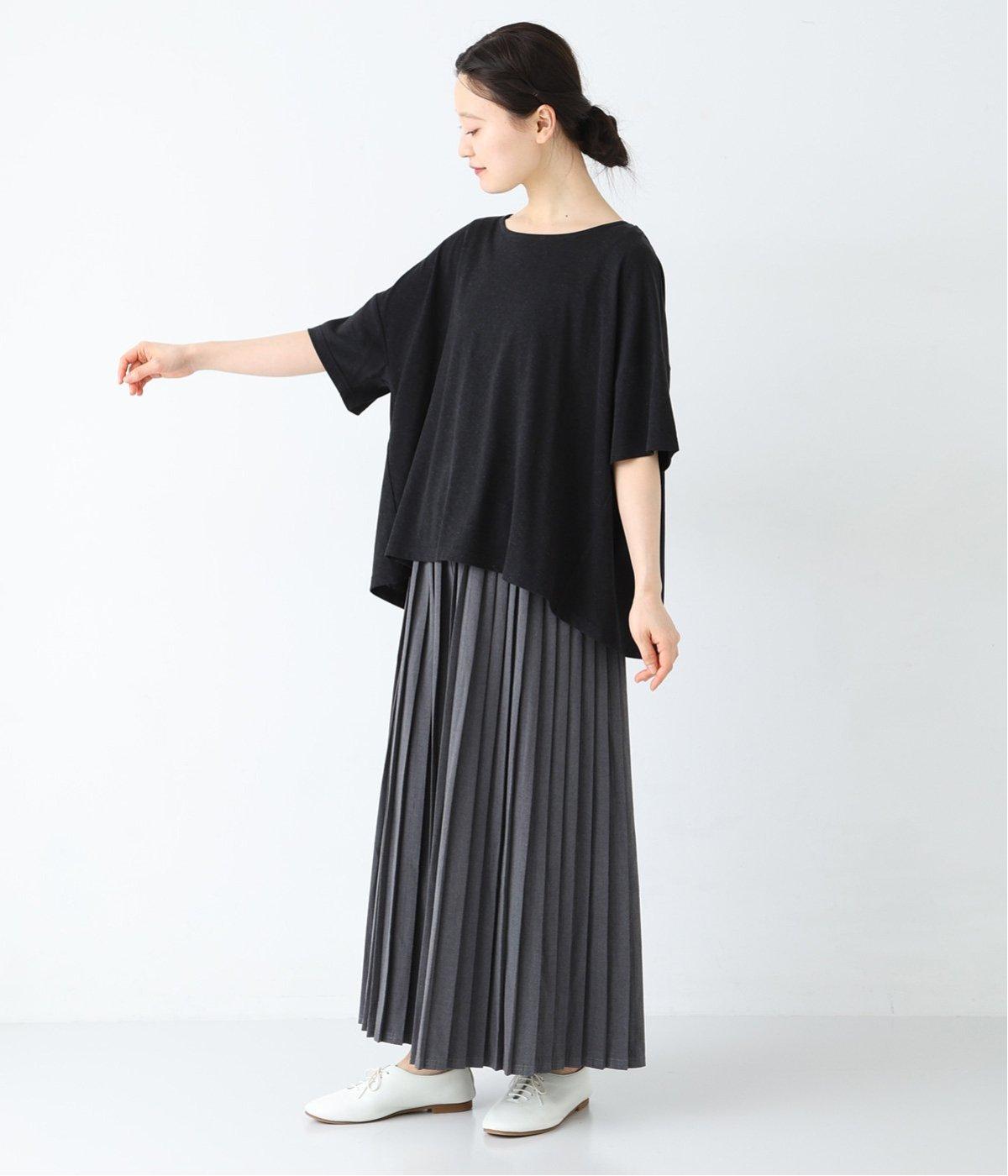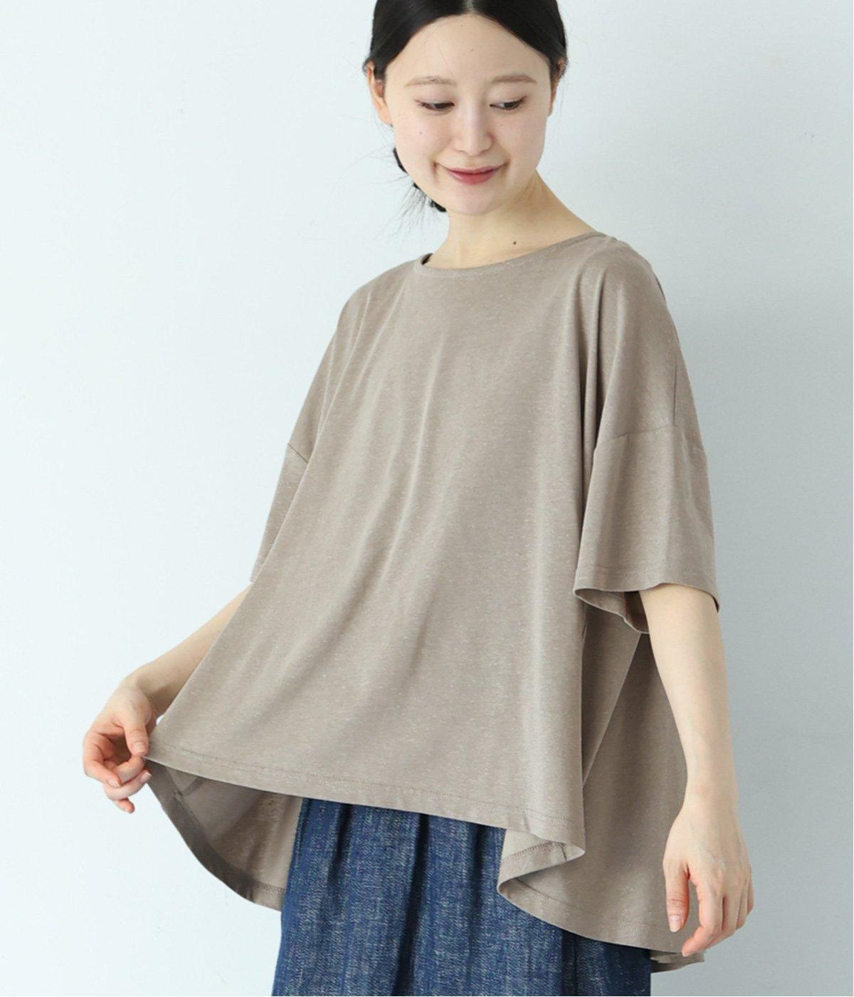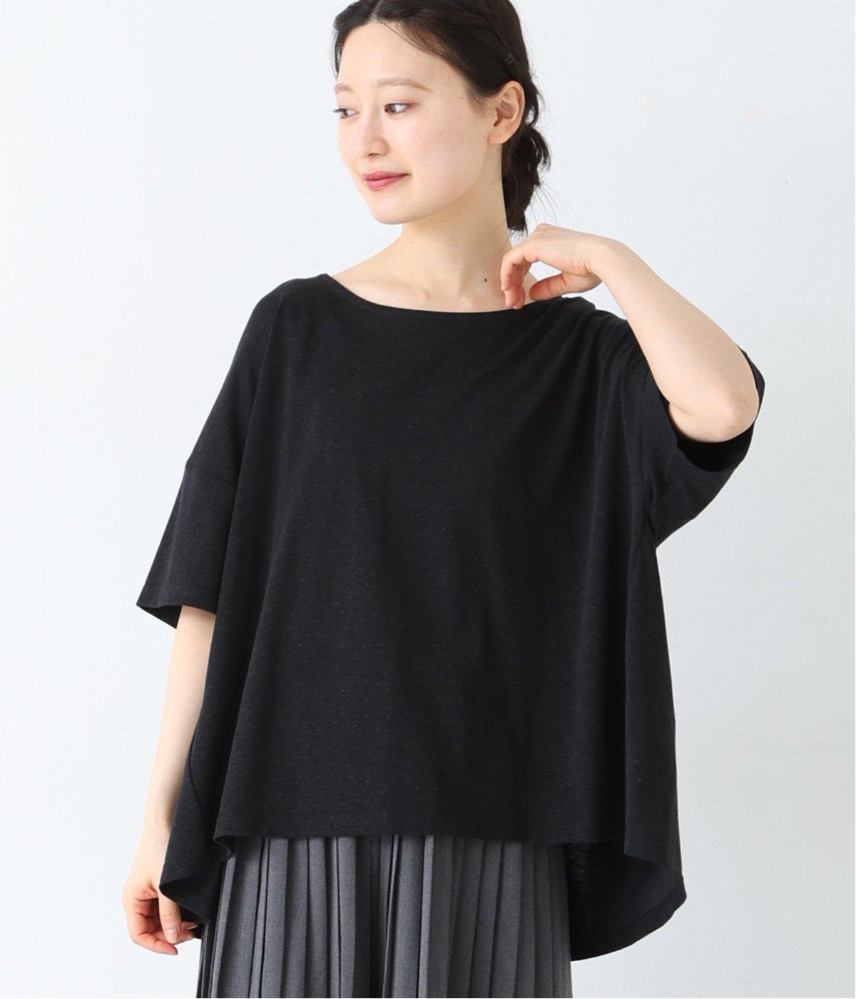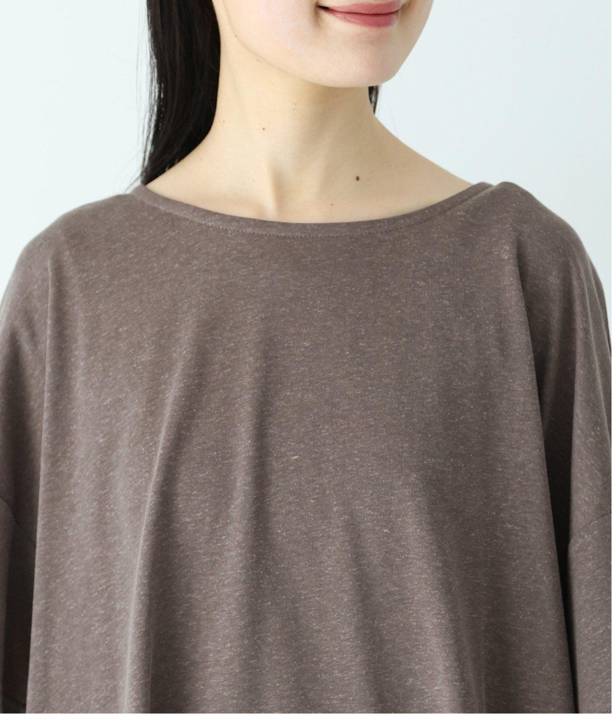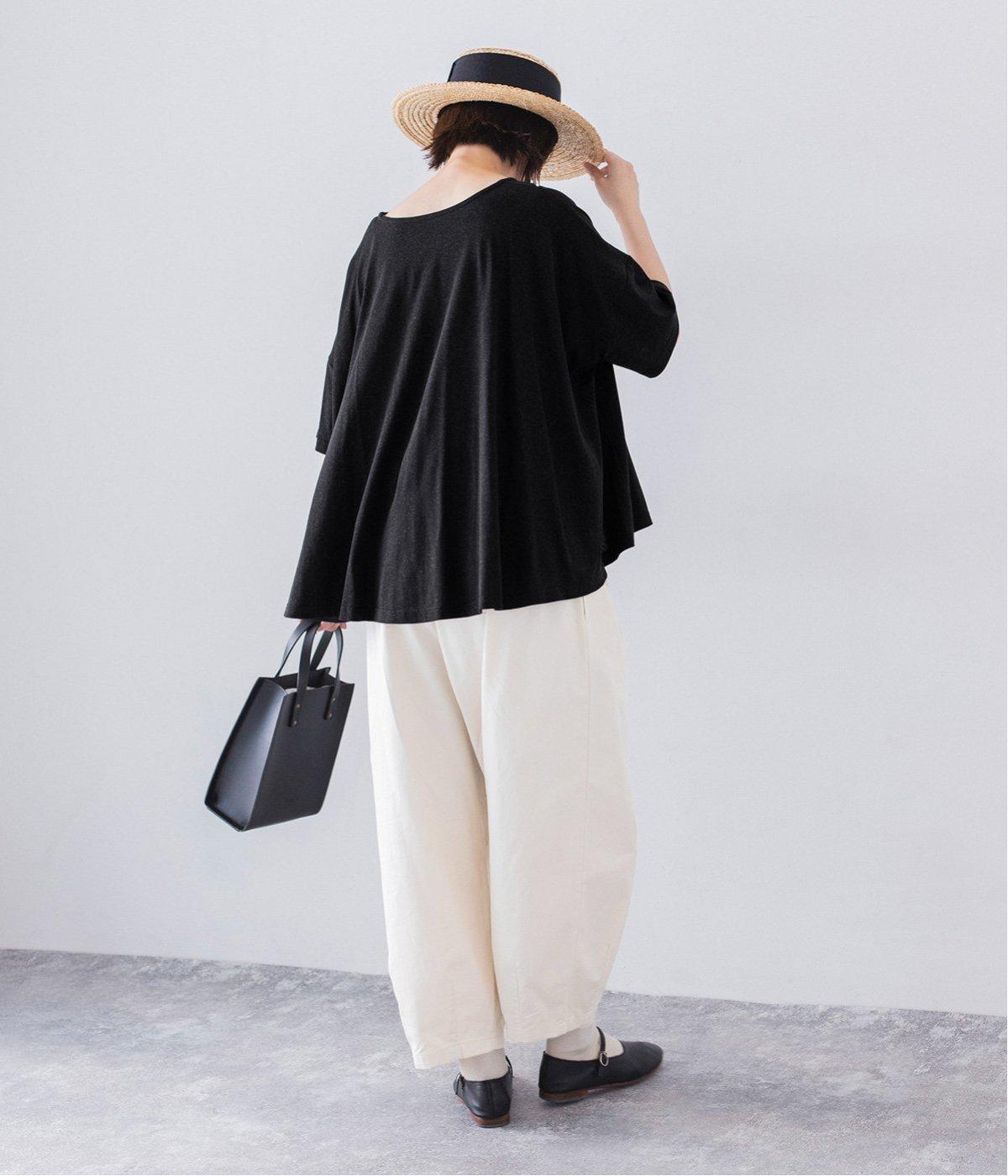 前はすっきりと、後ろは流れるようなドレープが目を引くフレアシルエットにデザインしています。ゆったりとしているので風通しがよく涼しい着心地。横に広めに開いた衿ぐりが大人フェミニンな印象です。インナーとしても合わせやすく、ロングシーズン活躍します。