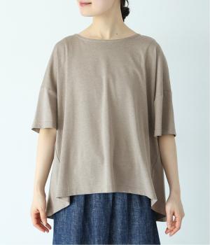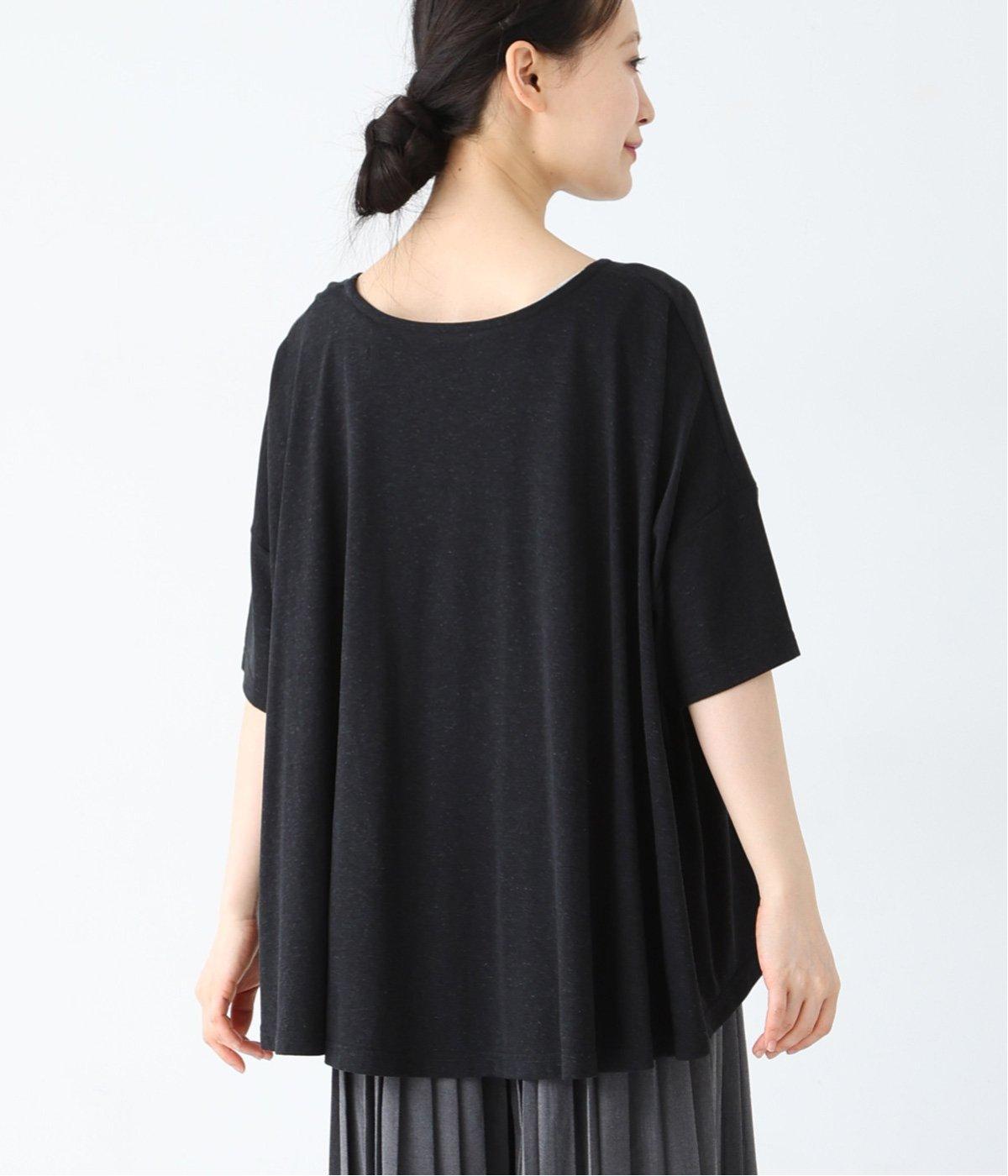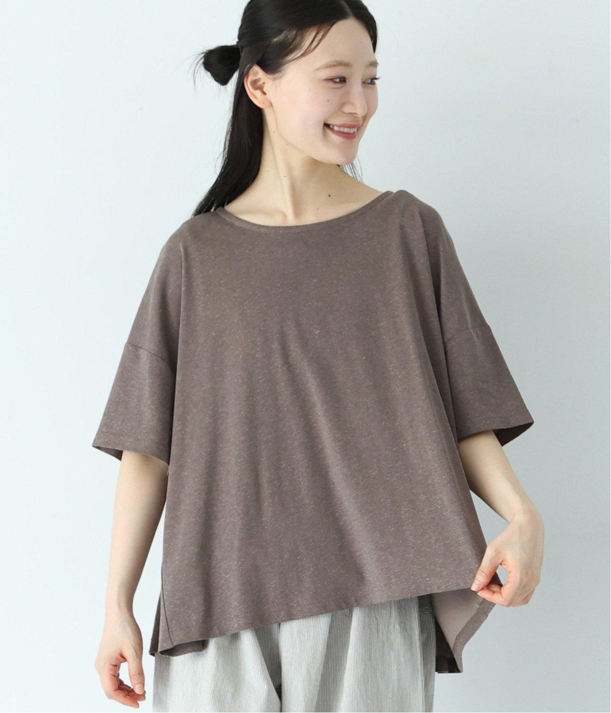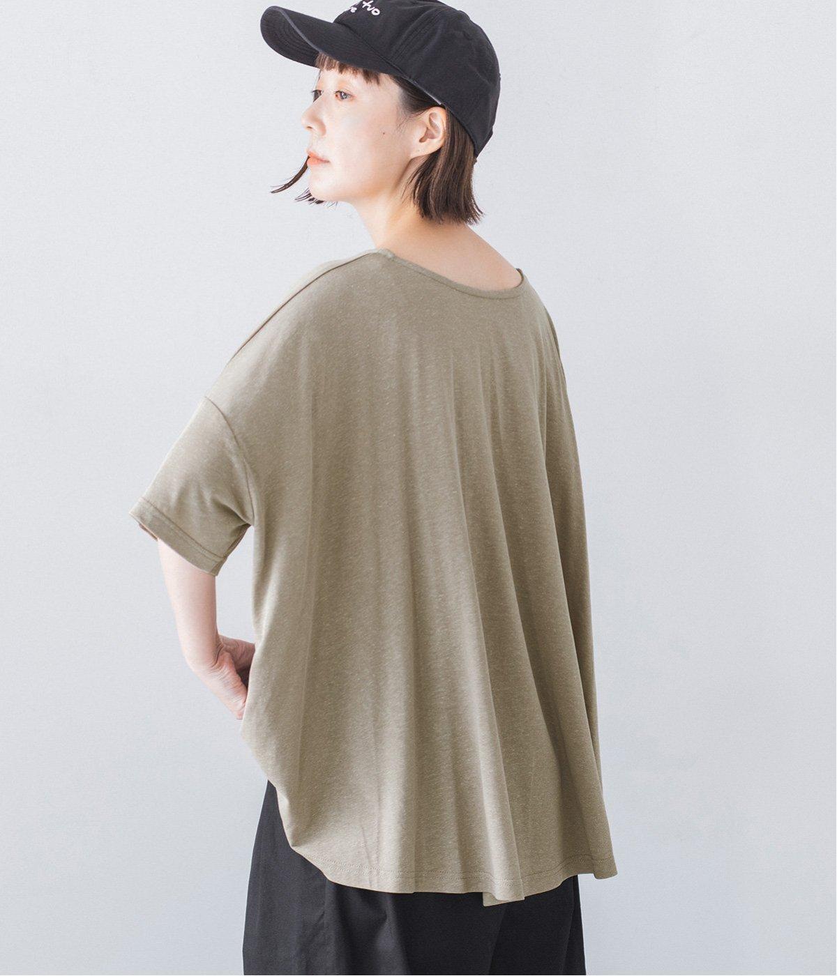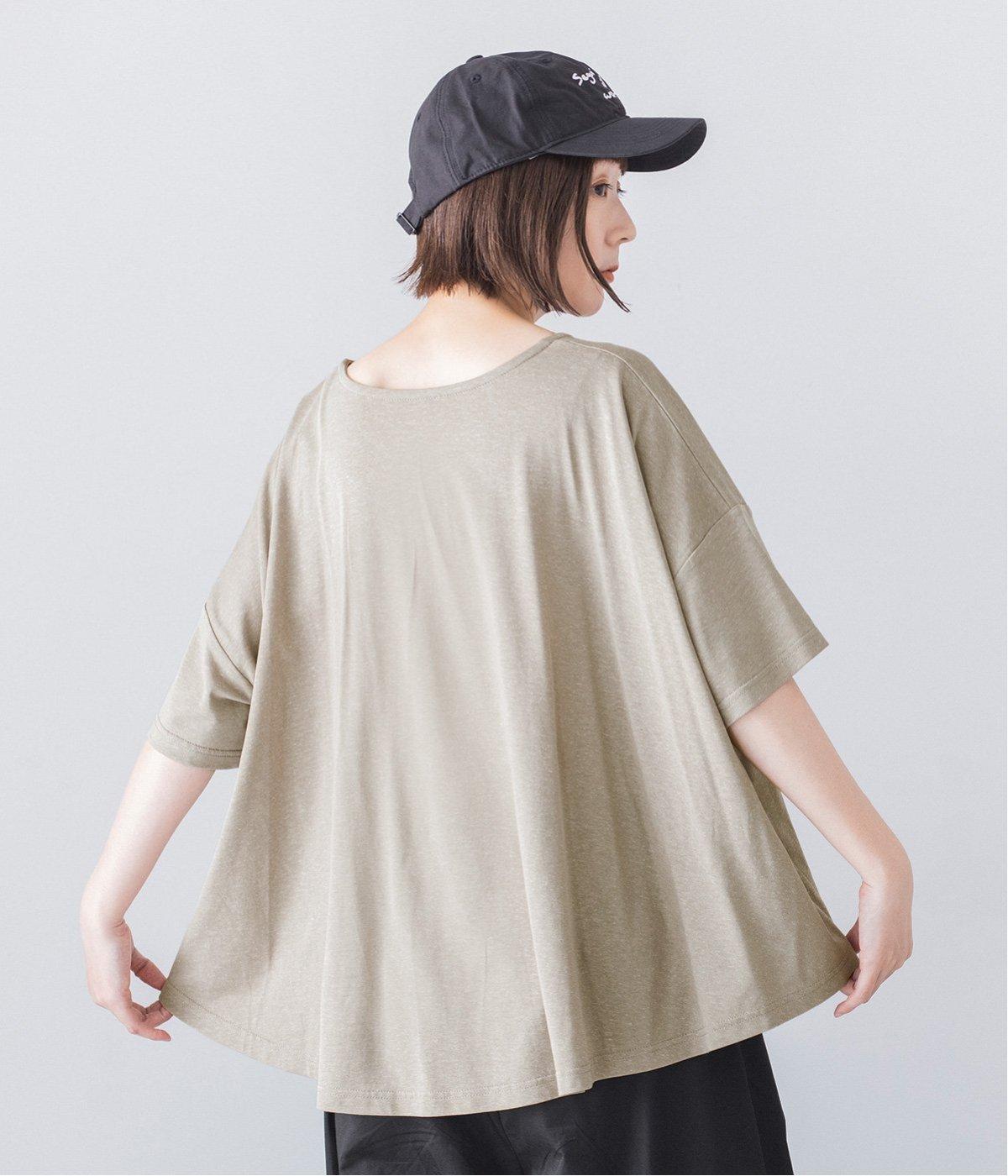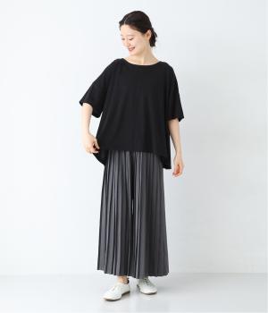 前はすっきりと、後ろは流れるようなドレープが目を引くフレアシルエットにデザインしています。ゆったりとしているので風通しがよく涼しい着心地。横に広めに開いた衿ぐりが大人フェミニンな印象です。インナーとしても合わせやすく、ロングシーズン活躍します。
