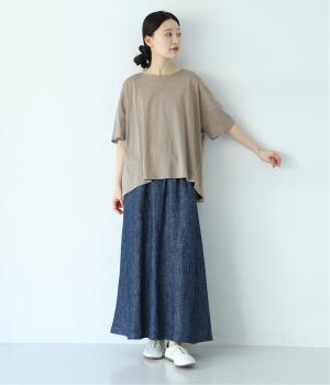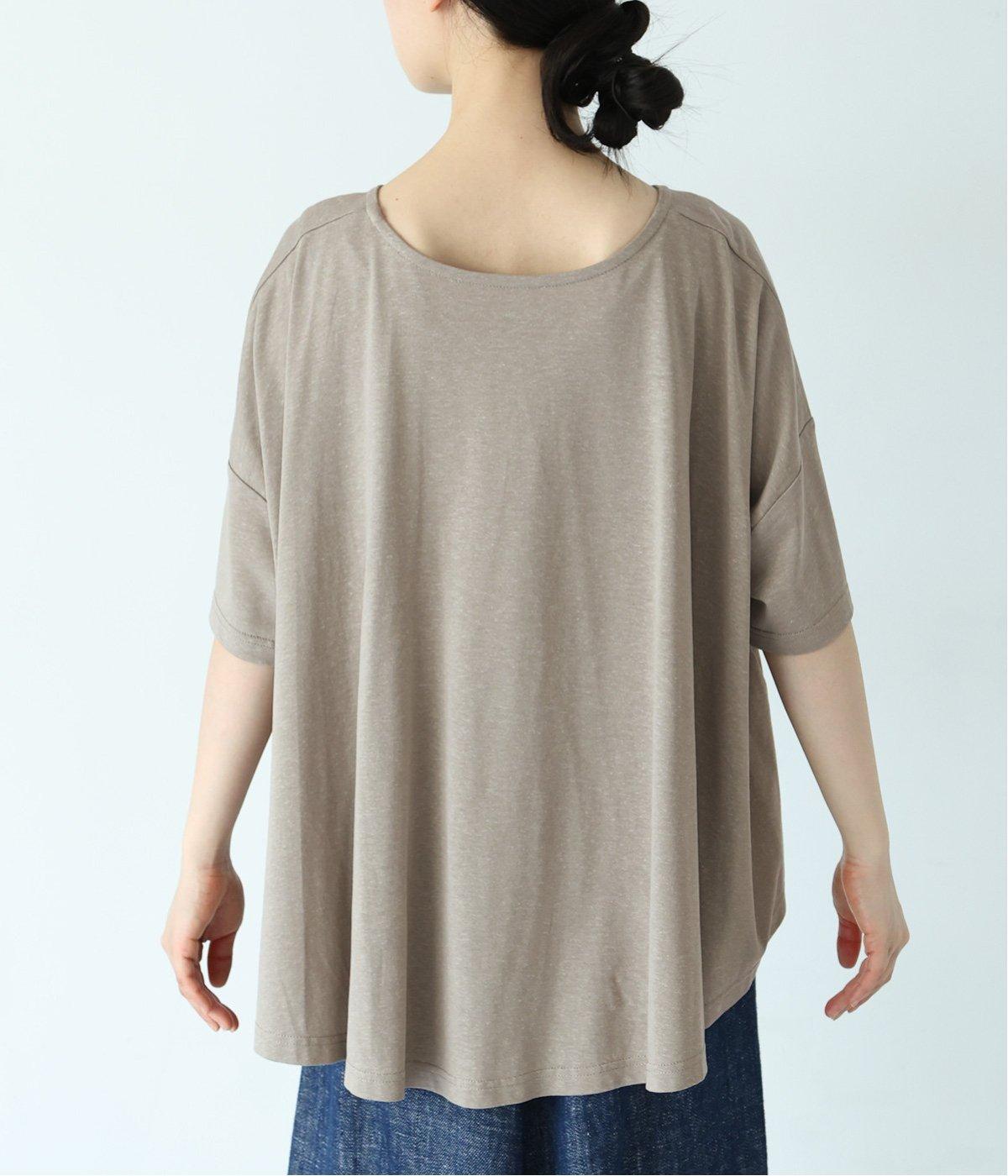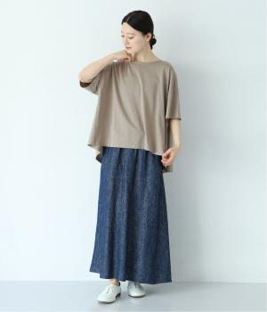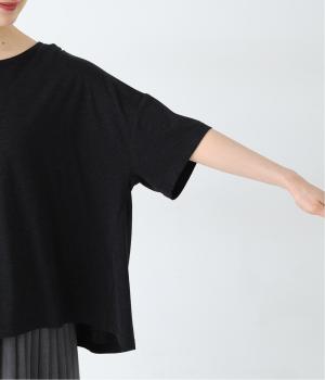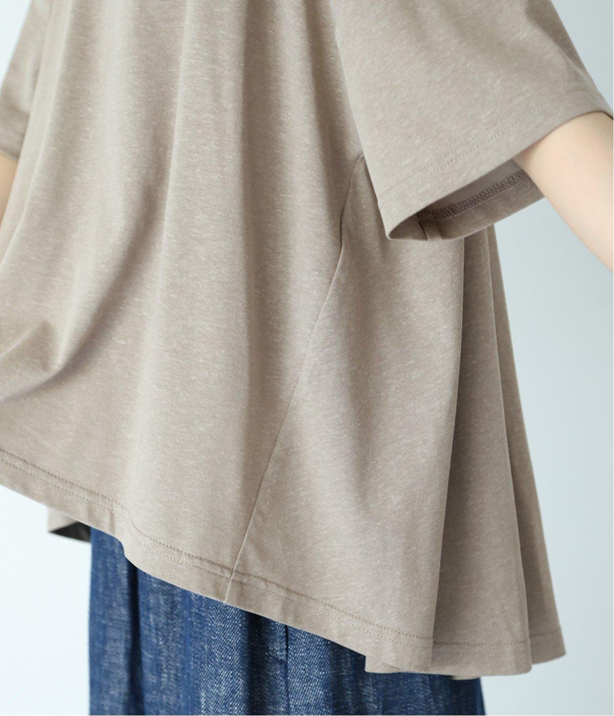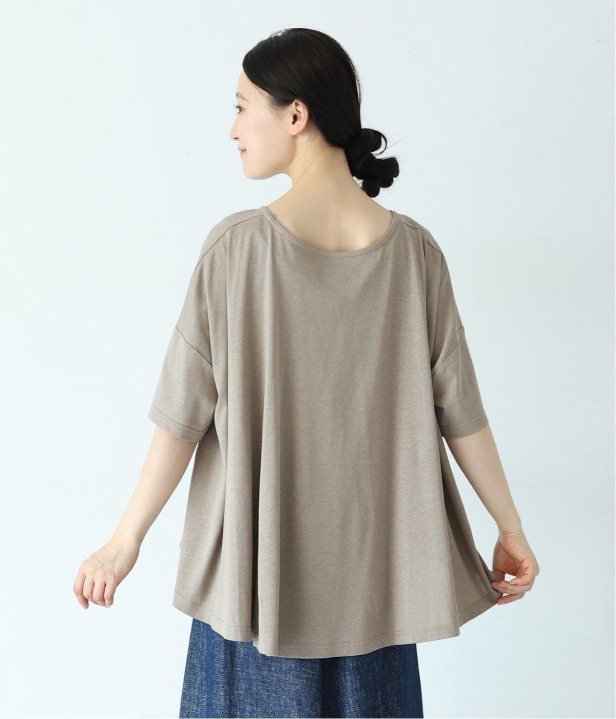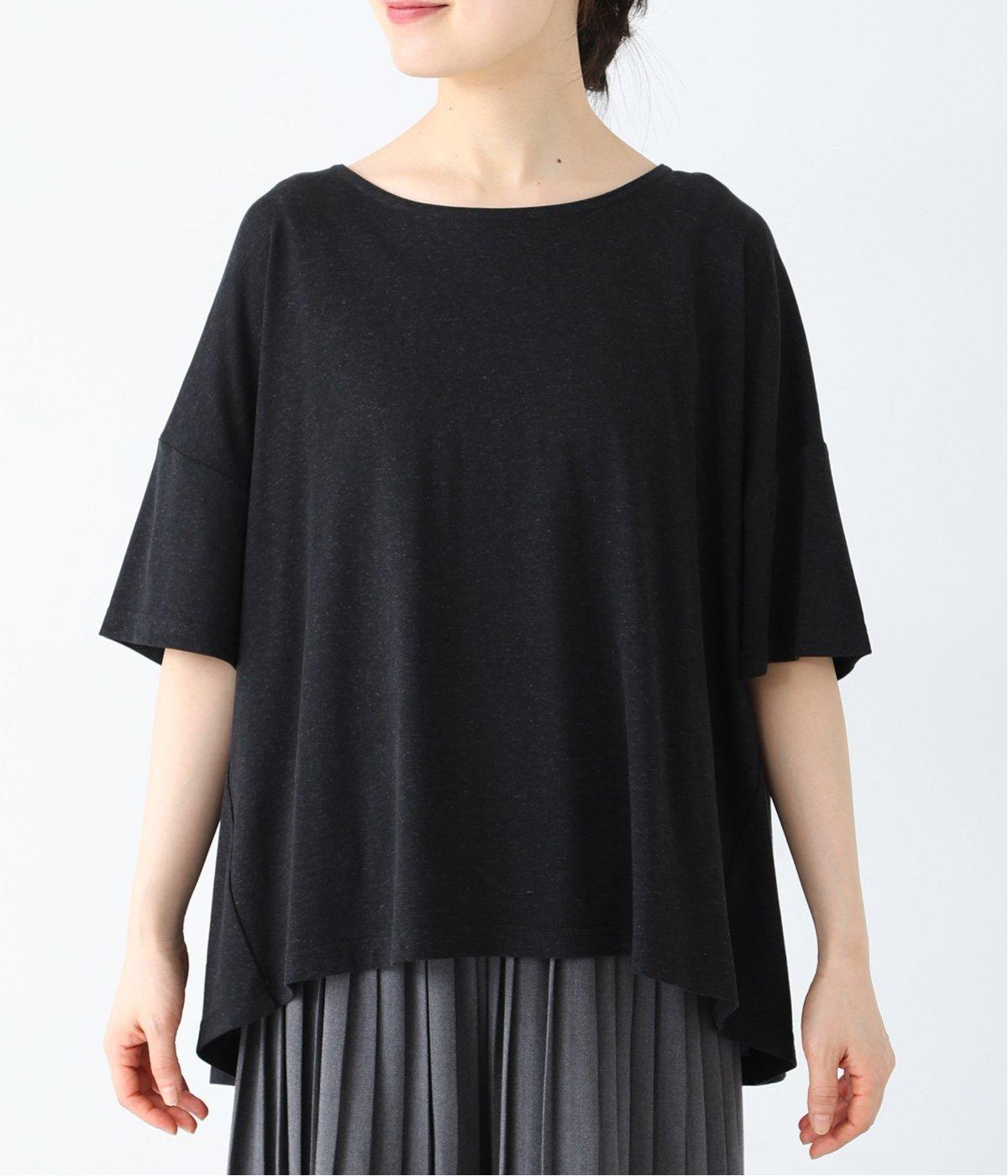 前はすっきりと、後ろは流れるようなドレープが目を引くフレアシルエットにデザインしています。ゆったりとしているので風通しがよく涼しい着心地。横に広めに開いた衿ぐりが大人フェミニンな印象です。インナーとしても合わせやすく、ロングシーズン活躍します。