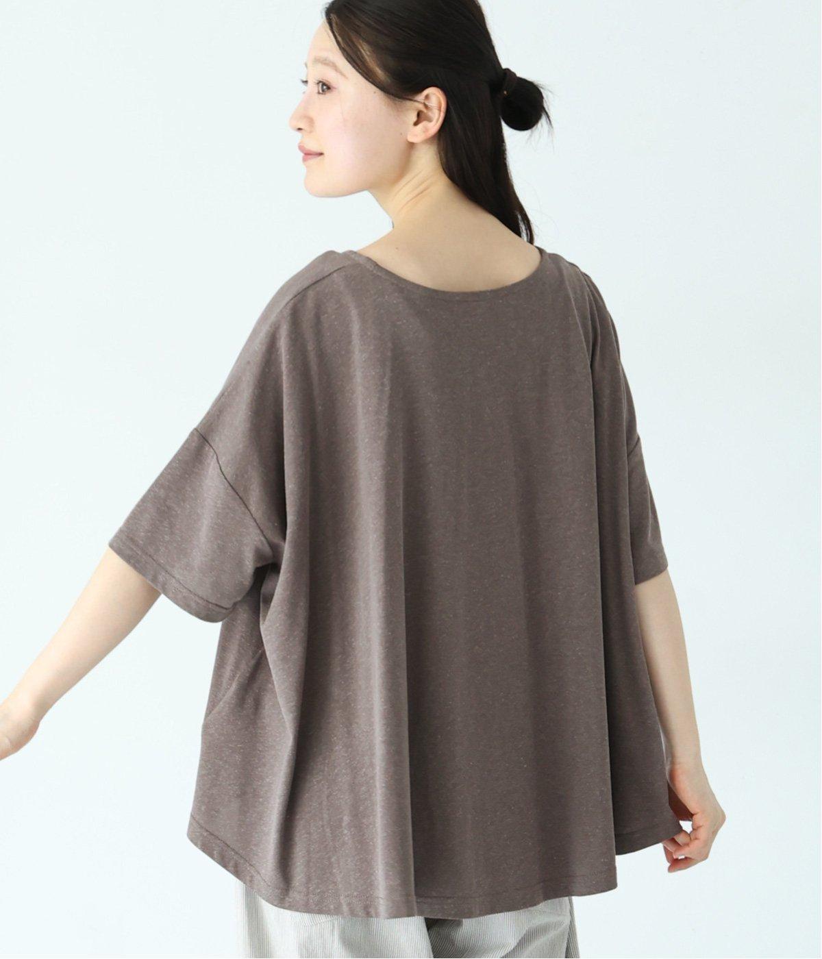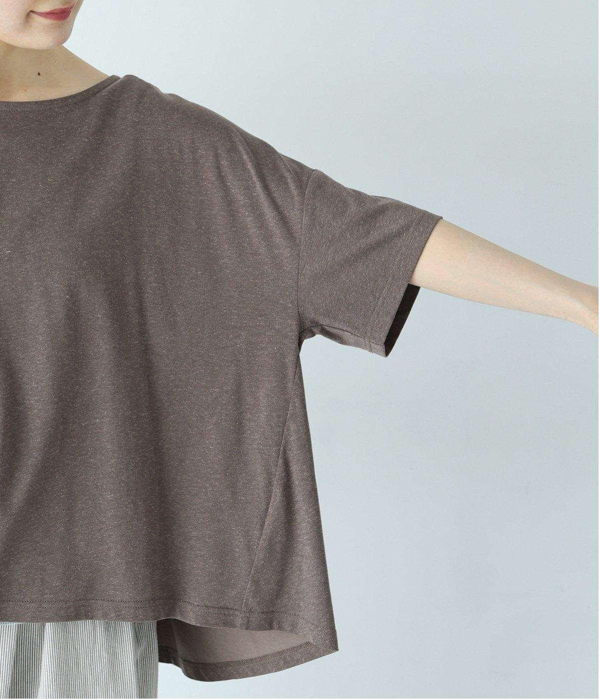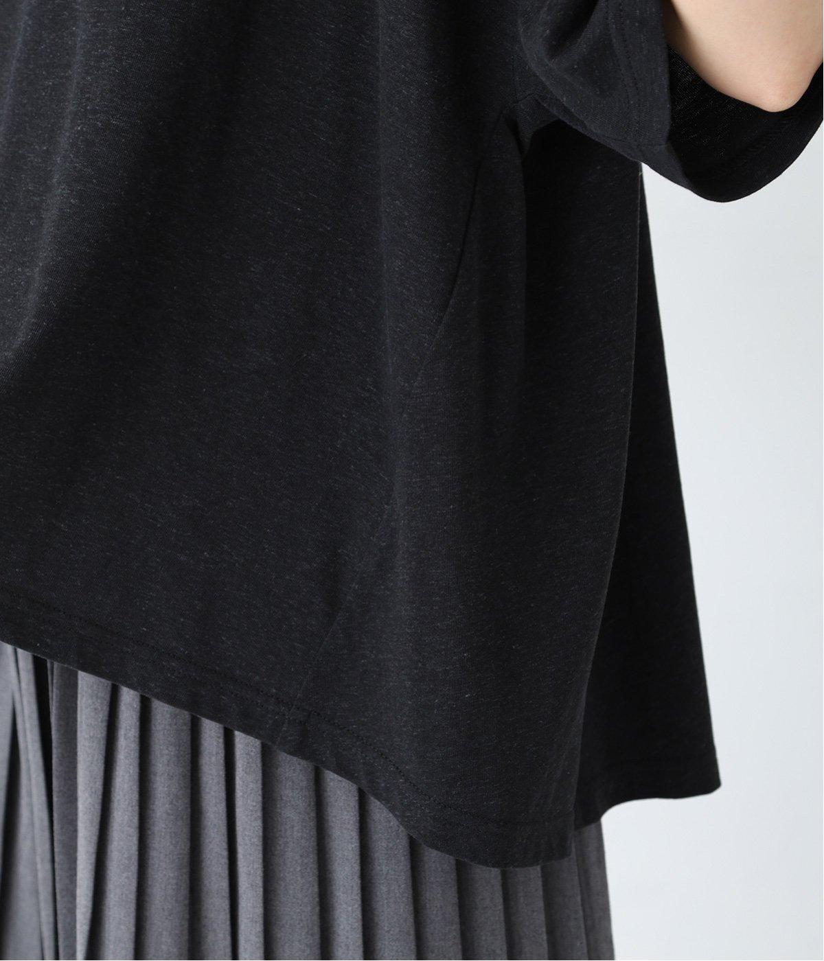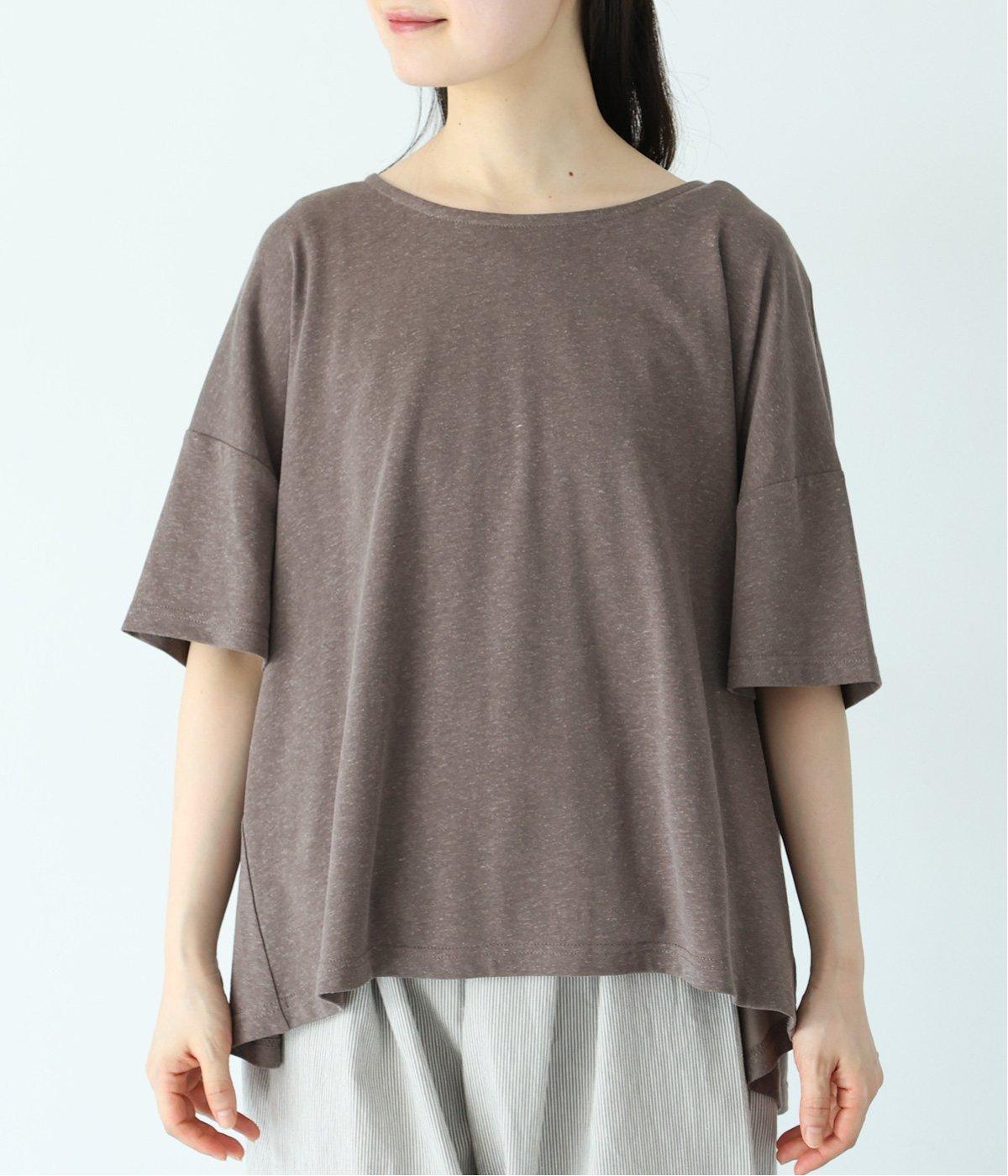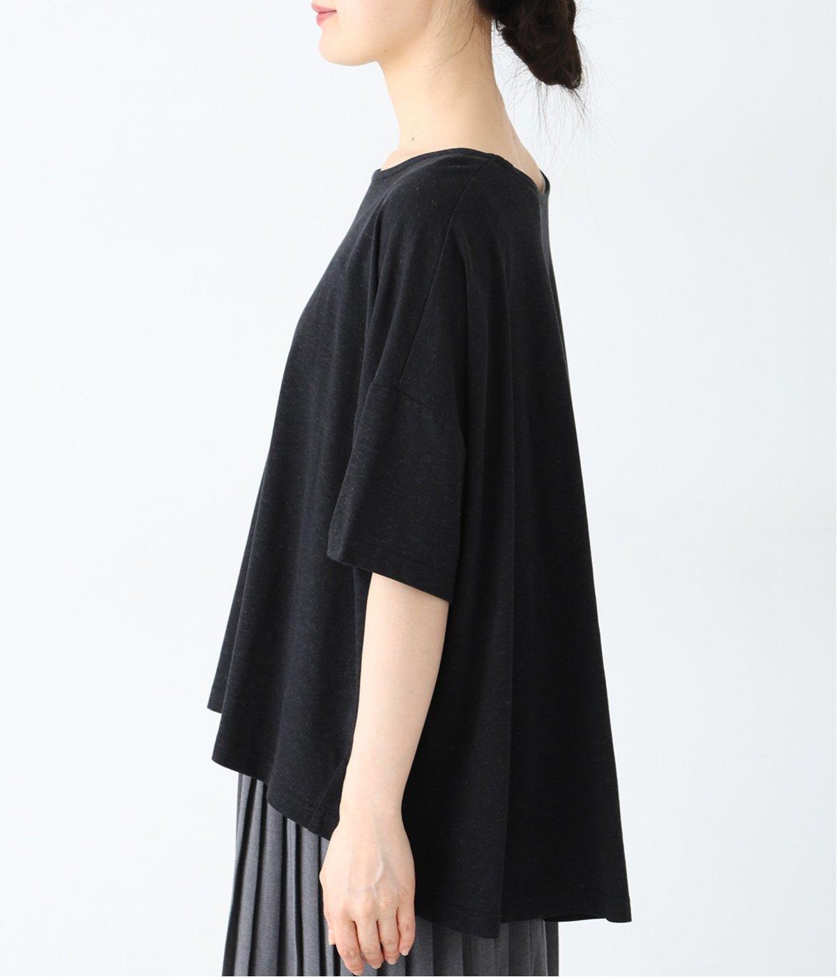 前はすっきりと、後ろは流れるようなドレープが目を引くフレアシルエットにデザインしています。ゆったりとしているので風通しがよく涼しい着心地。横に広めに開いた衿ぐりが大人フェミニンな印象です。インナーとしても合わせやすく、ロングシーズン活躍します。