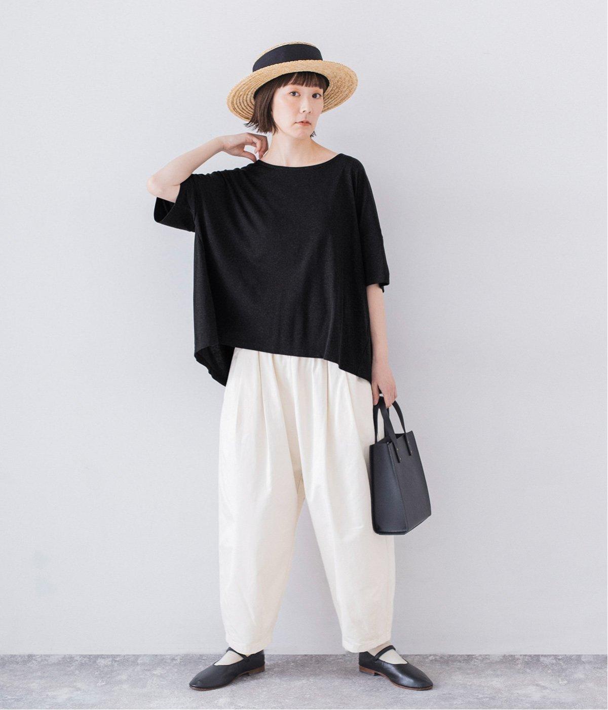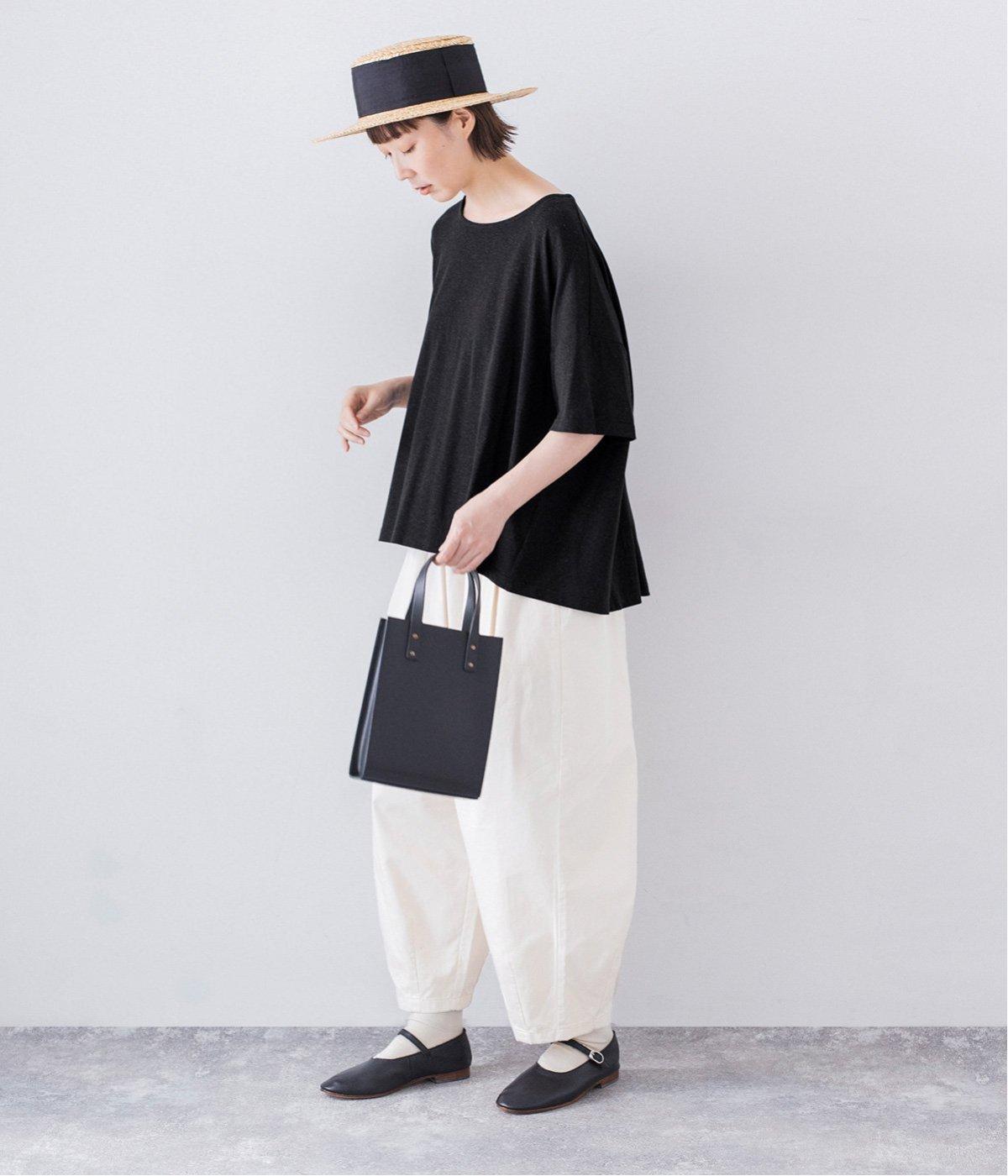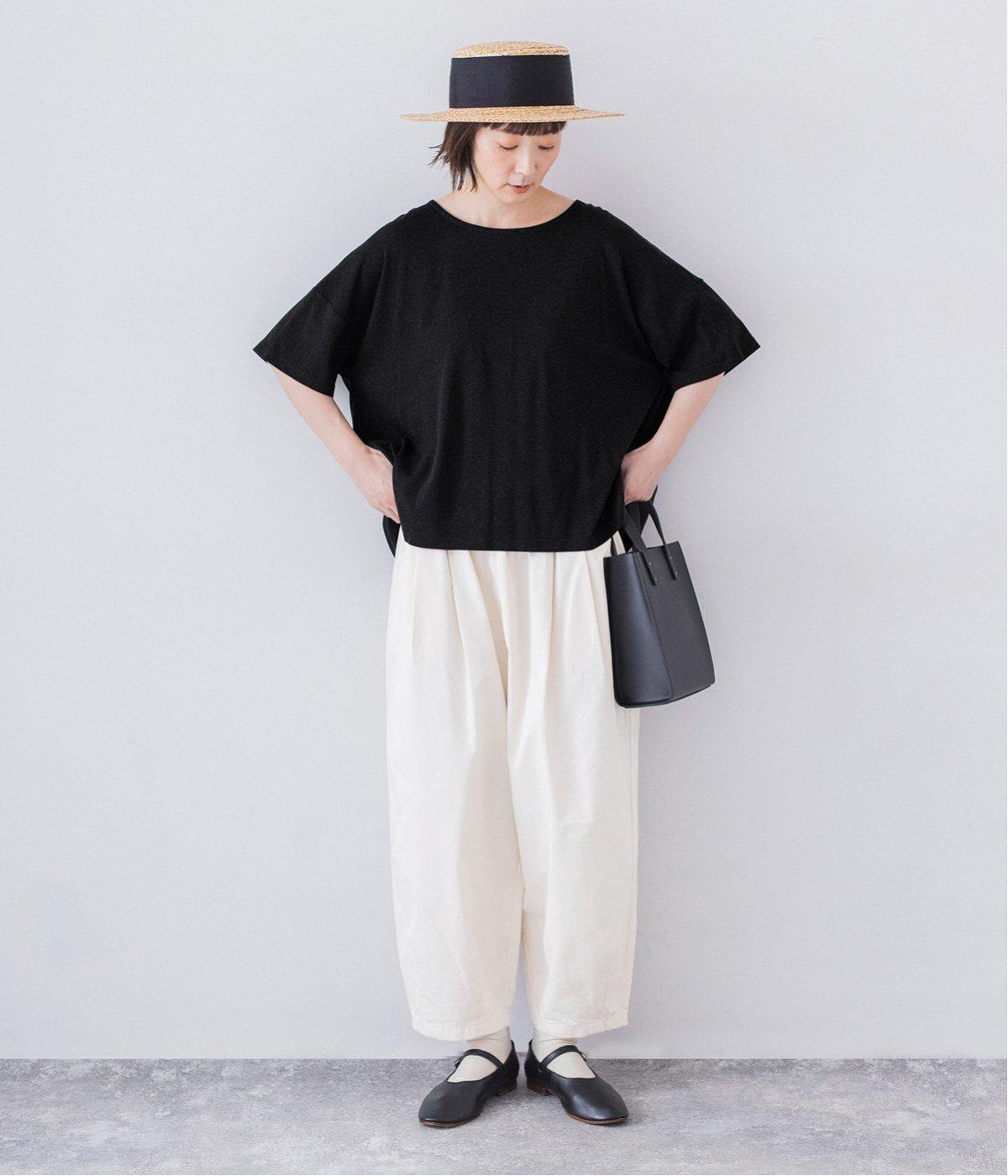 さらりとしていて肌離れがよく、暑い季節でも快適に着用できるコットンリネン混素材。リネンならではのナチュラルな表情が、コーディネートに奥行きをもたらします。