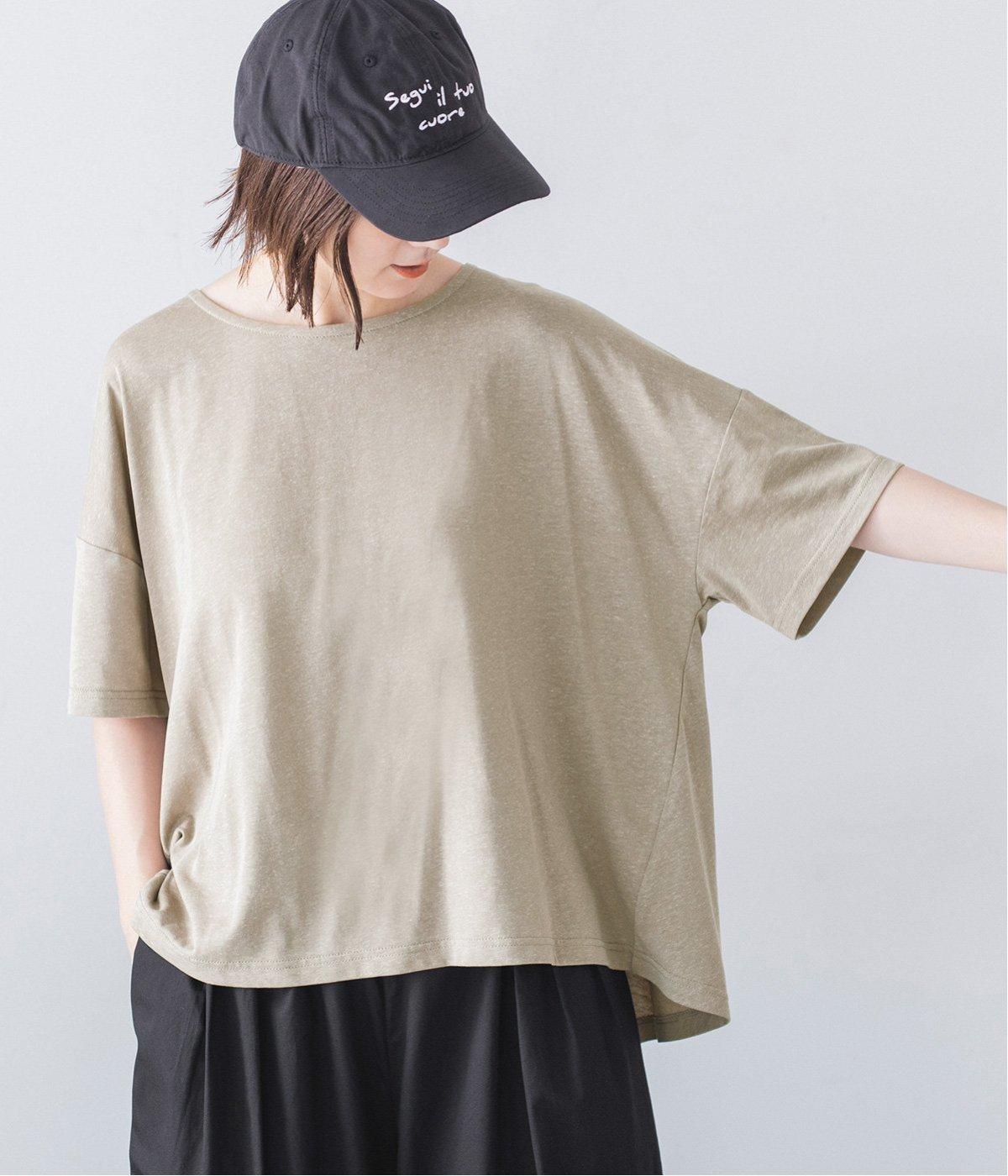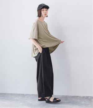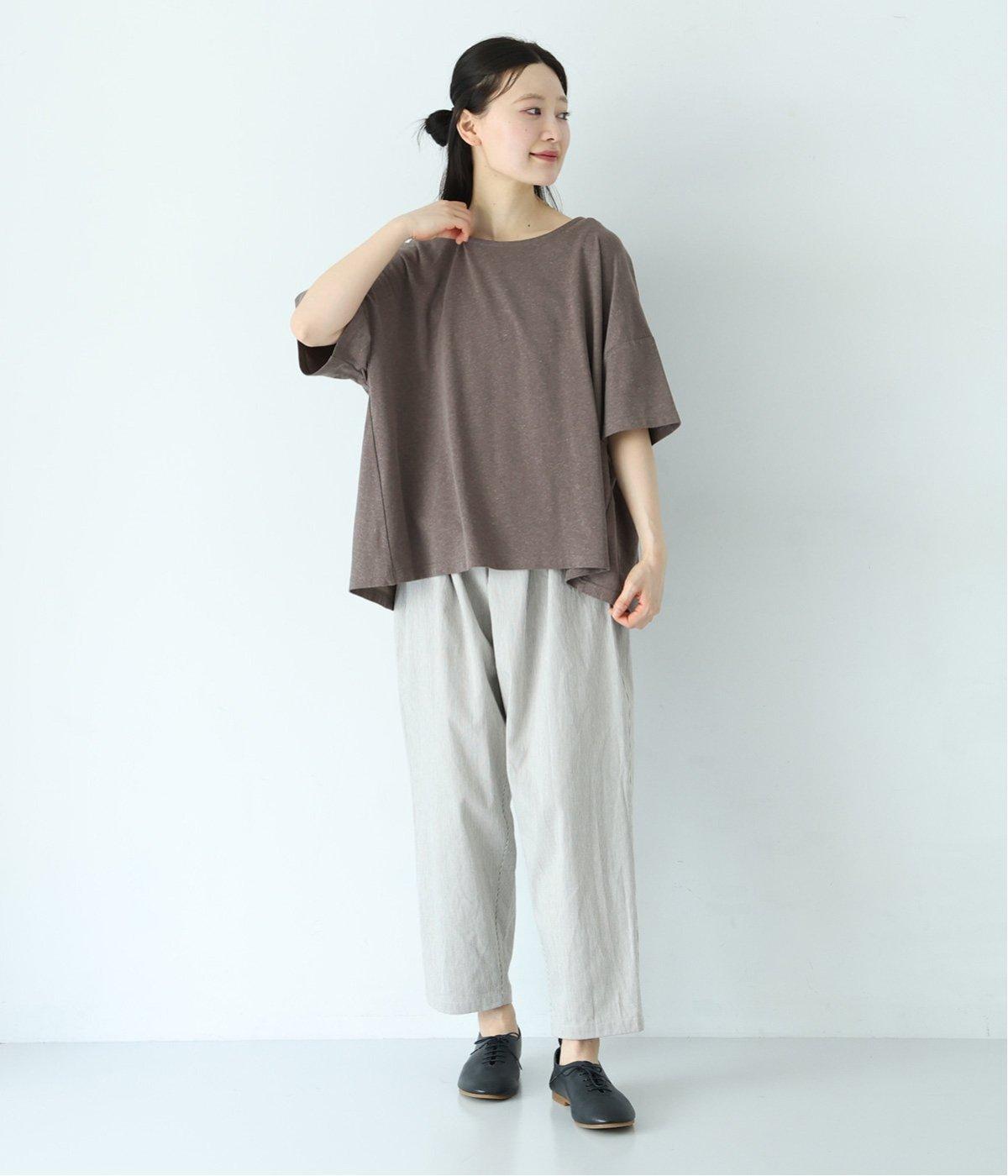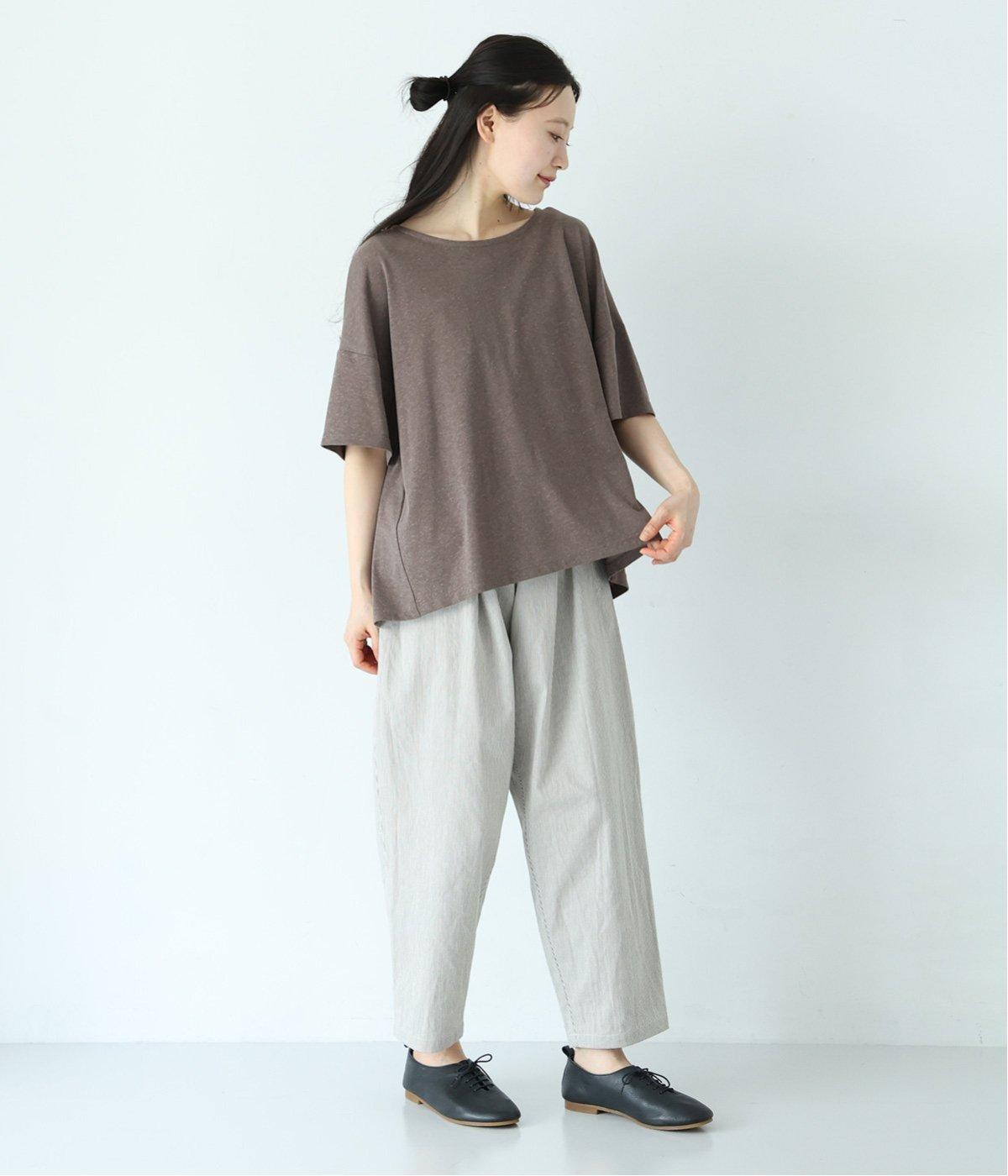 さらりとしていて肌離れがよく、暑い季節でも快適に着用できるコットンリネン混素材。リネンならではのナチュラルな表情が、コーディネートに奥行きをもたらします。
