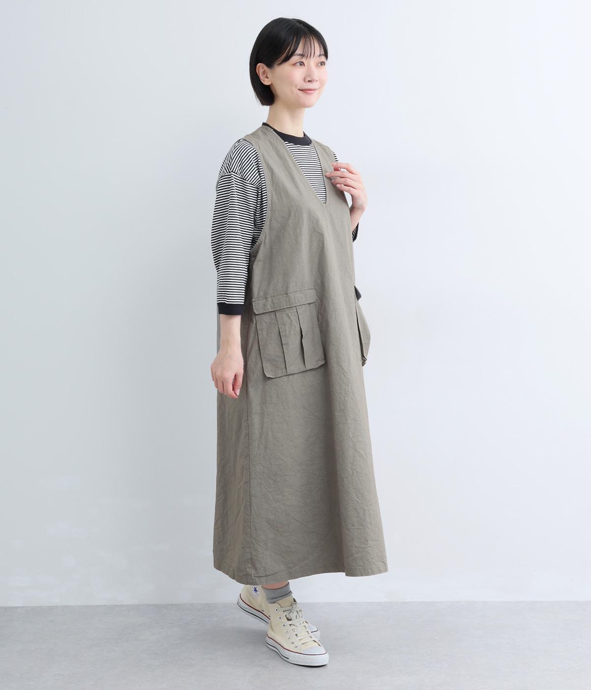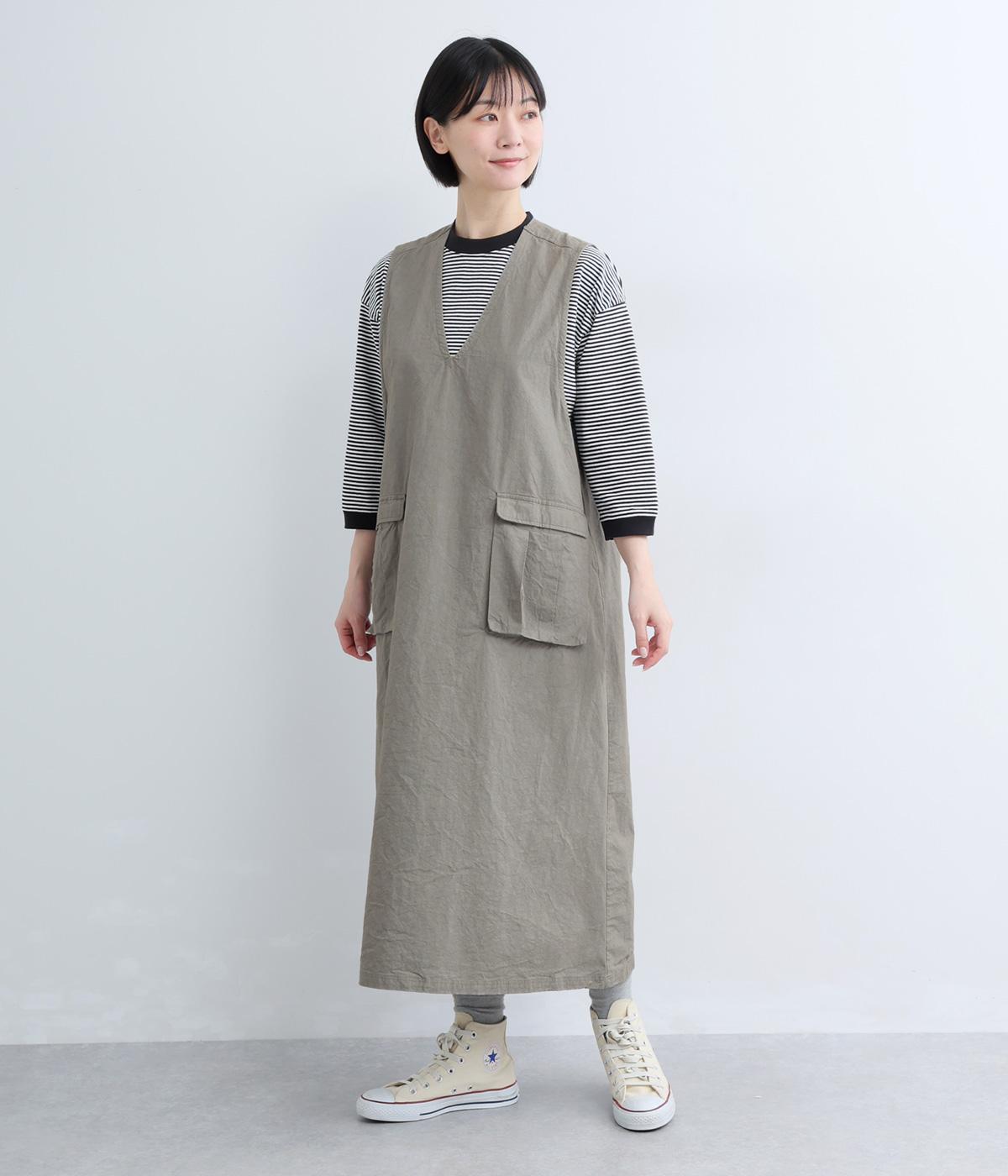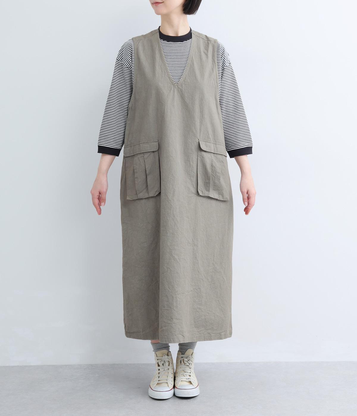 コットンポケット付きジャンパースカート(グレー-F)