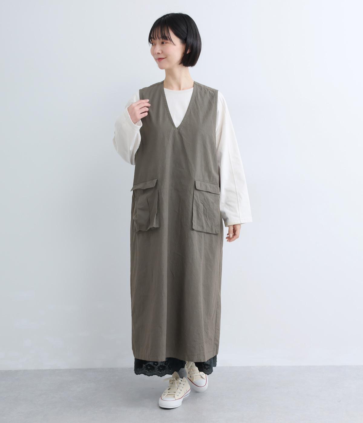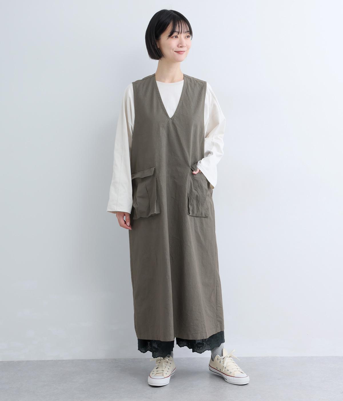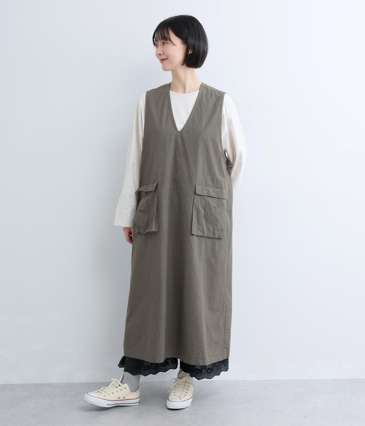 コットンポケット付きジャンパースカート(グレー-F)