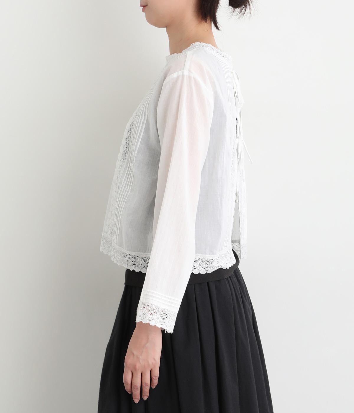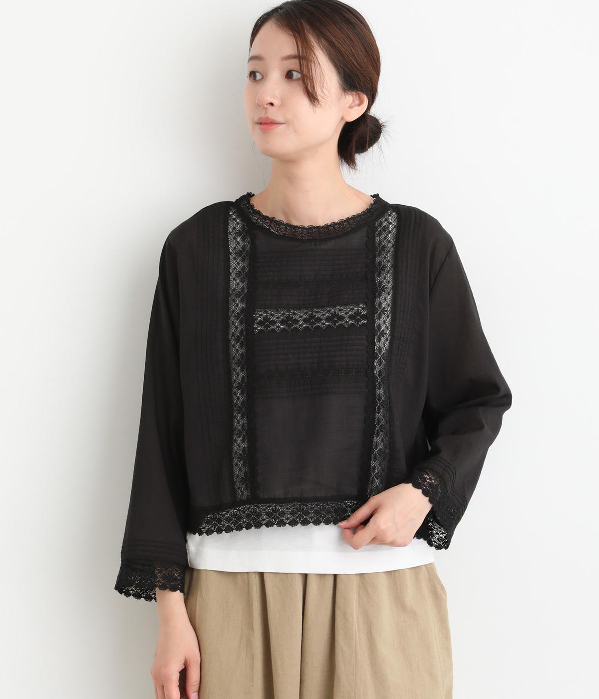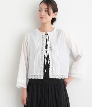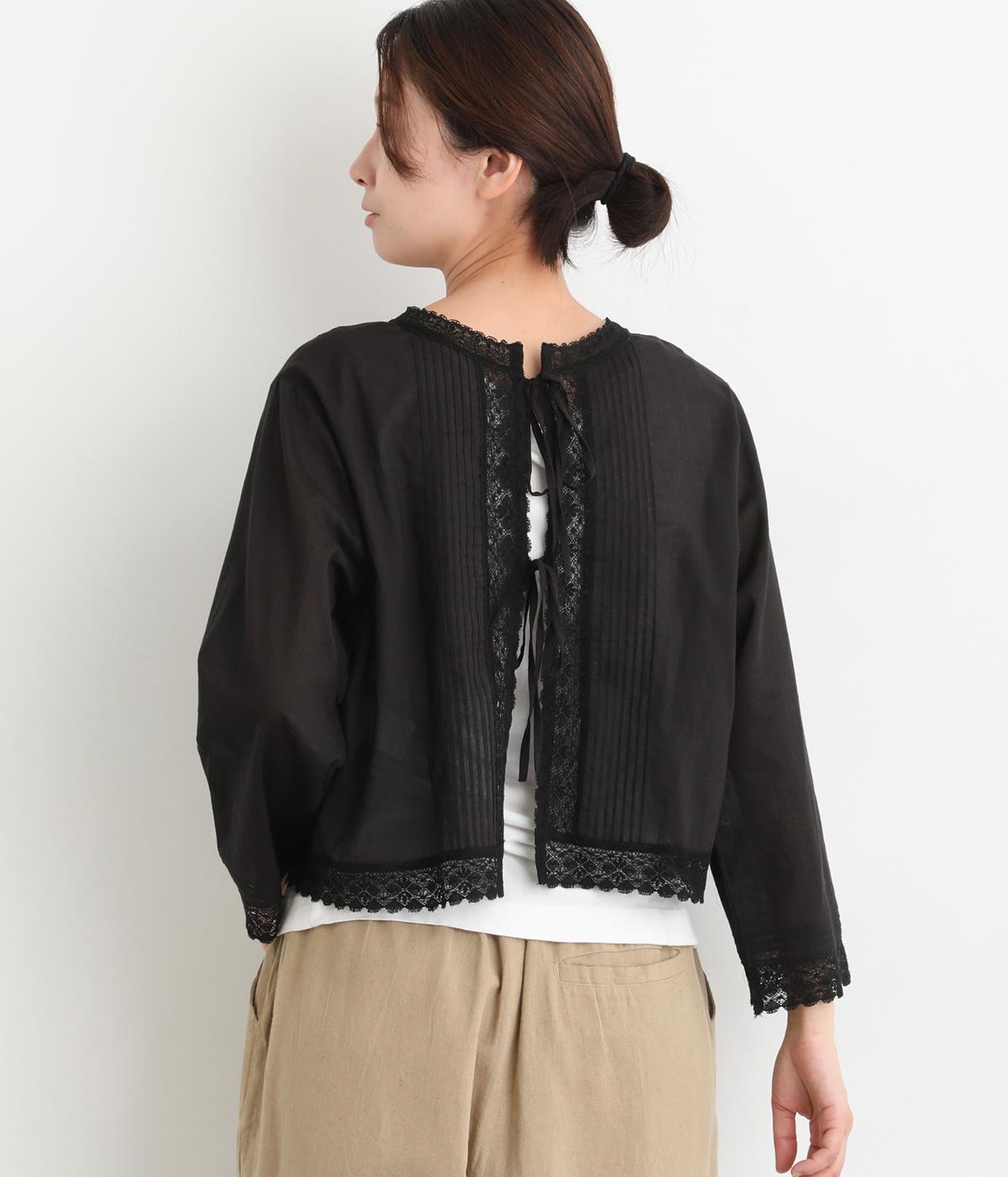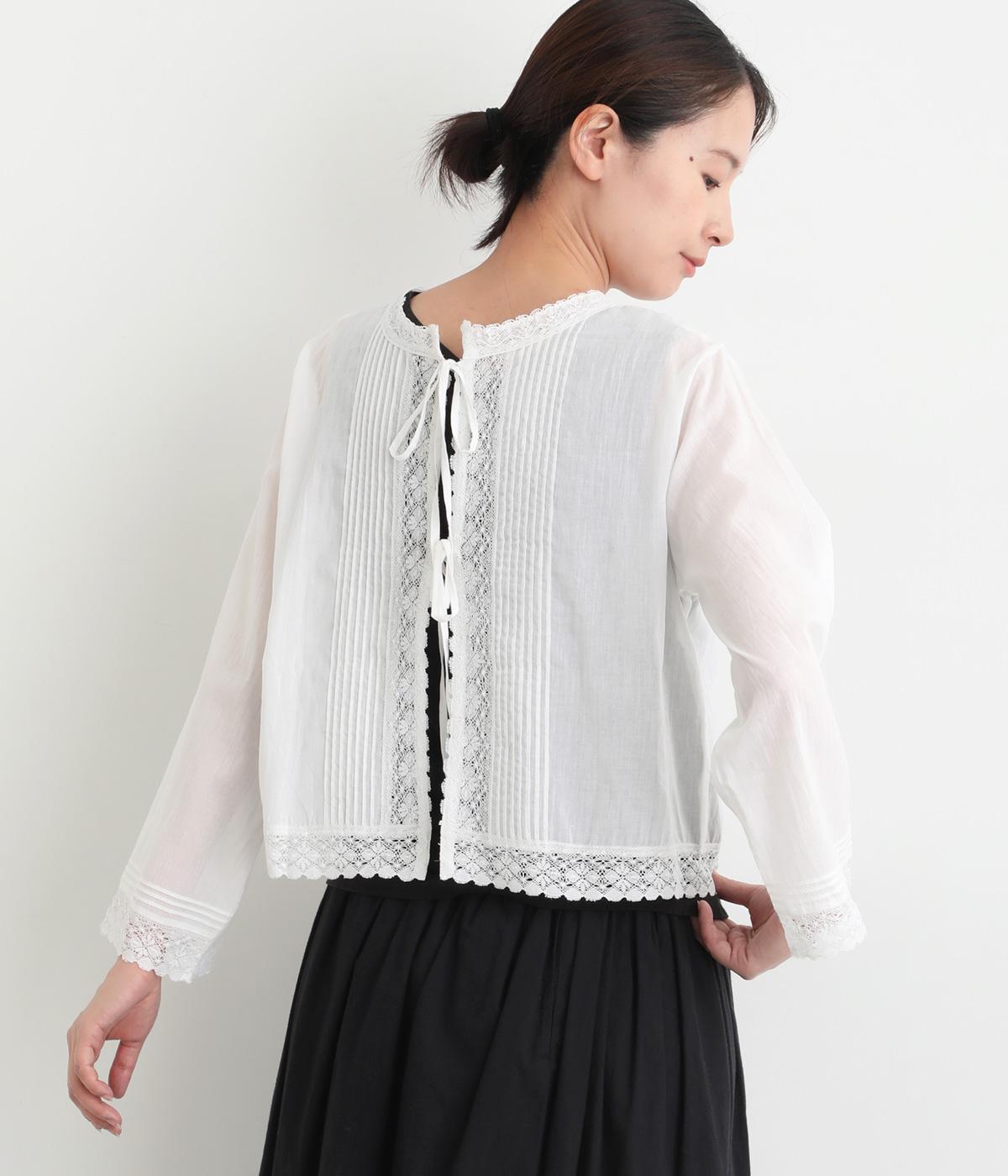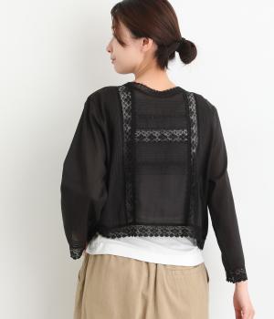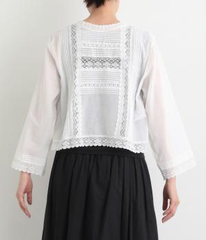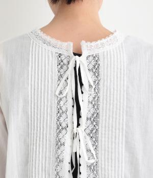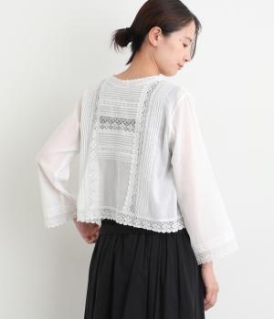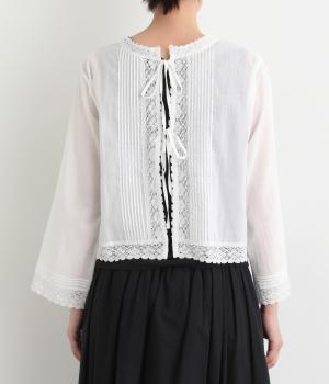 繊細な生地感にレースが映えるブラウスを、前後どちらでも着られる2wayに仕立てました。さっと重ねるだけで装いに軽やかな華やぎを添えます。短めの着丈でボトムスとのバランスがとりやすく、さまざまなスタイリングになじみます。