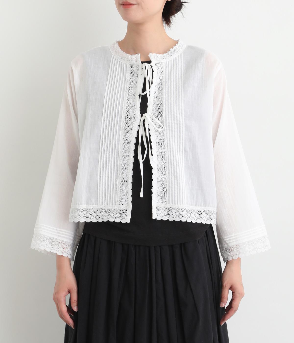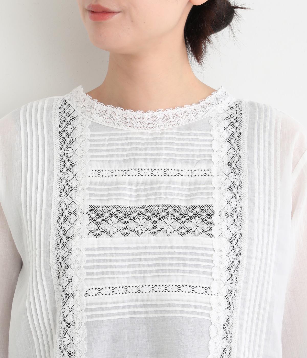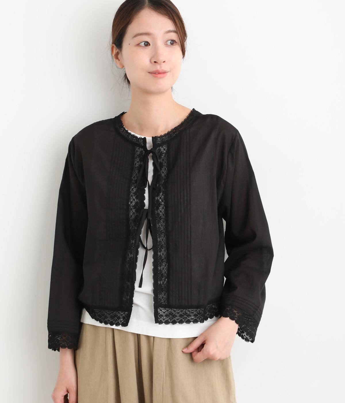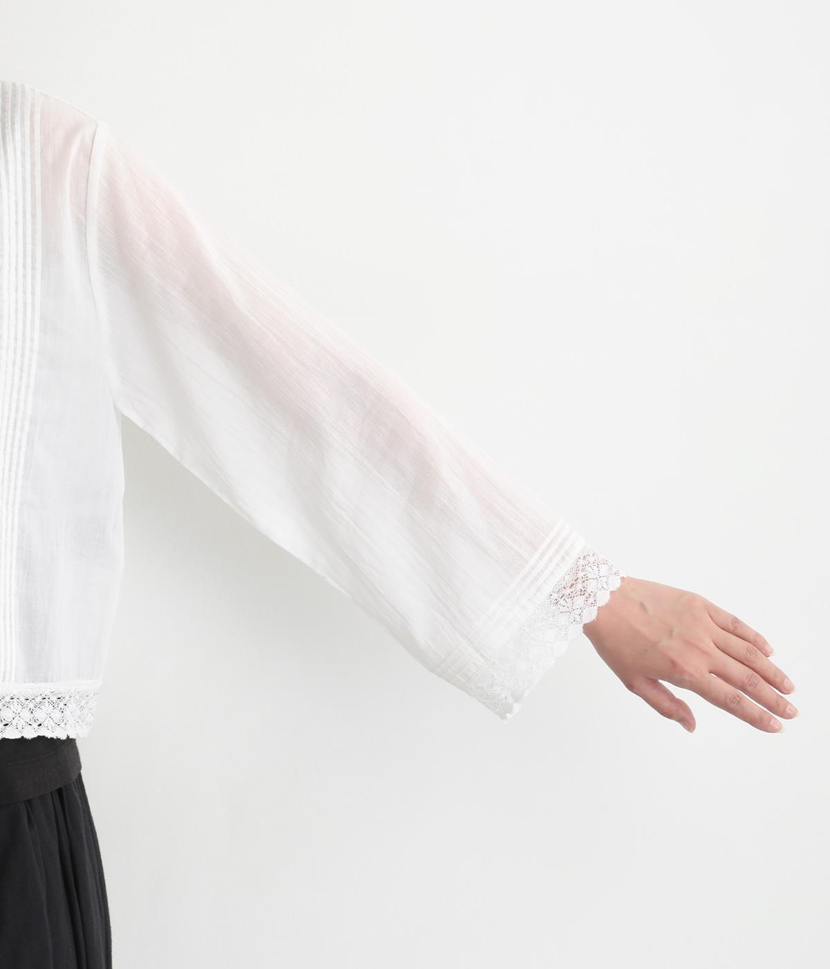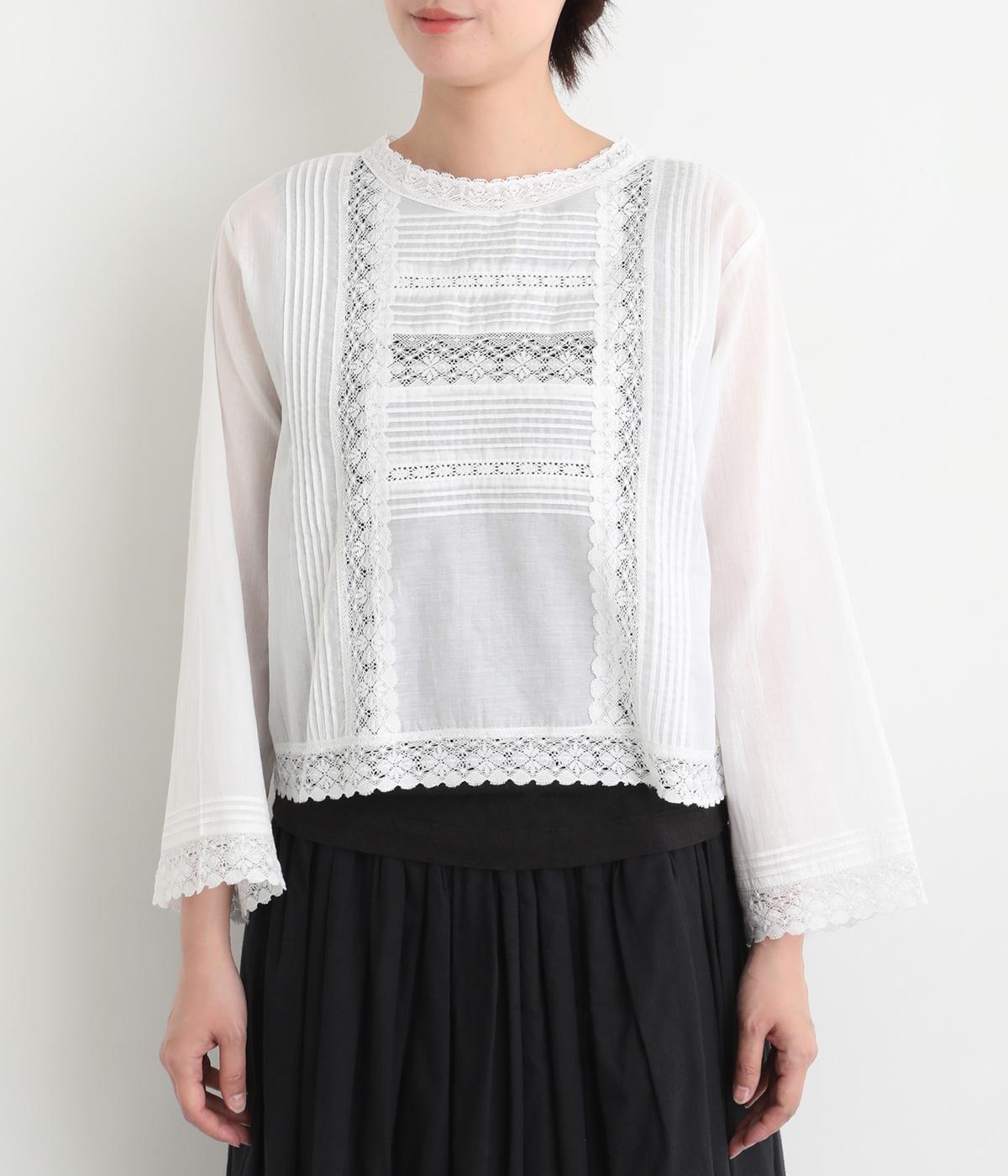 繊細な生地感にレースが映えるブラウスを、前後どちらでも着られる2wayに仕立てました。さっと重ねるだけで装いに軽やかな華やぎを添えます。短めの着丈でボトムスとのバランスがとりやすく、さまざまなスタイリングになじみます。