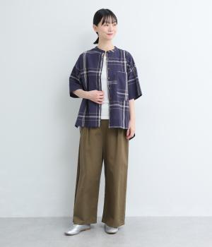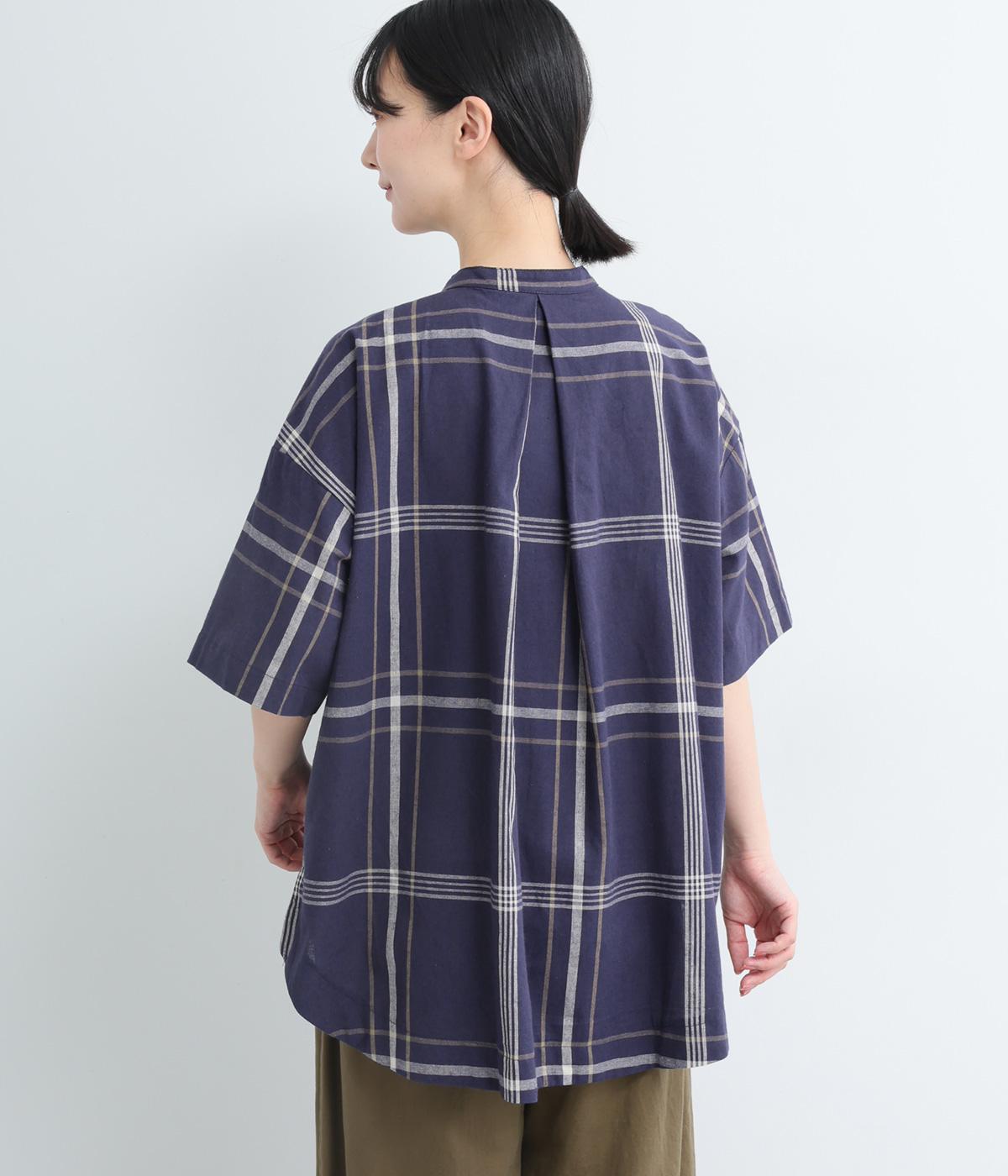 ワンポイントになりながらも無地感覚で着こなしやすく、さわやかな風を運ぶビッグチェック柄シャツ。ゆとりのあるサイズにすっきりしたバンドカラーが好バランス。ヘムラインは前後差をつけて後ろ姿もお洒落見え。