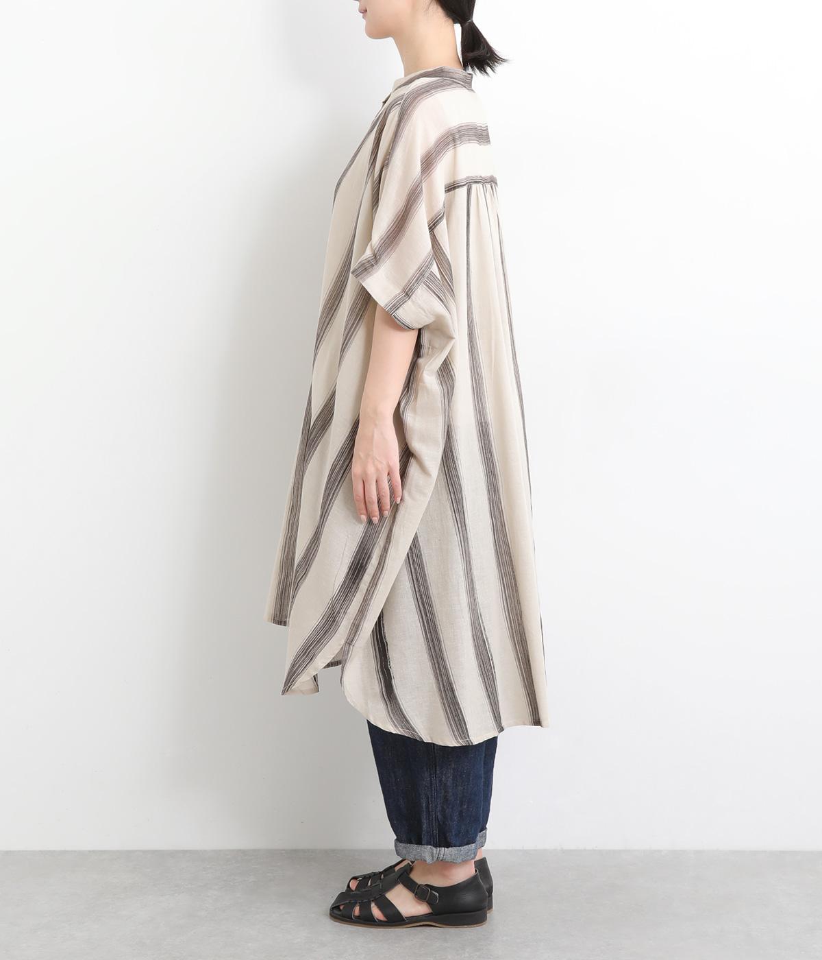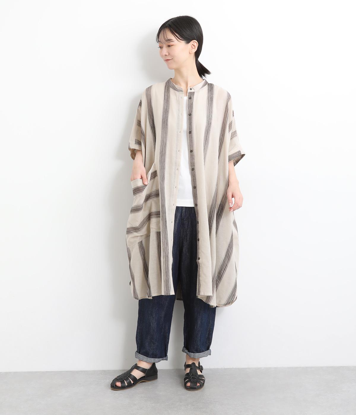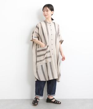 清涼感のある、さらりとした手ざわりのコットンリネン素材で仕立てました。ほどよく透けた軽やかな生地で、ストレスフリーな着心地が叶います。
