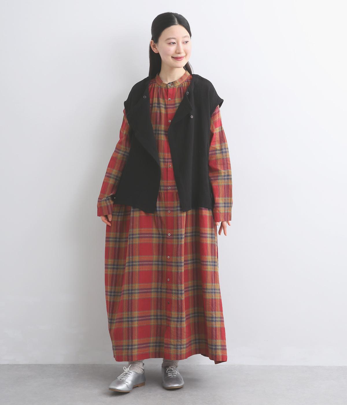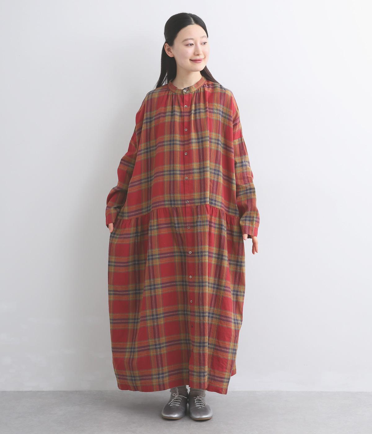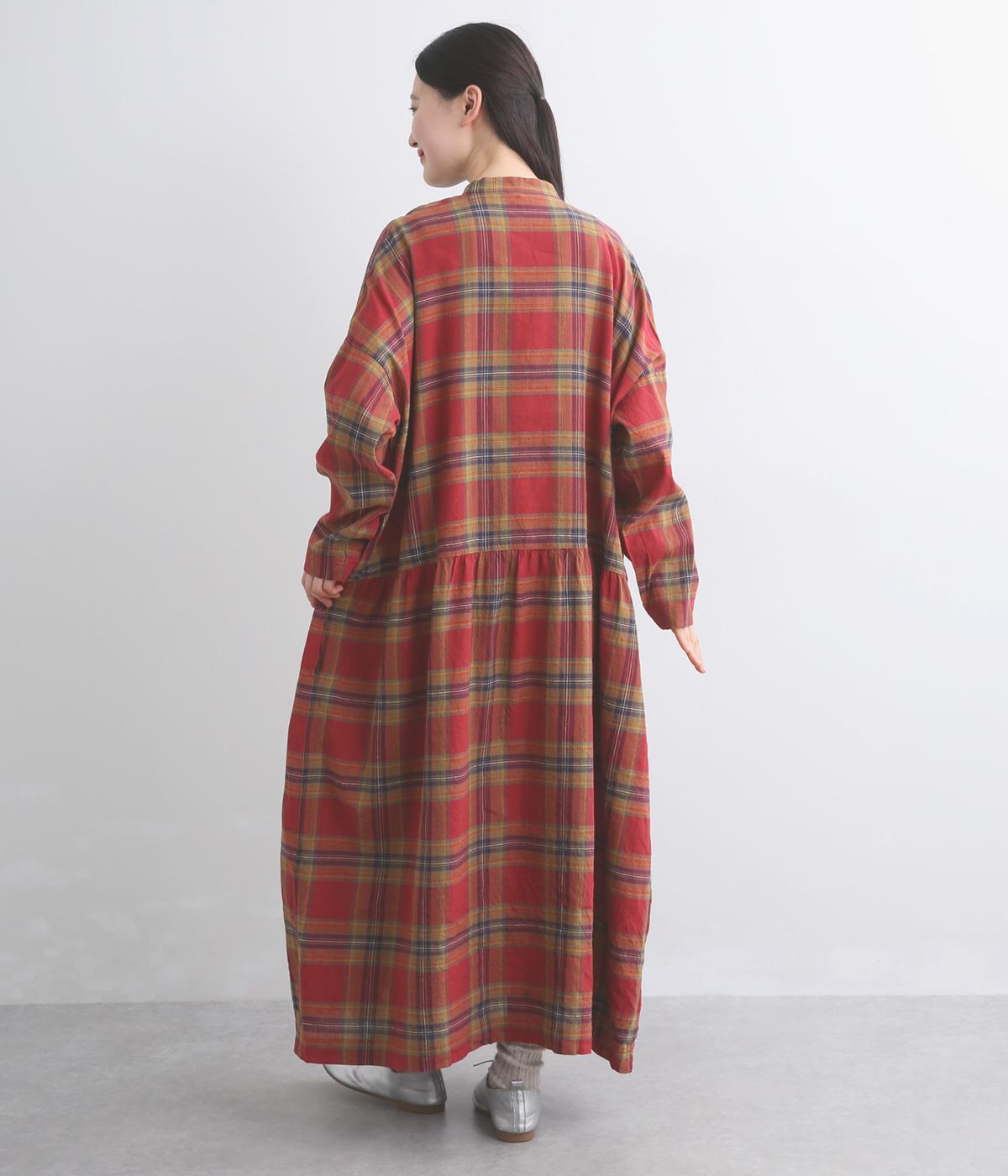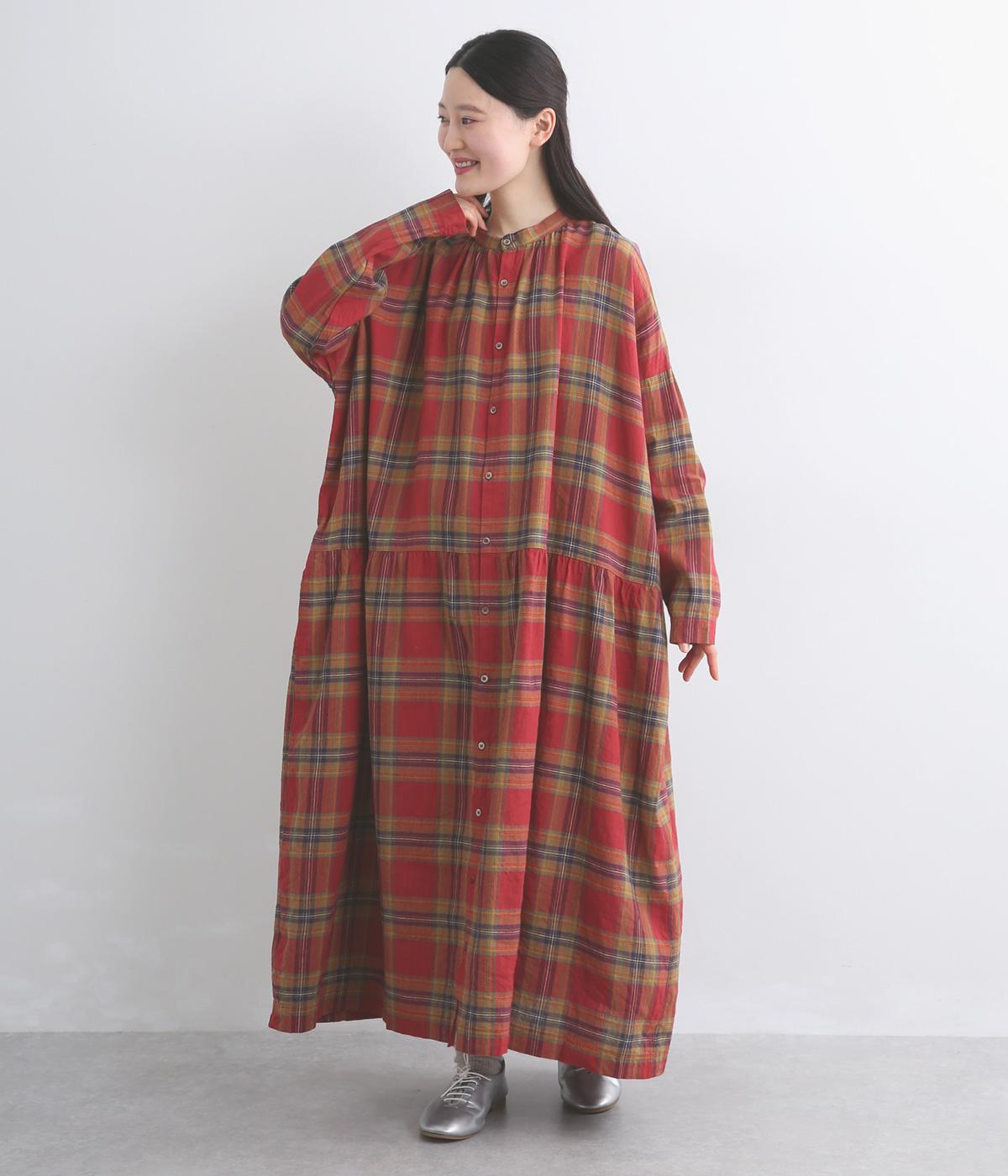 リネンコットンタータンチェックドレス(レッド-F)