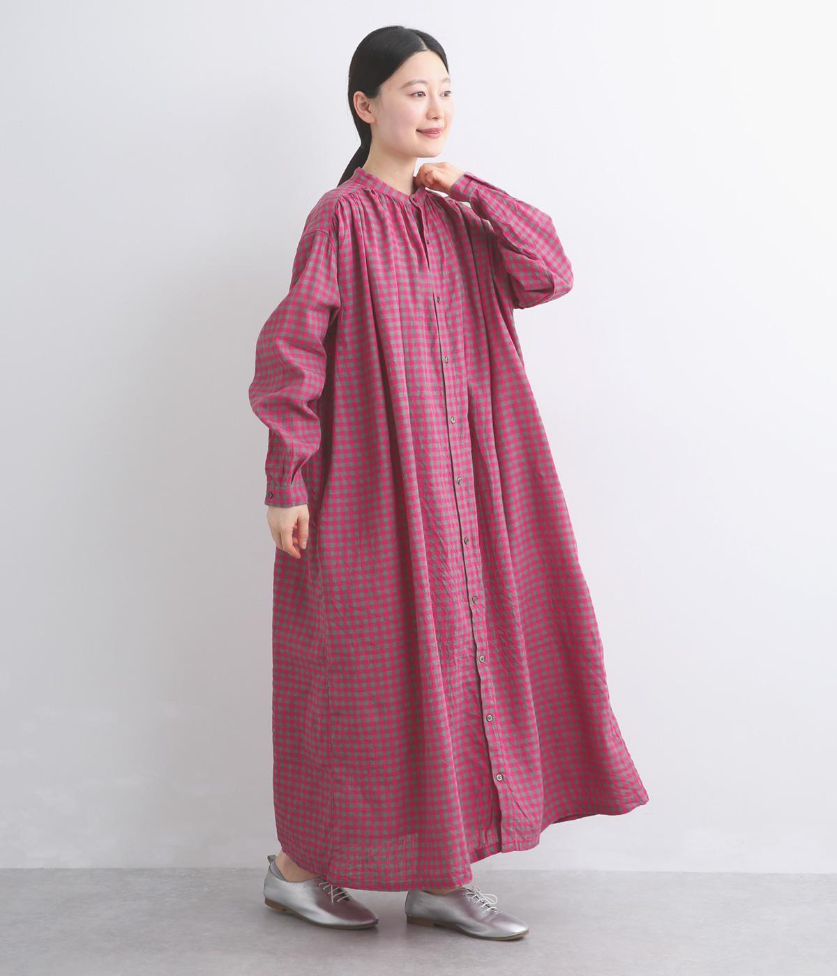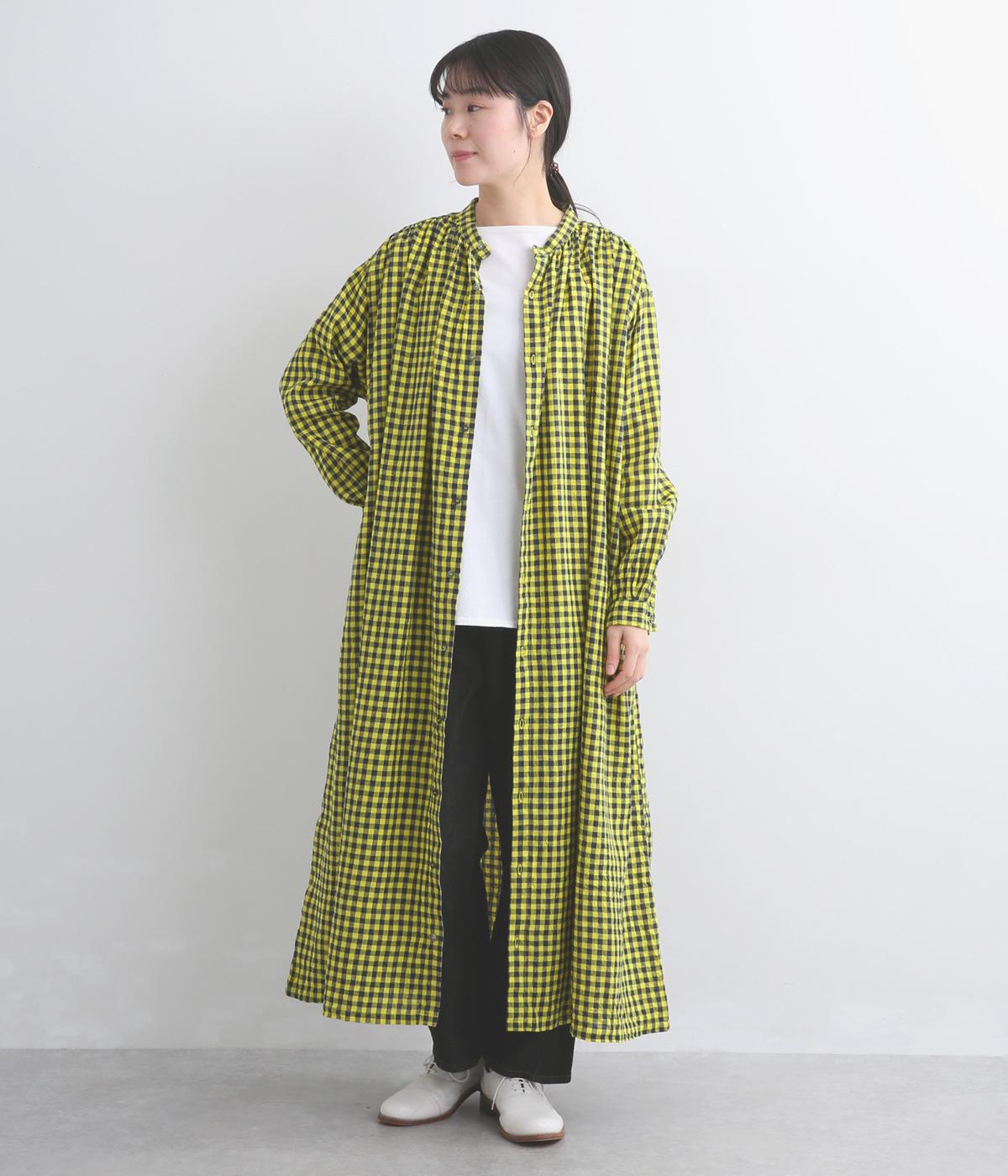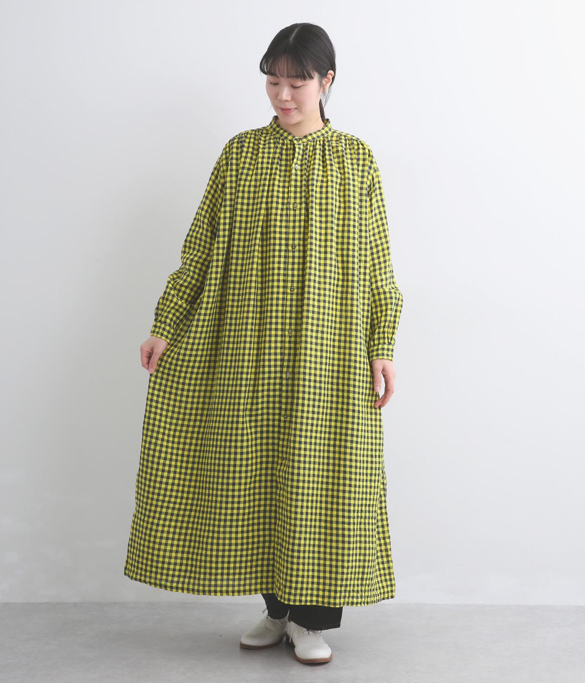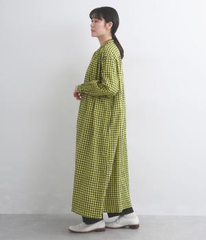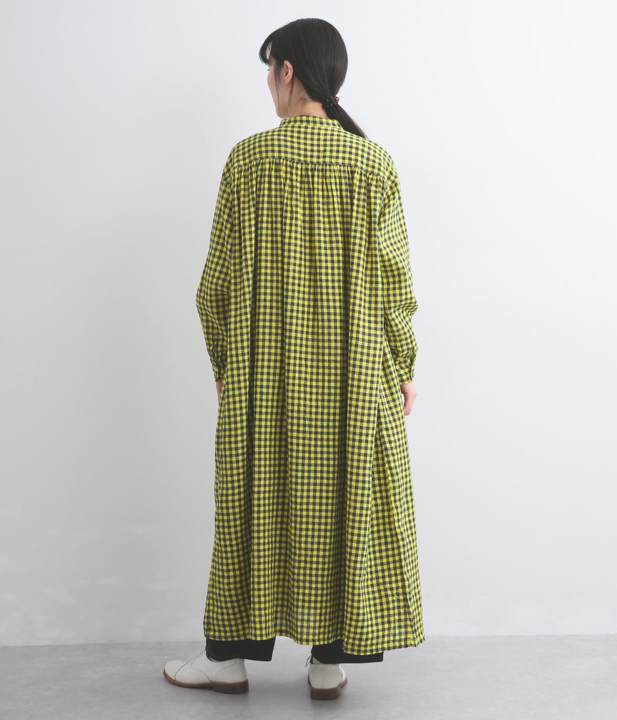 リネンコットンギンガムチェックドレス(イエロー-F)