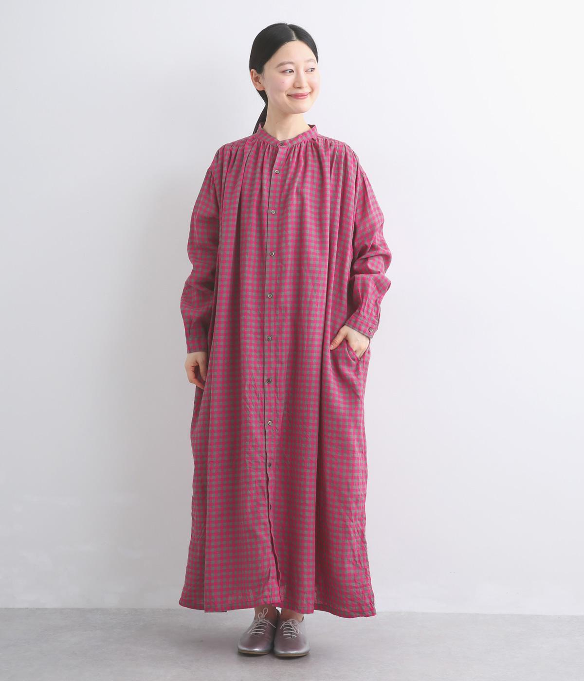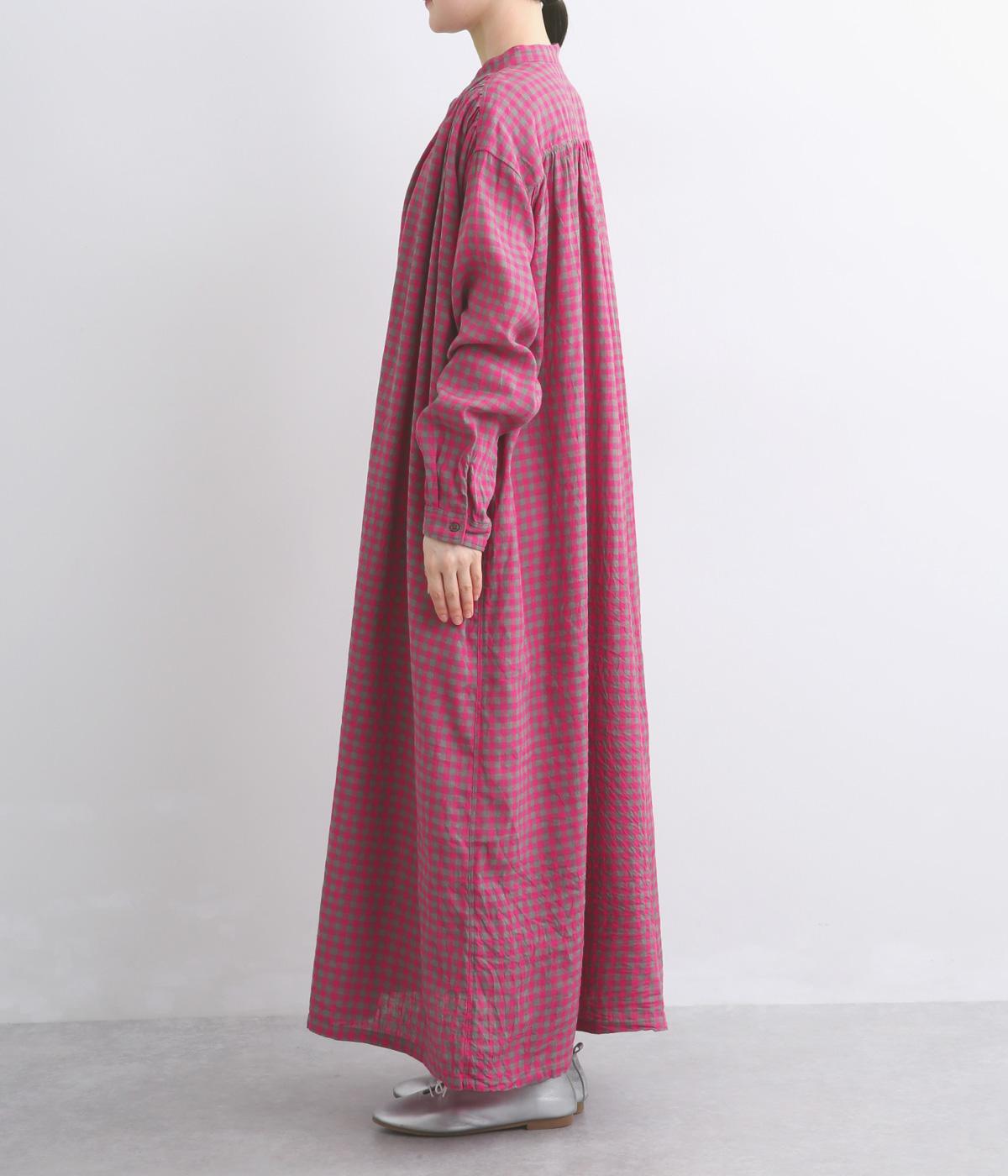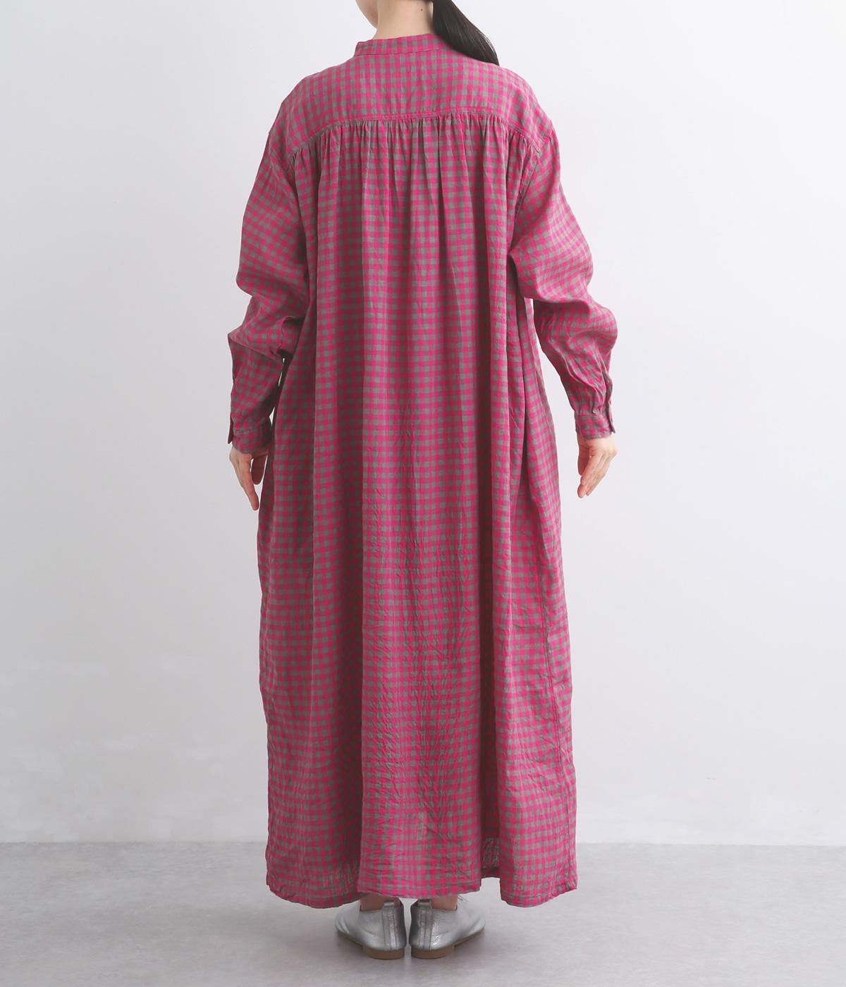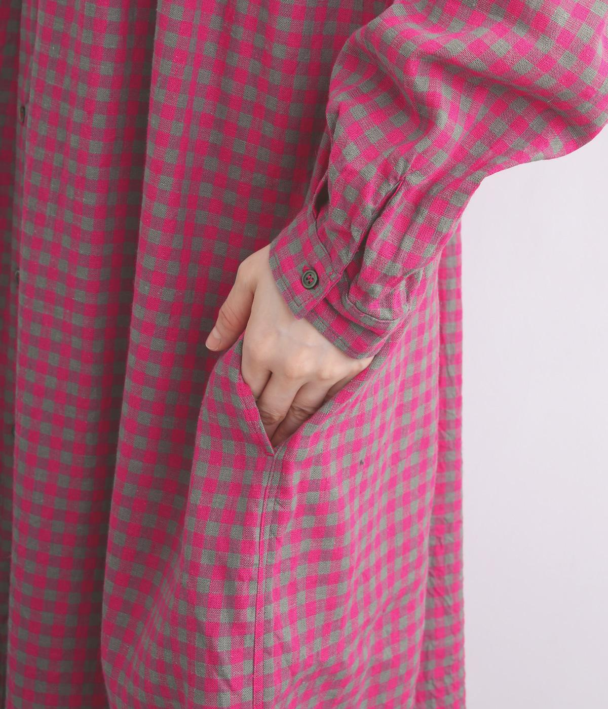 リネンコットンギンガムチェックドレス(イエロー-F)
