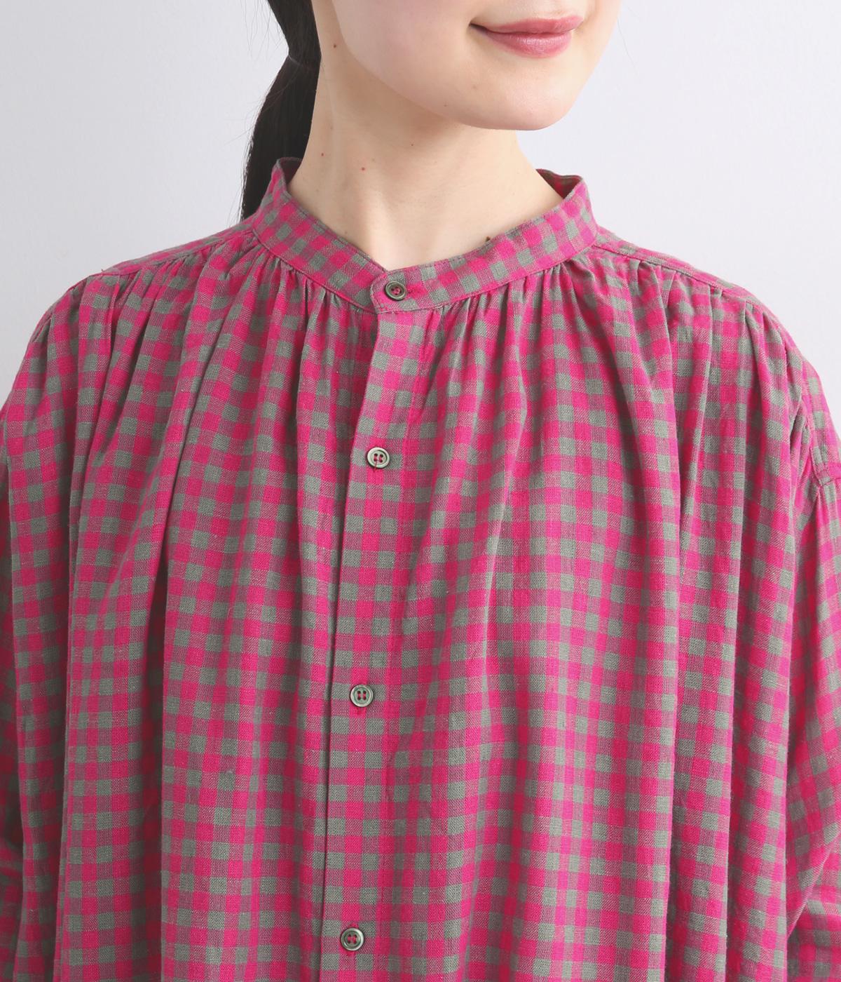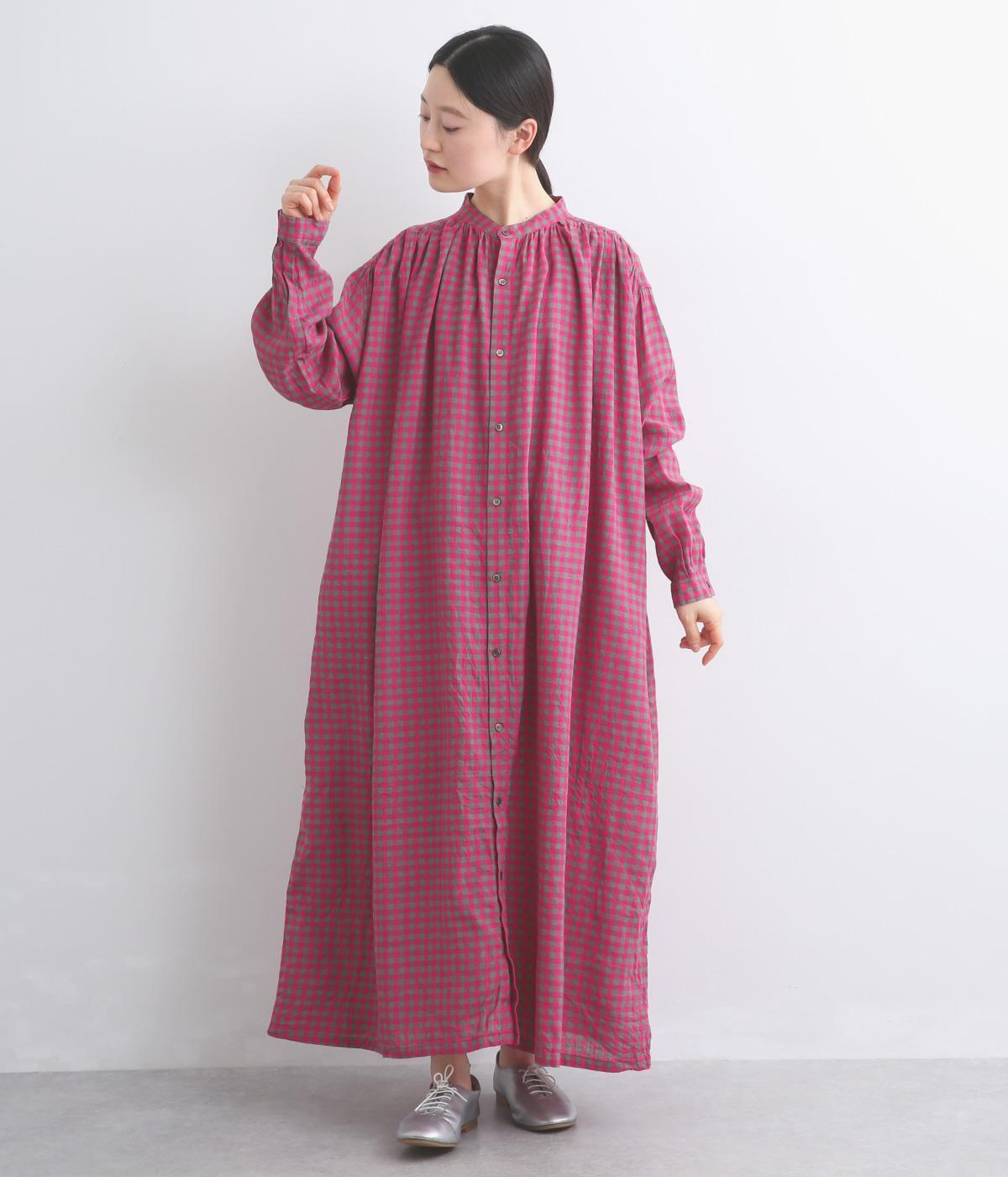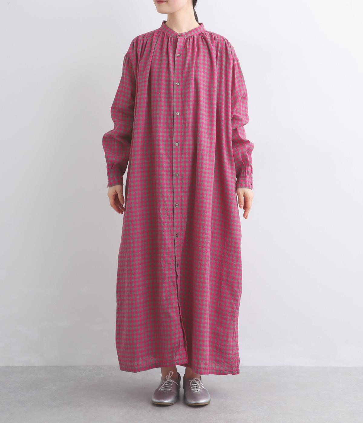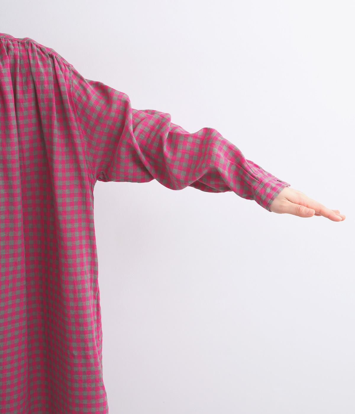 リネンコットンギンガムチェックドレス(イエロー-F)