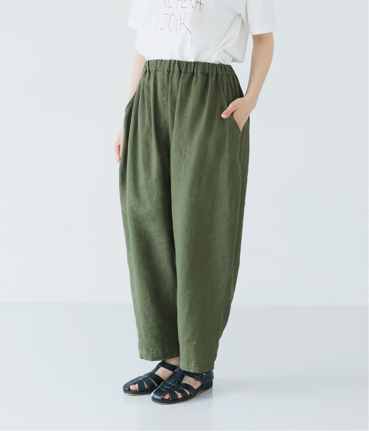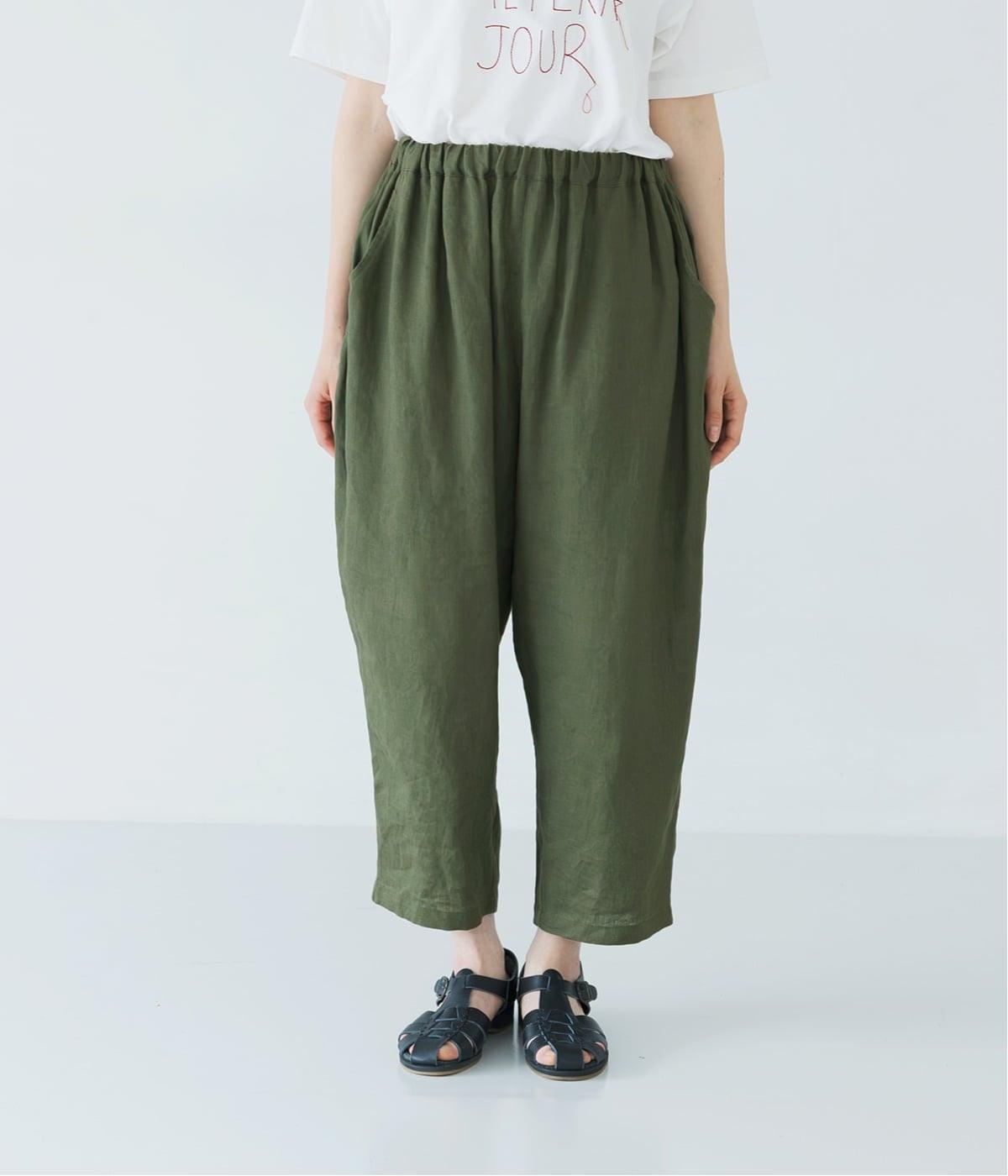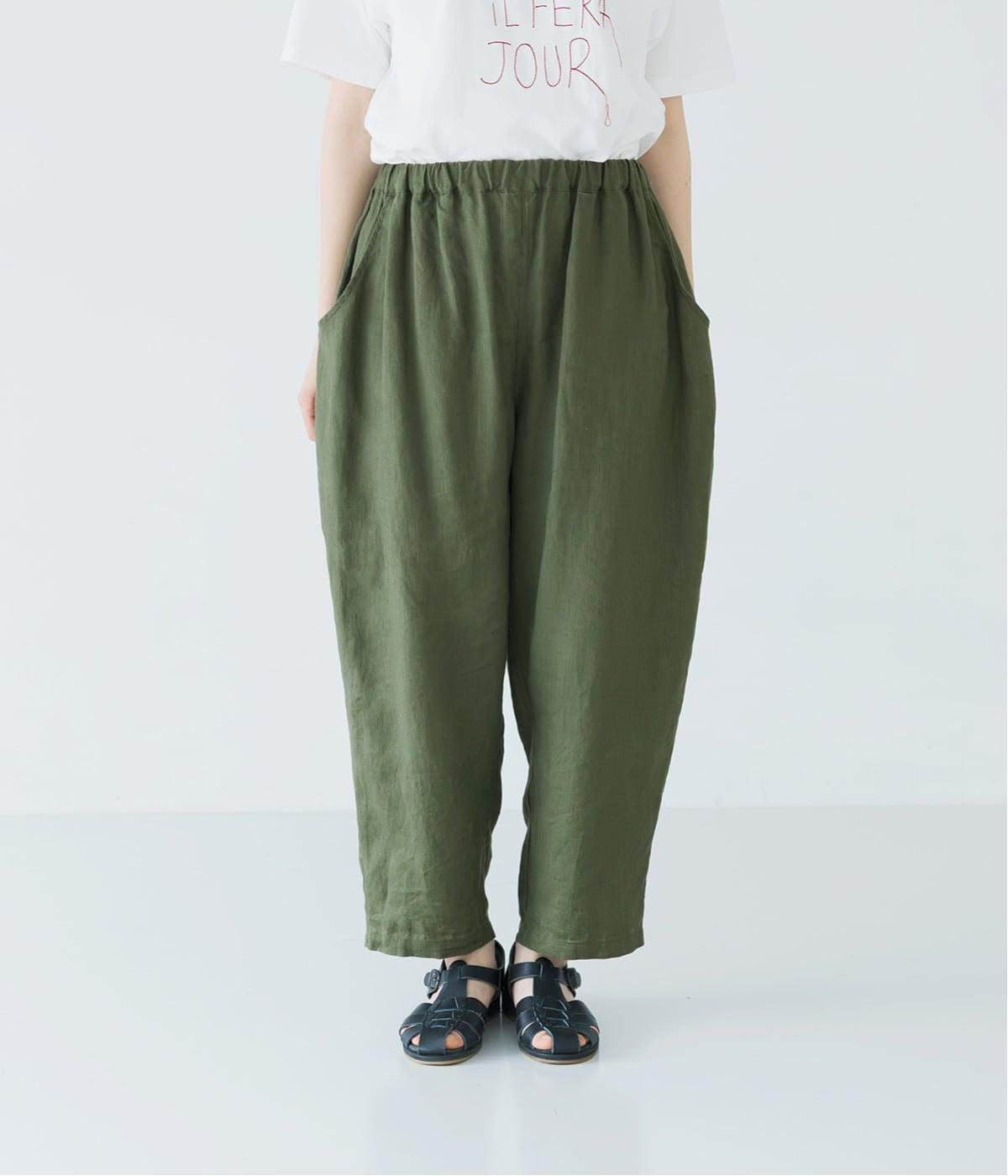 着丈選べる 平織リネンよくばりパンツ(カーキ-F)