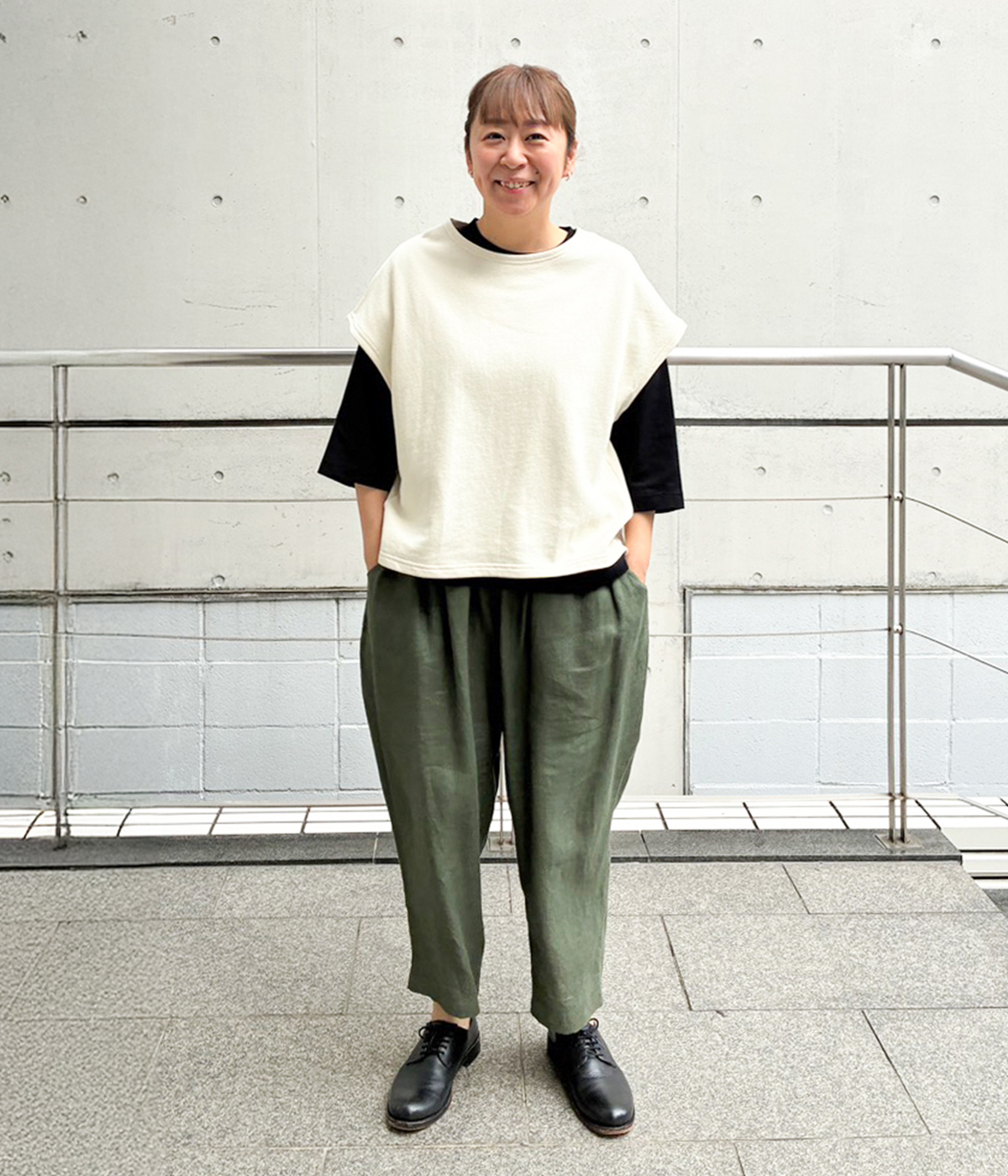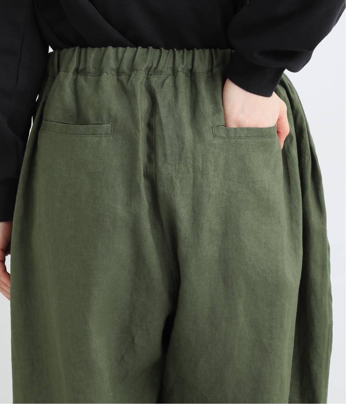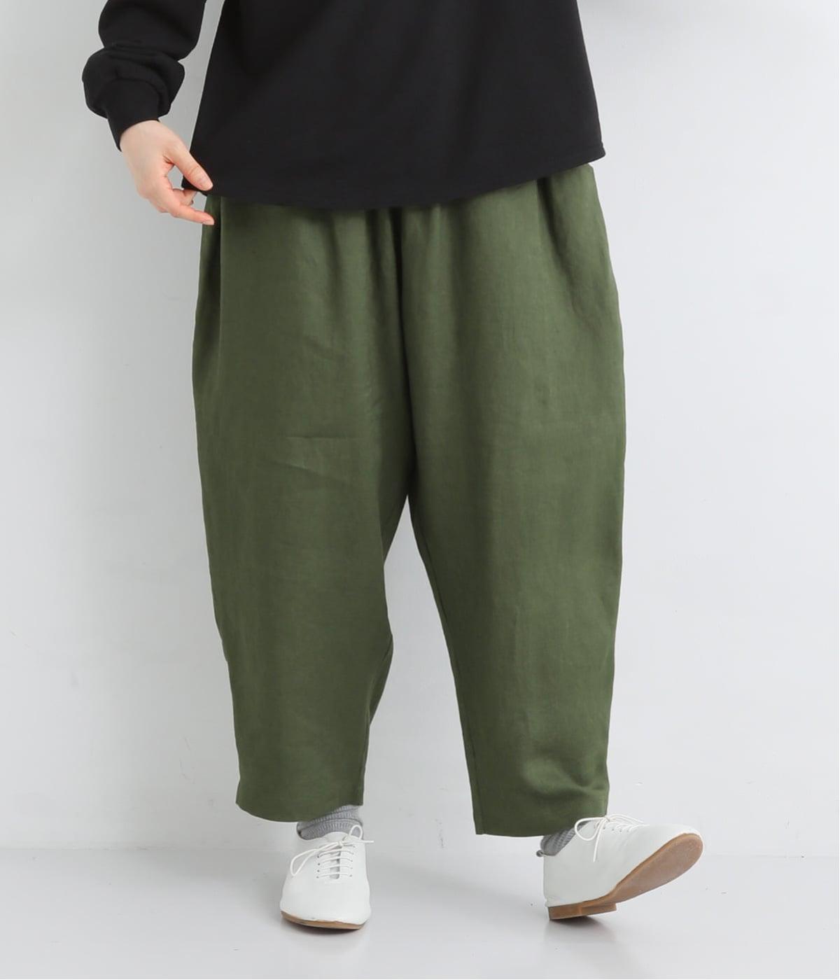 着丈選べる 平織リネンよくばりパンツ(カーキ-F)