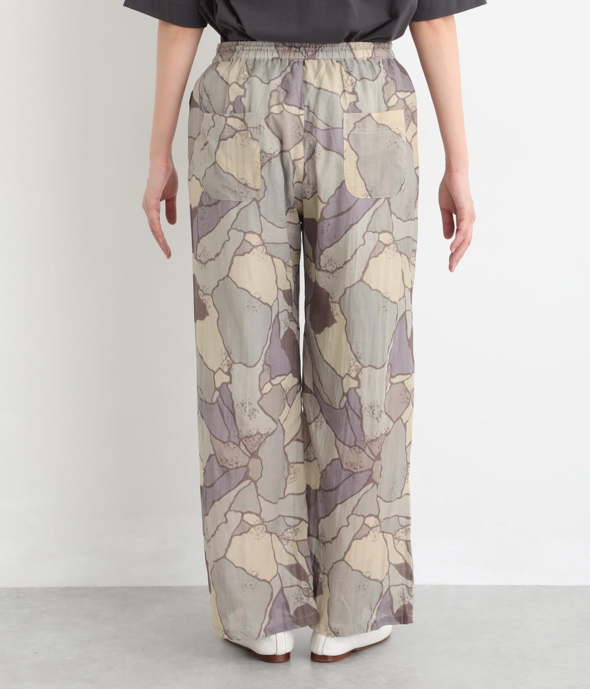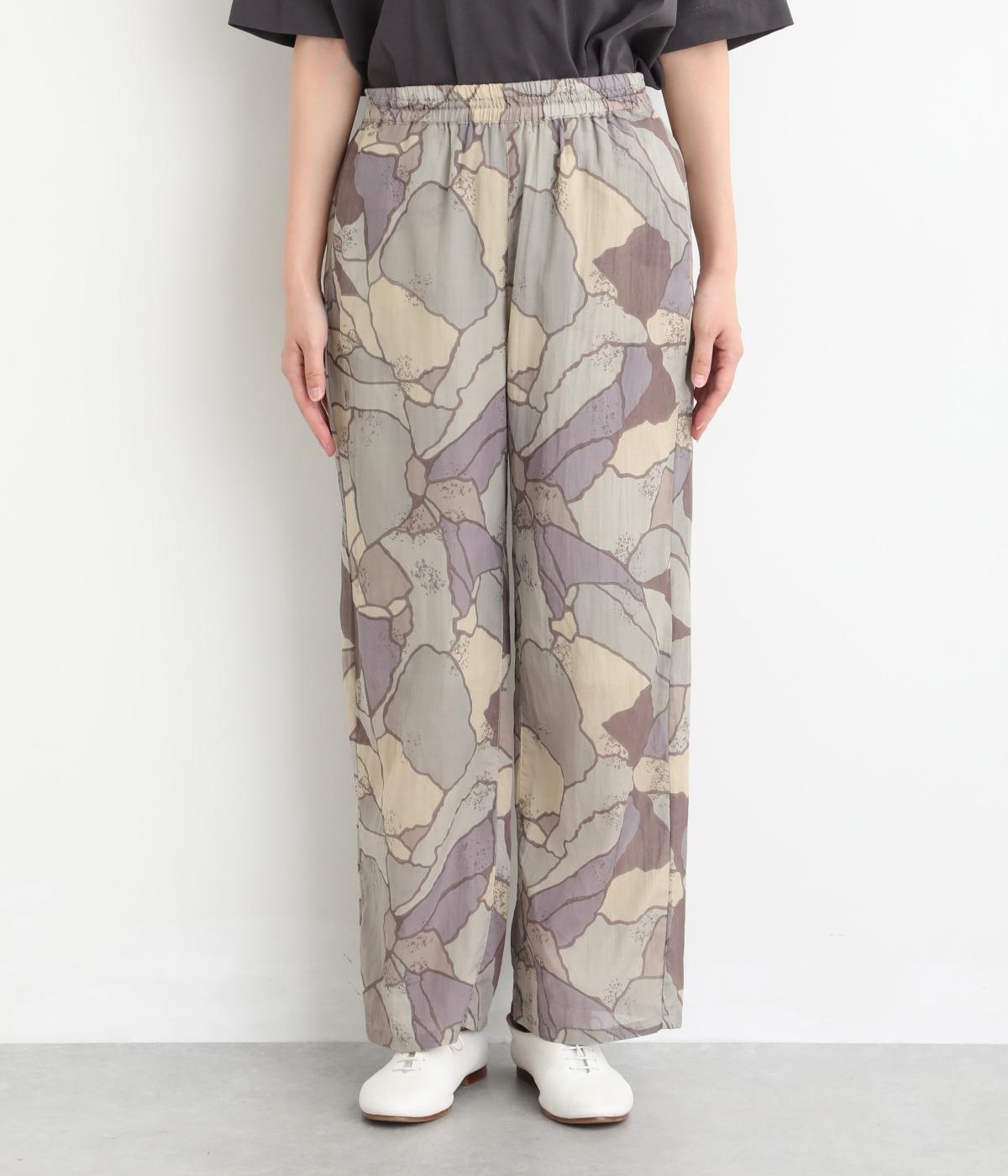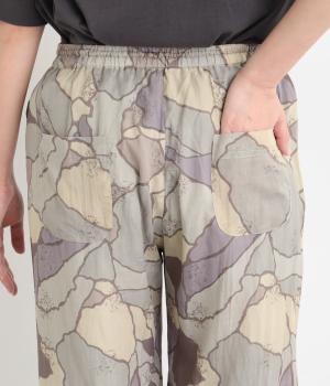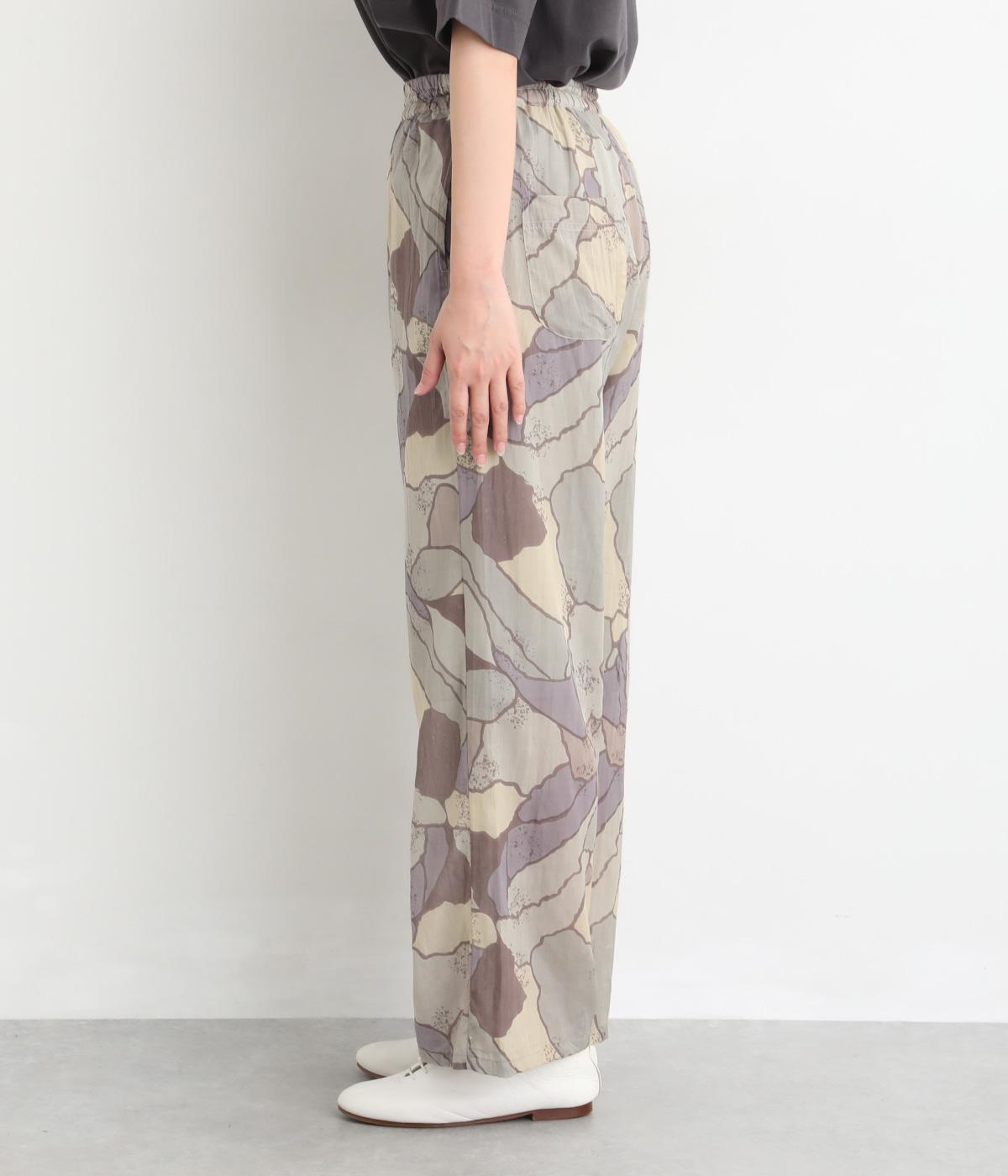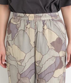 やわらかな色の重なりが印象的な抽象柄のパンツ。アート感のある佇まいで、シンプルなトップスと合わせるだけで洒落感のあるスタイリングに。内紐を配した総ゴム仕様のウエストと裏地付きで、安心感のある穿き心地に仕上げました。