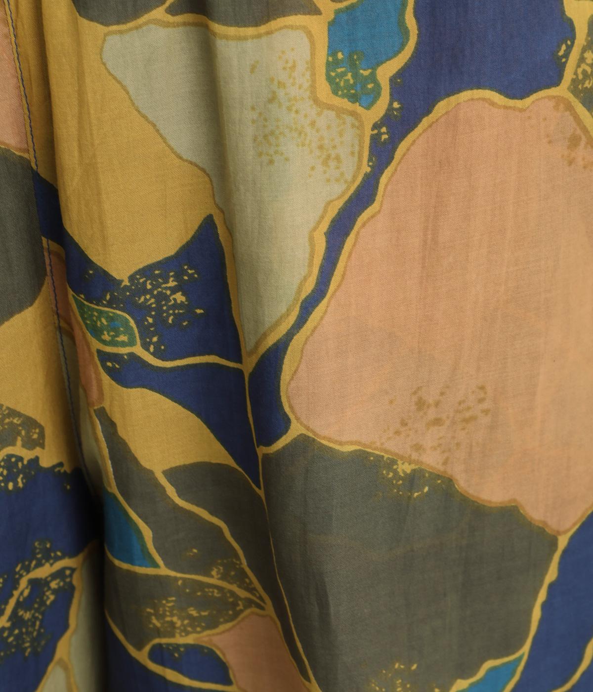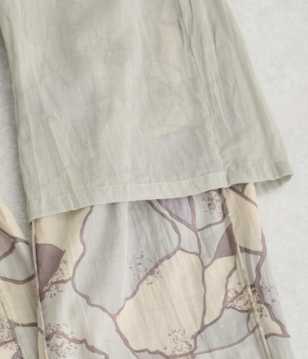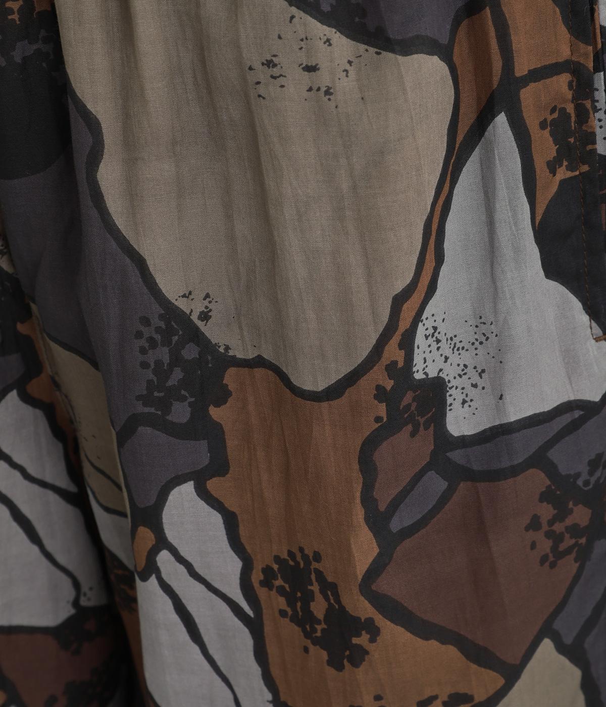 やわらかな色の重なりが印象的な抽象柄のパンツ。アート感のある佇まいで、シンプルなトップスと合わせるだけで洒落感のあるスタイリングに。内紐を配した総ゴム仕様のウエストと裏地付きで、安心感のある穿き心地に仕上げました。