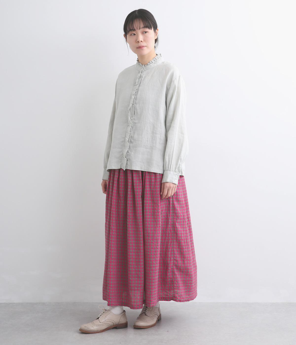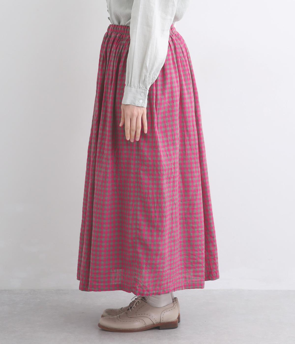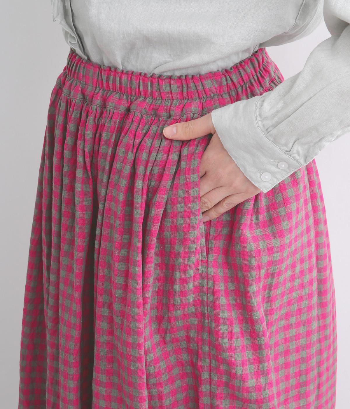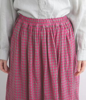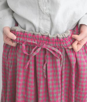 軽やかな風合いの生地に鮮やかな配色のギンガムチェックをあしらいました。総ゴム仕様のウエストに、裏地付きで安心感のある穿き心地に。シンプルなトップスと合わせるだけでさっとスタイリングが決まる一枚です。