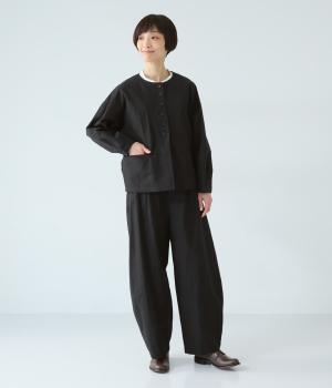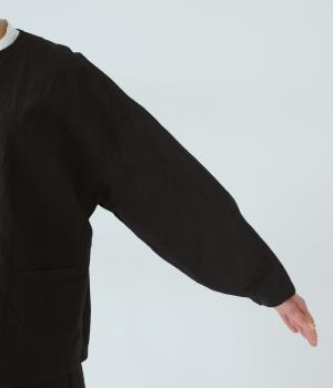 クルーネックで首元をすっきり見せ、程よい丈感で軽やかな印象に。しぼまる袖のシルエットと多ボタンのディテールが着こなしにさりげない個性を添えます。さっと羽織るだけでコーディネートをまとめてくれる一枚です。
