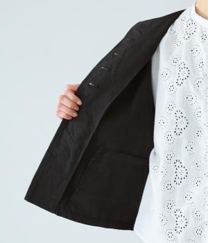 しっかりとしたハリとほどよい厚みを備えたヘビーキャンバス生地を使用しました。着用するほどに体になじみ、自然なシワ感がナチュラルな表情を添えます。