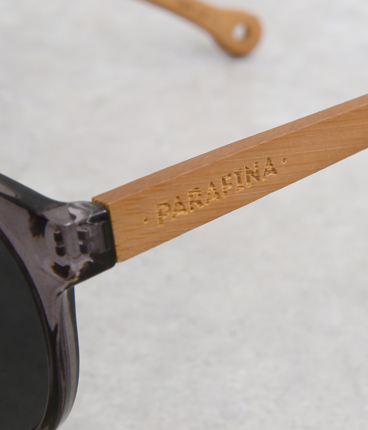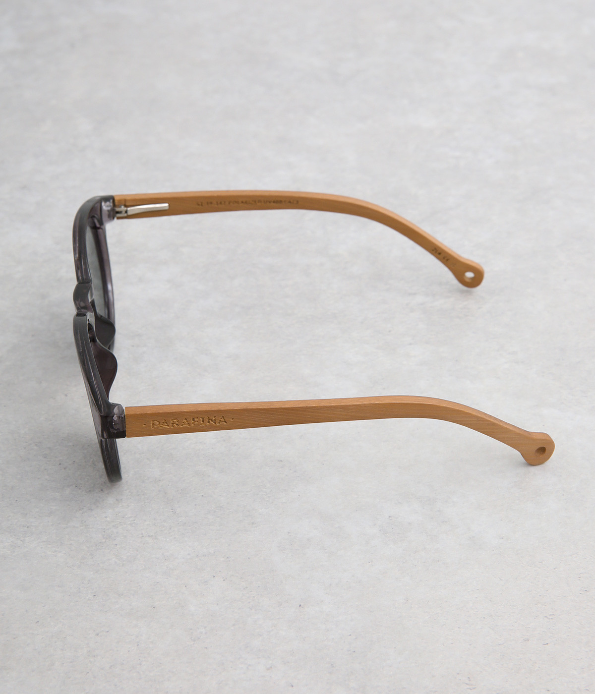 テンプルにバンブーを使い、センスのよさが光るプラスチックフレームとの異素材ミックス。つけても持ち歩いても気にならないくらい軽く、耐衝撃性に優れたポリカーボネート製レンズを採用しています。