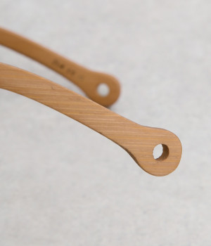 かける人を選ばず、幅広いスタイリングと好相性。気軽にさっとつけられる形に仕上げました。フレームとテンプルの異素材コンビネーションがメリハリを演出。テンプルの先にデザインされたホールが特徴になっています。