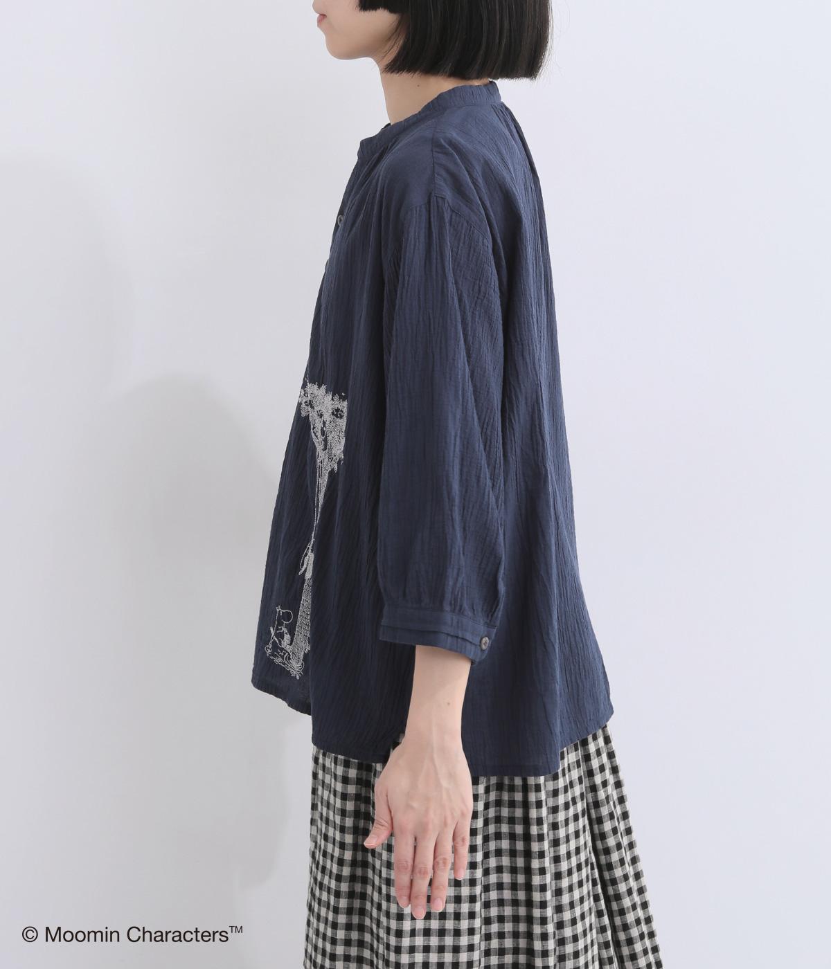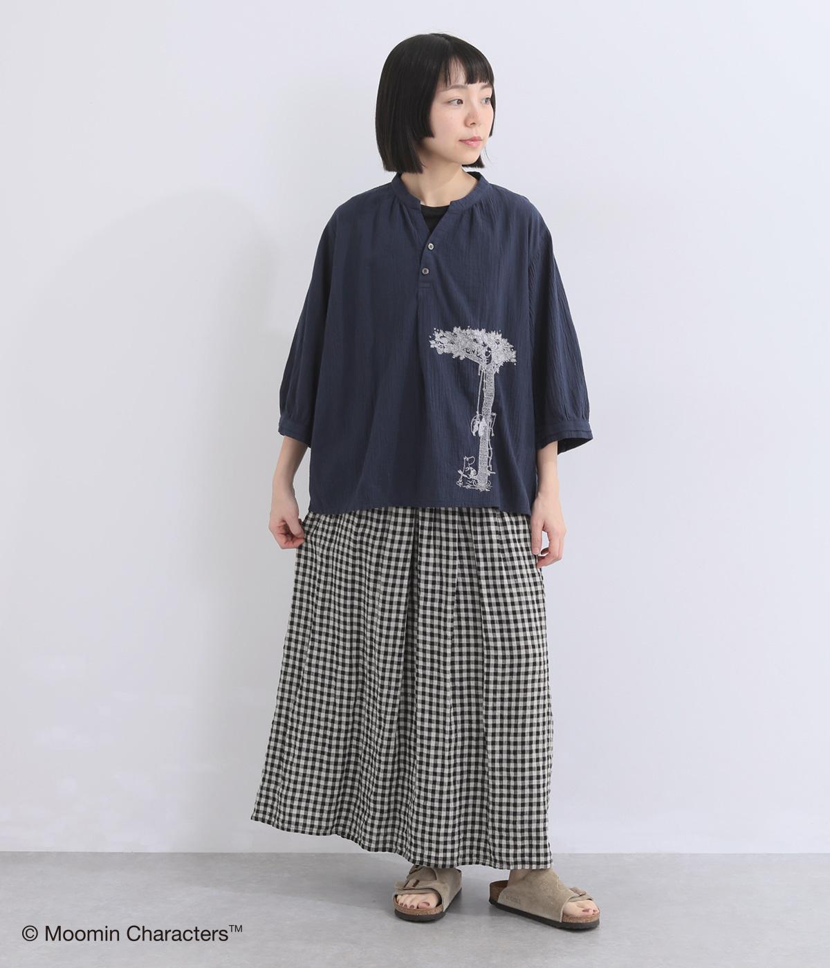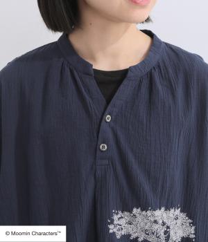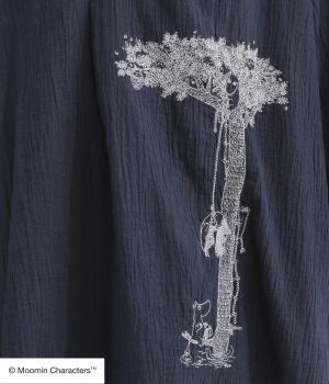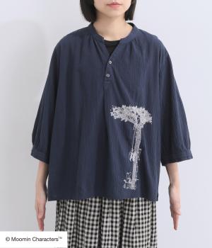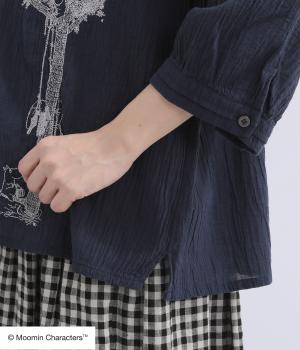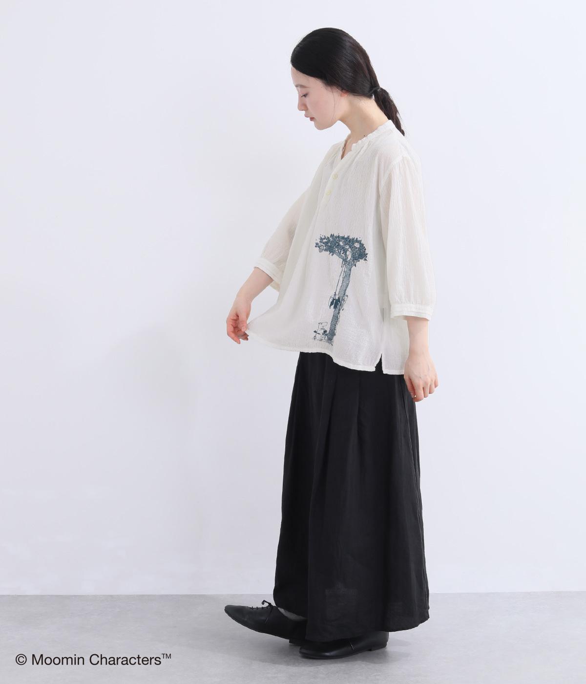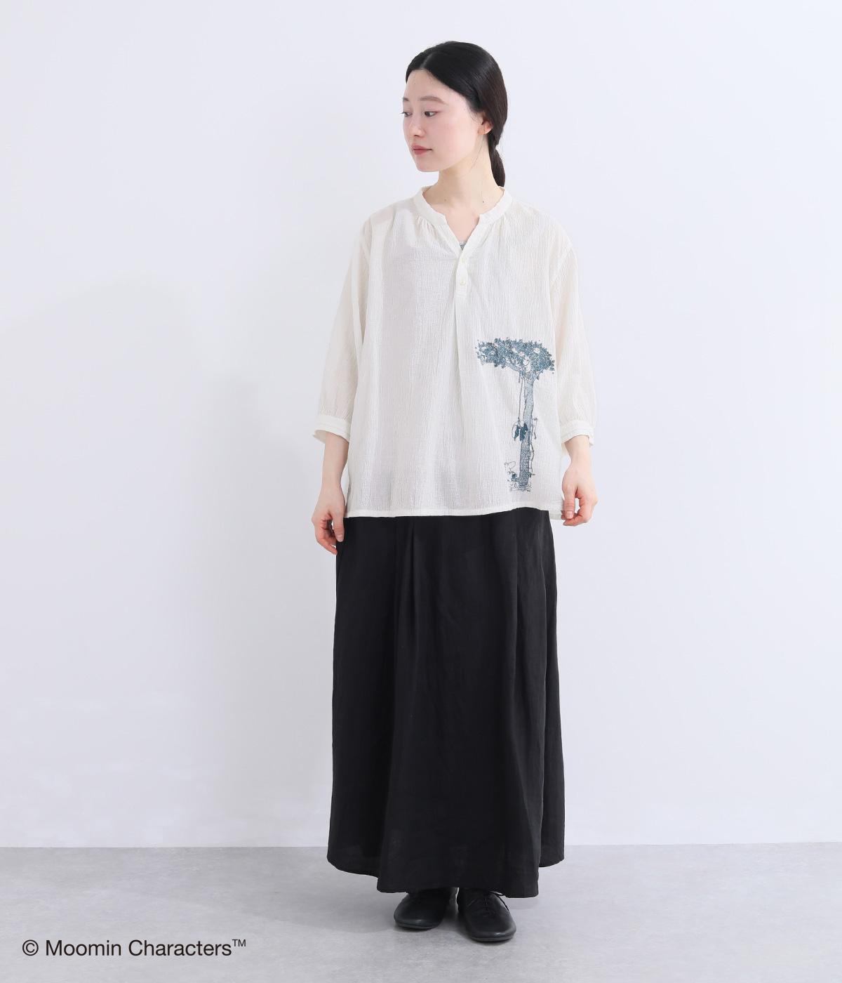 ムーミンと大きな木の刺しゅうが愛らしいブラウスです。軽やかな生地が自然なドレープを生み、揺れ感がやさしい雰囲気を引き立てます。スキッパー襟で顔まわりはすっきりと。ナチュラルであたたかみのある一枚に仕上げました。