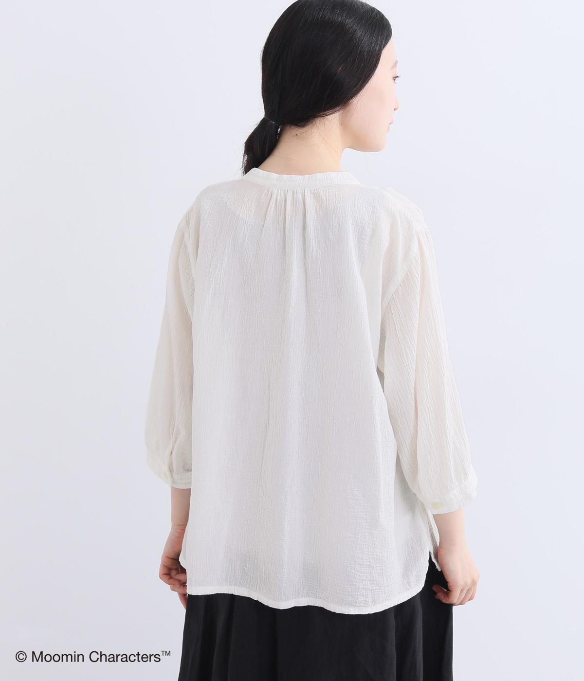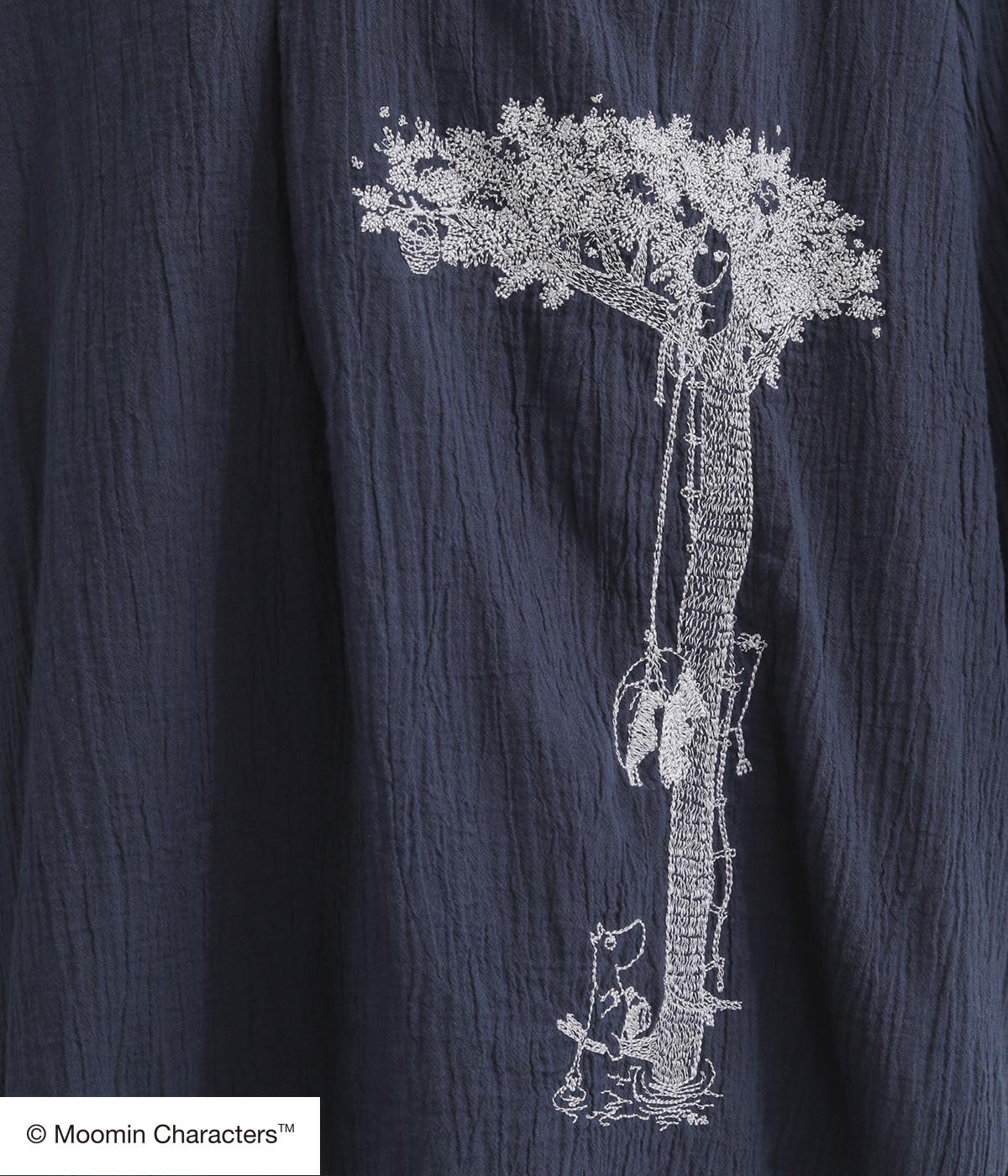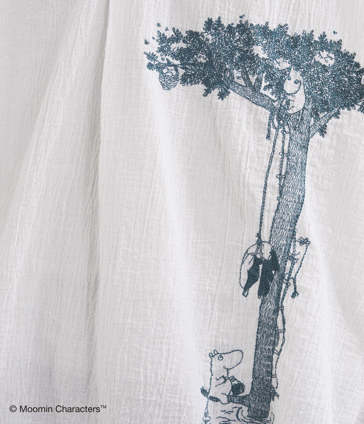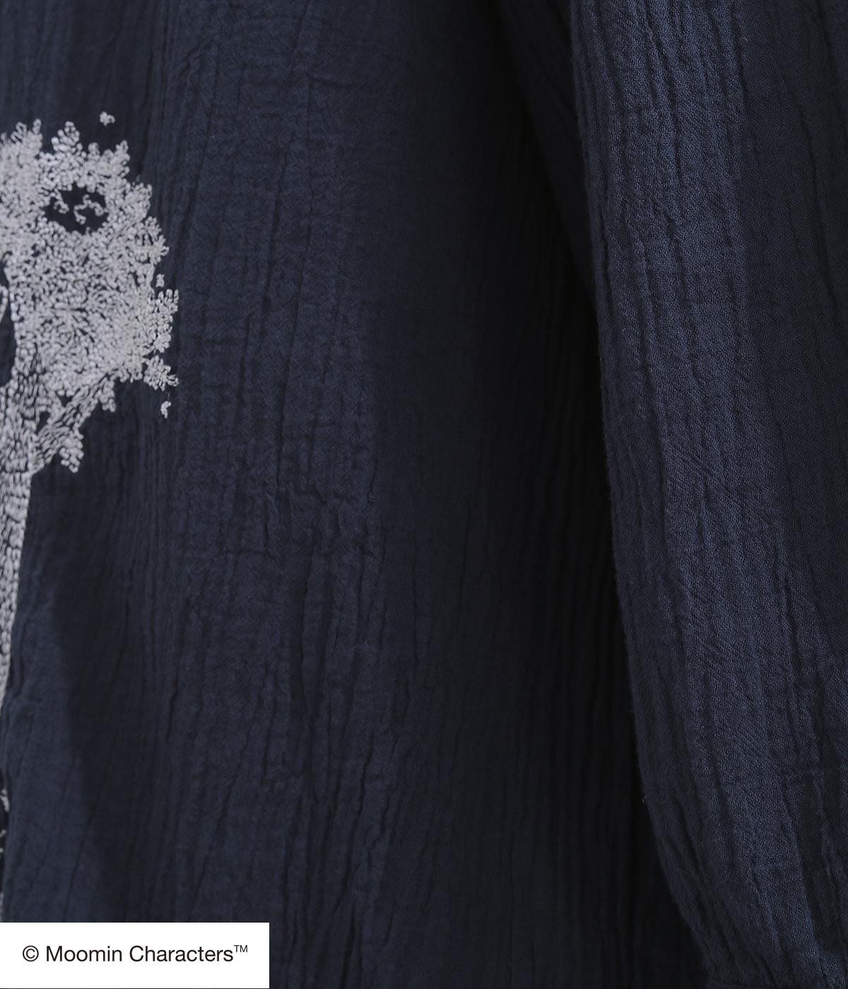 ムーミンと大きな木の刺しゅうが愛らしいブラウスです。軽やかな生地が自然なドレープを生み、揺れ感がやさしい雰囲気を引き立てます。スキッパー襟で顔まわりはすっきりと。ナチュラルであたたかみのある一枚に仕上げました。