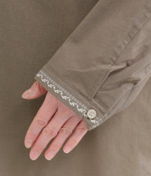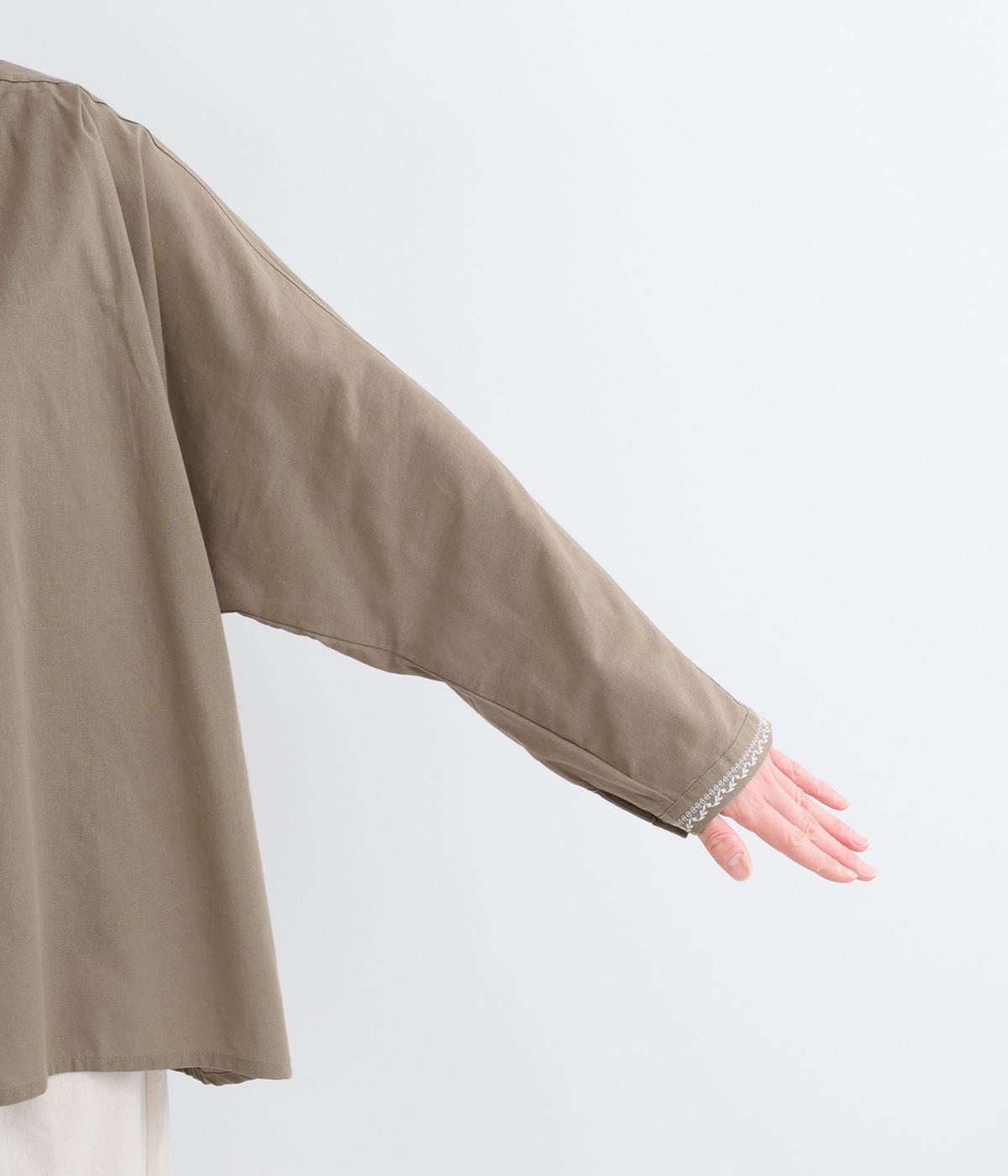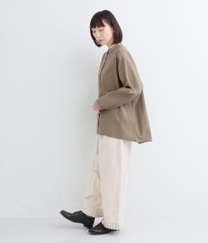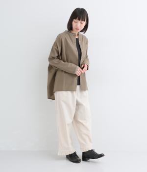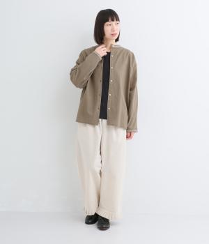 通気性に優れた清涼感のあるコットンリネン生地を使用しています。ナチュラルでやさしい雰囲気です。しなやかなハリで、やわらかな肌ざわりの素材感です。