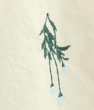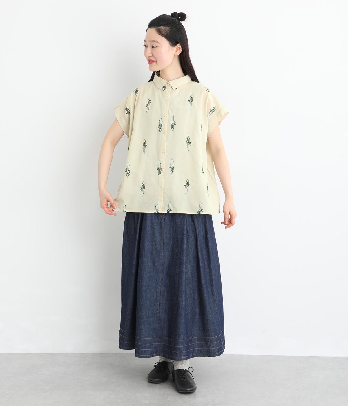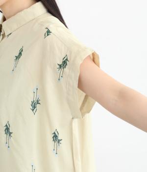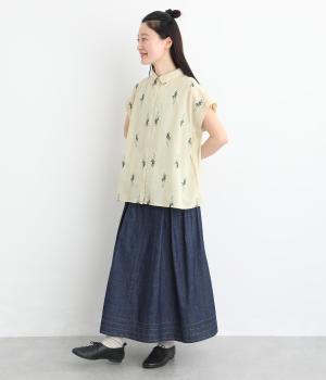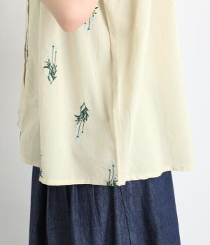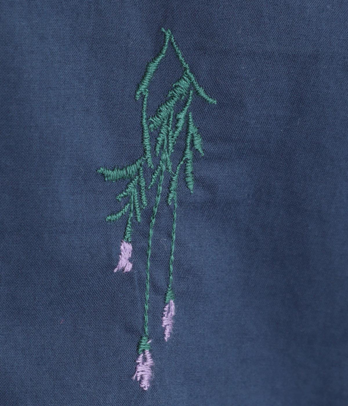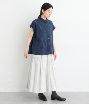 薄手でなめらかな肌ざわりのコットンキャンブリック生地にかわいらしいラベンダーの花の刺しゅうをのせました。透け感のある軽やかな生地が涼やかでさわらかな雰囲気を運びます。
