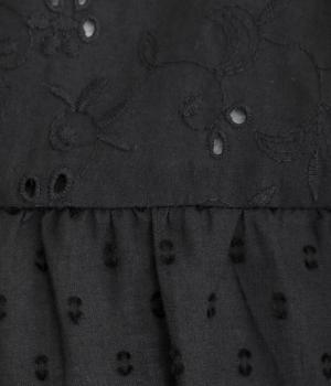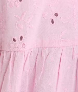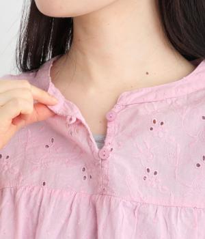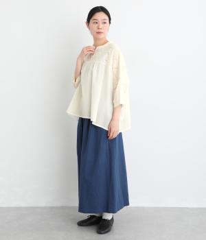 薄手でなめらかな肌ざわりのコットンキャンブリック生地に、シフリー刺しゅうとドットを切り替えてあしらいました。上品な涼やかさとナチュラルな風合いが魅力の素材です。
