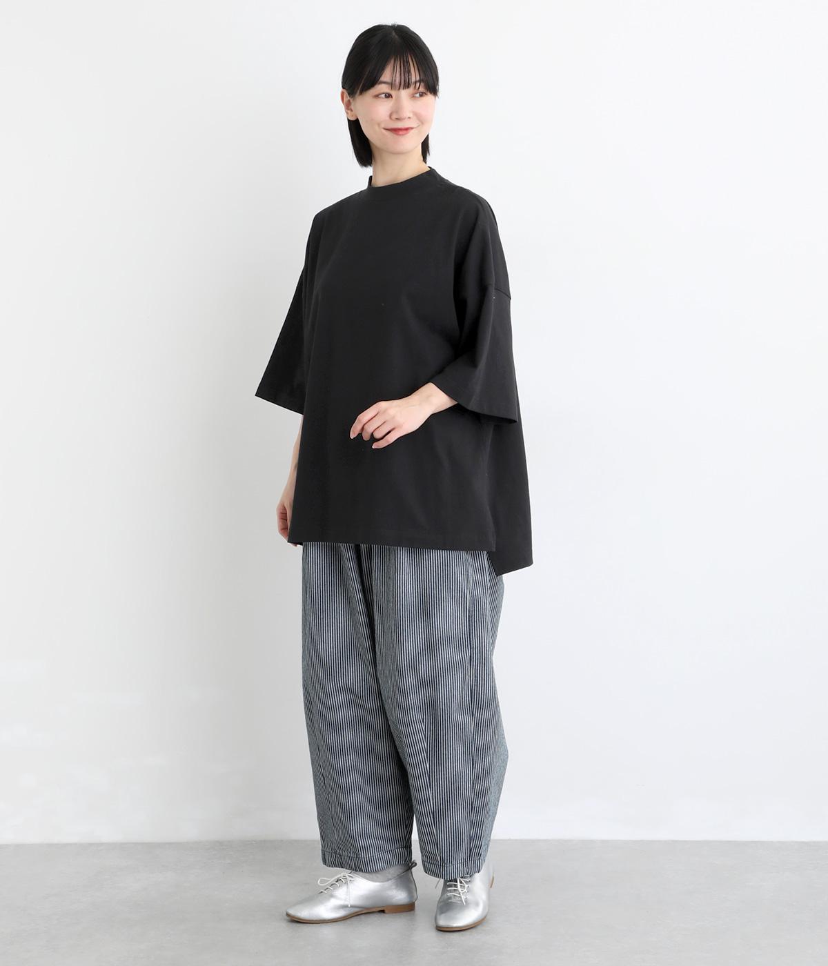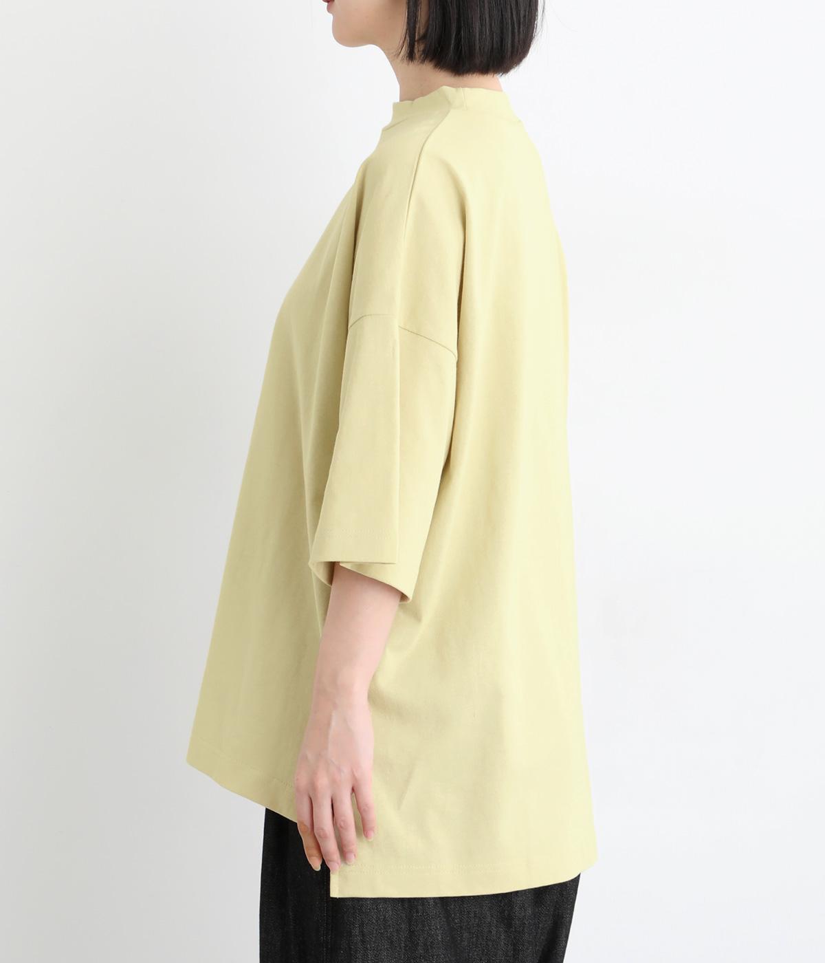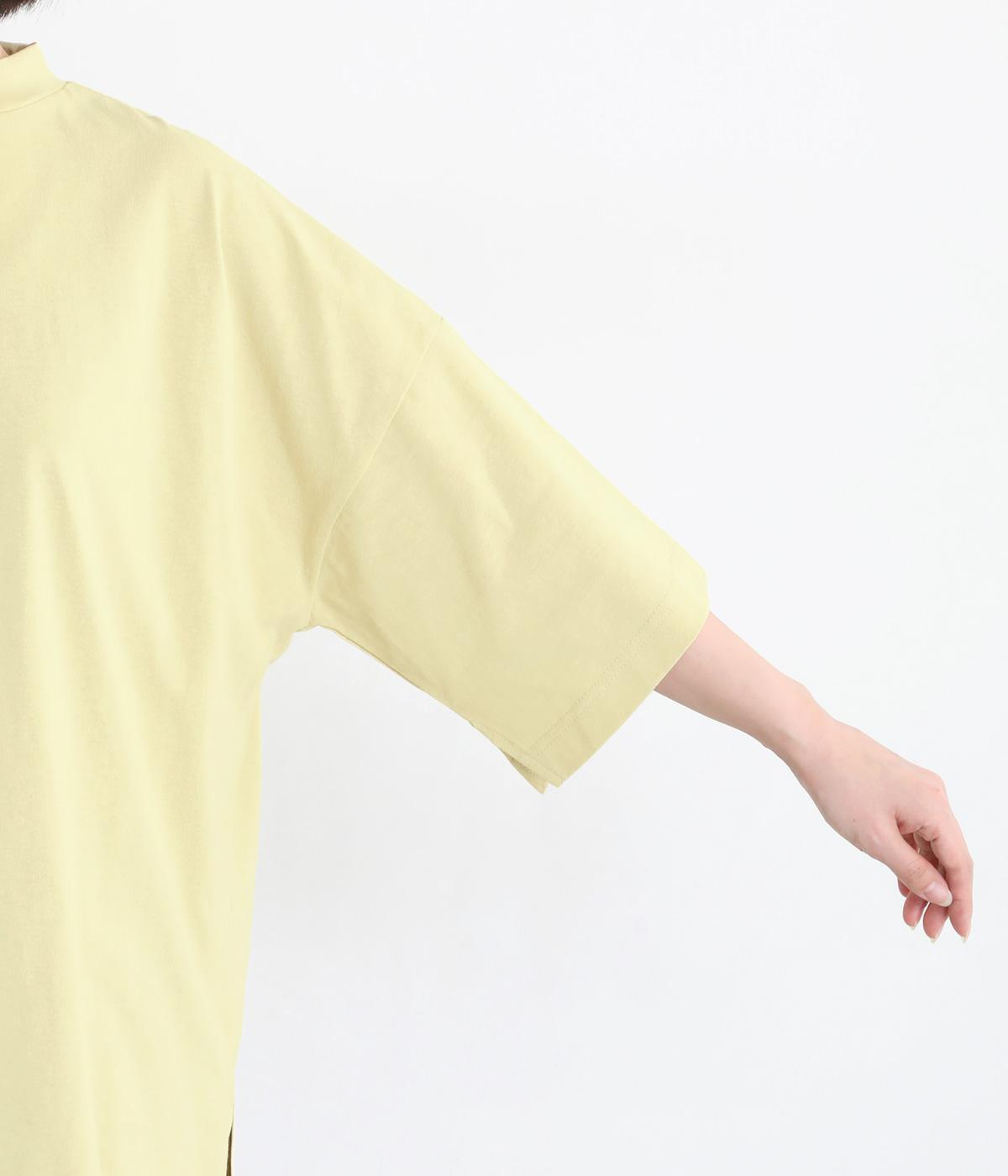 ドロップショルダーと、裾に向かってすとんと落ちるワイドシルエットが魅力です。袖は短すぎない七分袖。大きく前後差をつけた裾にはスリットを入れて、着こなしに抜け感をプラスしました。ヒップが隠れるチュニック丈と、ほんのり立ち上がる首元のモックネックで、カジュアルになりすぎないのも◎