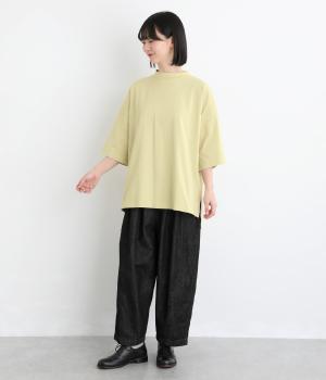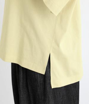 やさしい肌ざわりと軽やかさを兼ね備えた、空紡糸天竺で仕立てました。さらりとした表面感で、快適な着心地が続きます。厚みもほどよく安心感があり、ロングシーズン活躍してくれる素材です。