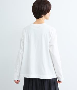 するりとなめらかなコットン天竺は、軽やかでやさしい肌ざわりが特徴。ほどよい伸縮性があり、動きやすく快適な着心地を叶えます。安心感のあるほどよい厚みで、季節を通して活躍する生地です。