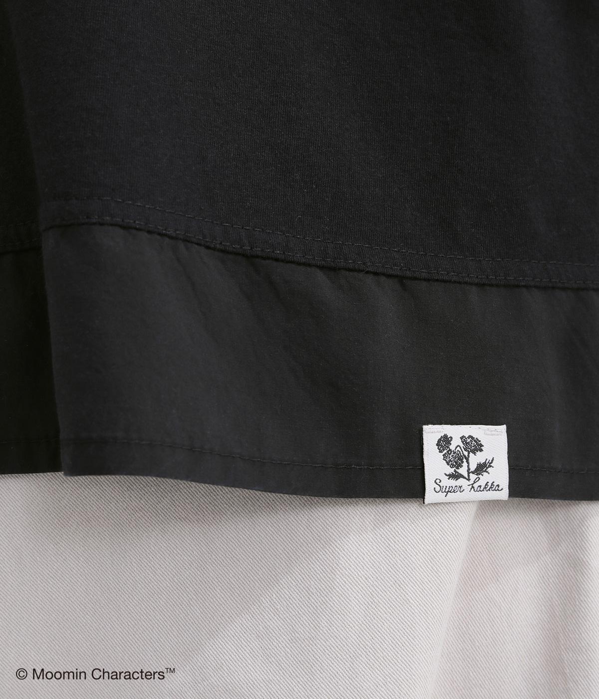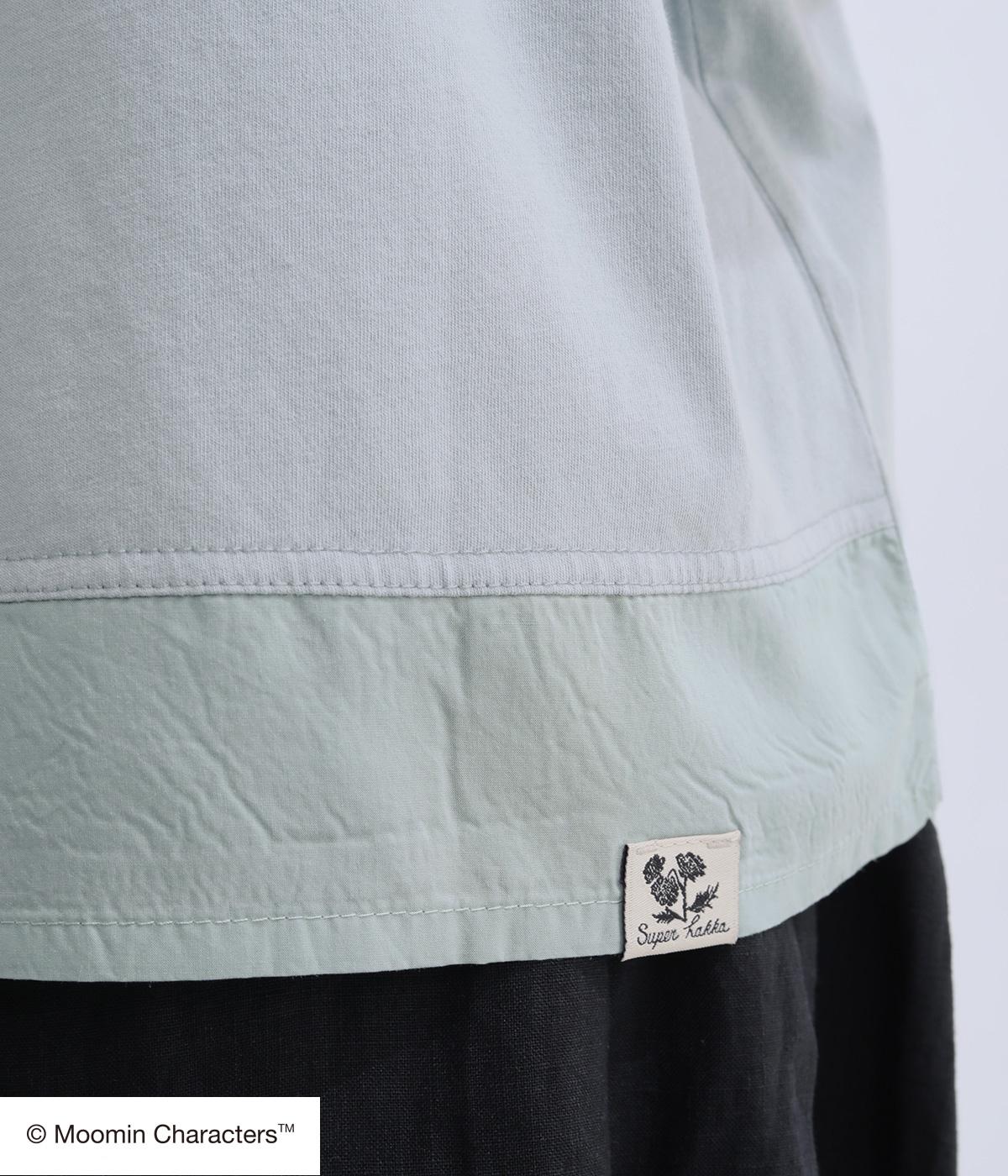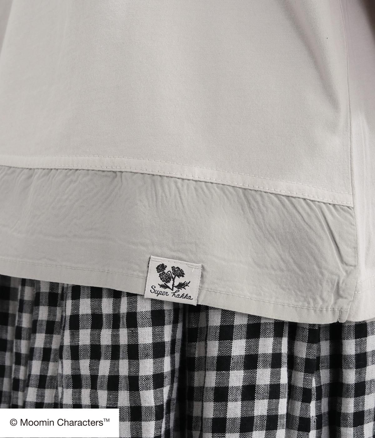 やわらかく軽やかなコットン天竺に、うしろ裾には透け感のある布帛をあしらいました。薄手で肌あたりが心地よく、プリントを美しく映します。一枚でも重ね着でも快適に着られる素材感です。