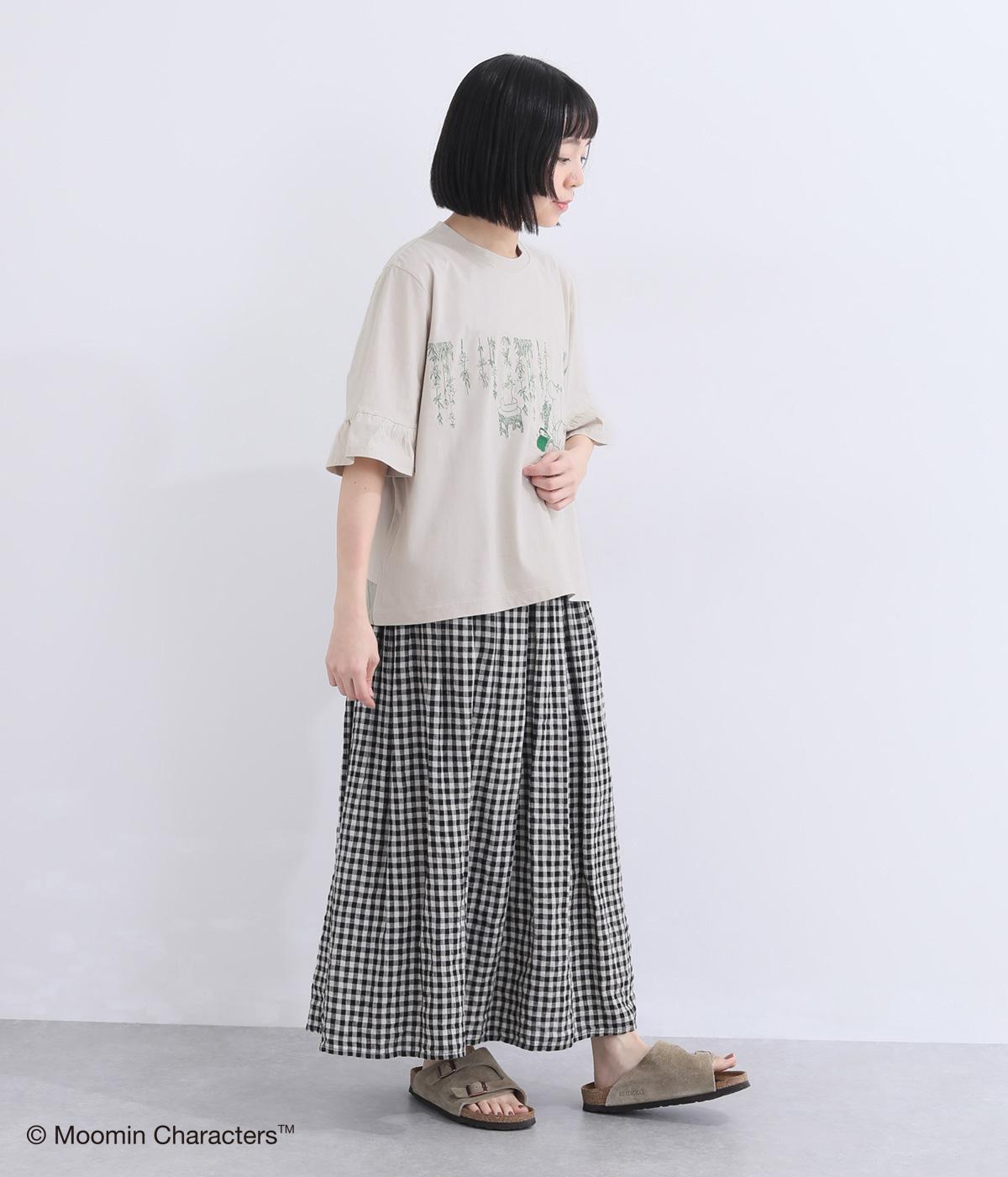 ムーミンママと植物の繊細な刺しゅうが愛らしいプルオーバーです。フェミニンなフレア袖や袖口の切り替えギャザーがさりげないデザインポイントに。ゆったりとしたシルエットでボトムスを選ばず着られる一枚です。