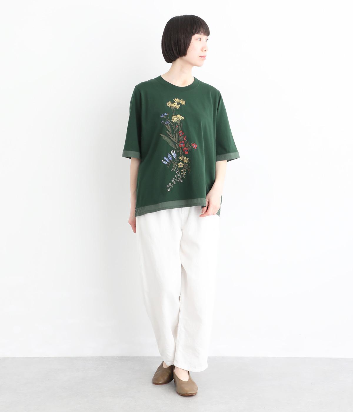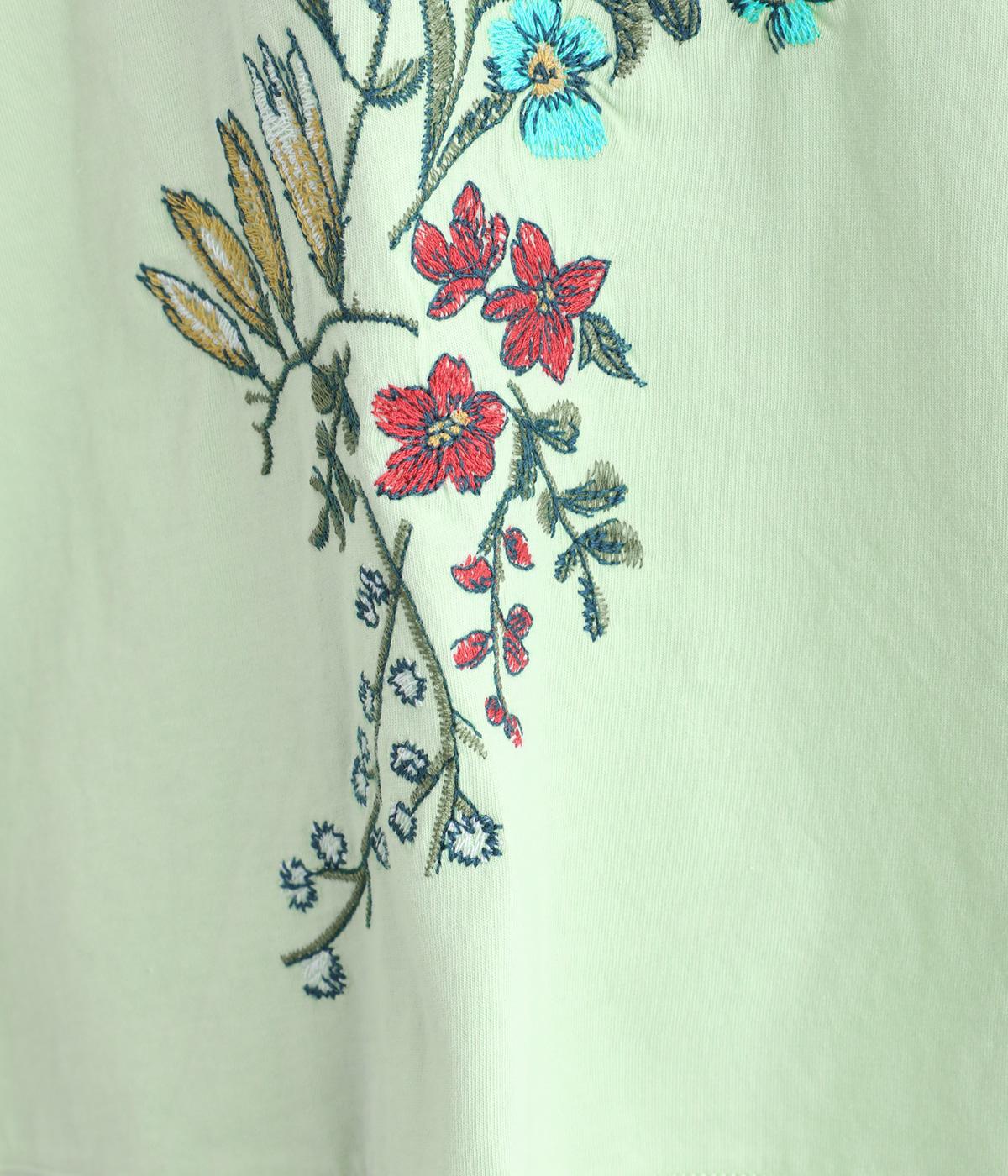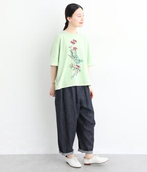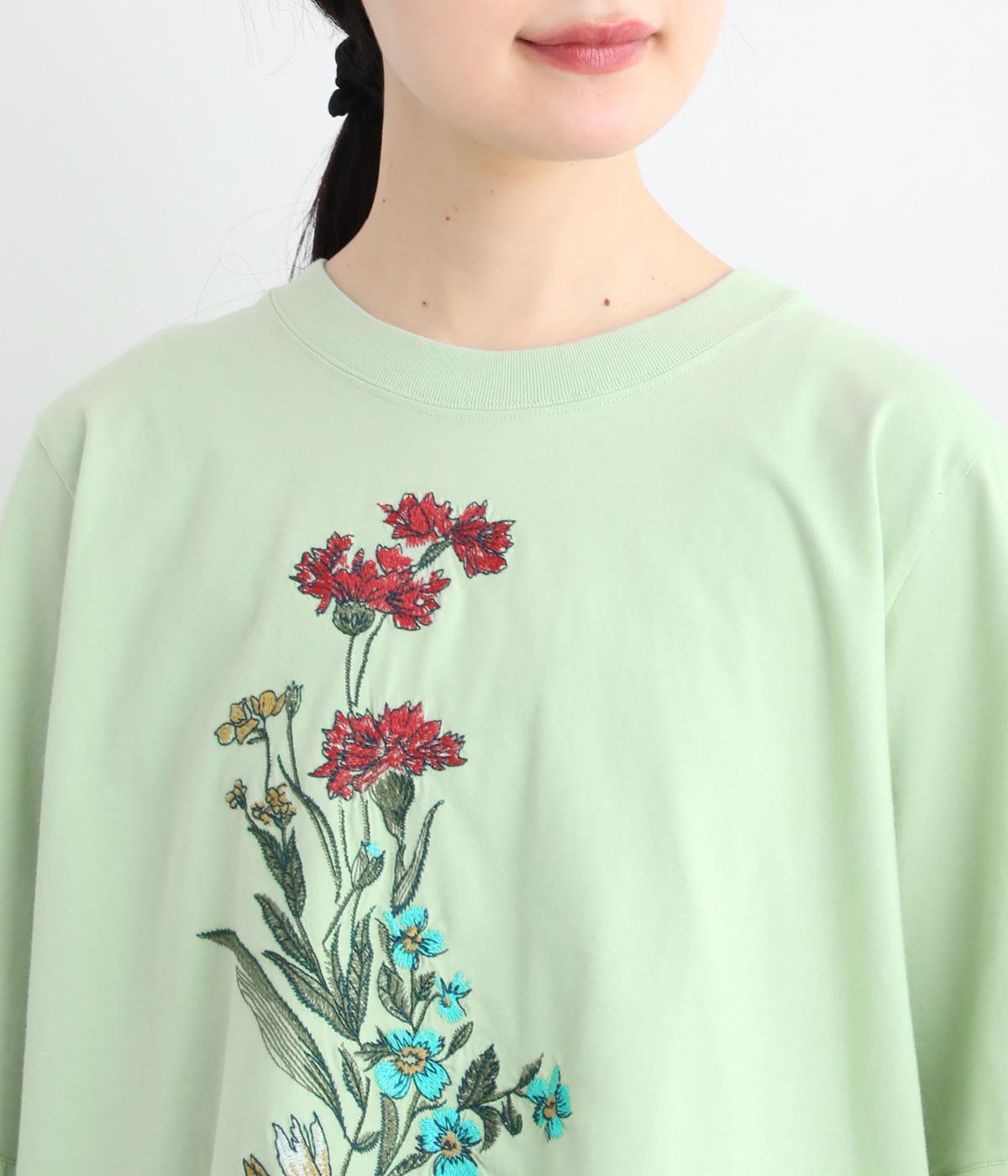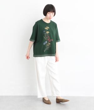 フロントに大きくあしらった花々の刺しゅうが目を引くプルオーバーです。鮮かな色づかいが映え、装いにほどよい華やかさを添えます。袖口や裾には別地を配し、さりげない変化をプラス。ややゆとりのあるシルエットが、軽やかな着こなしを叶えます。