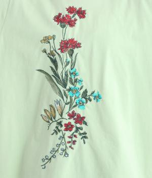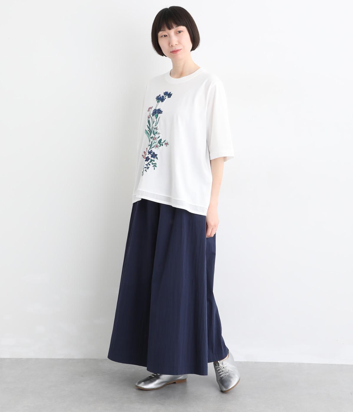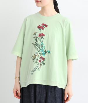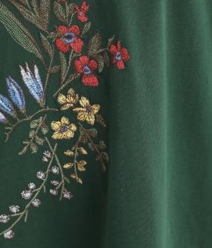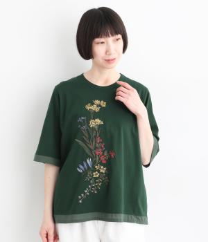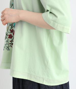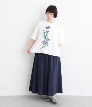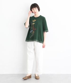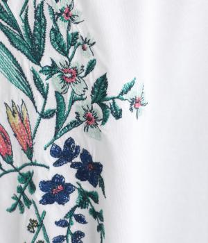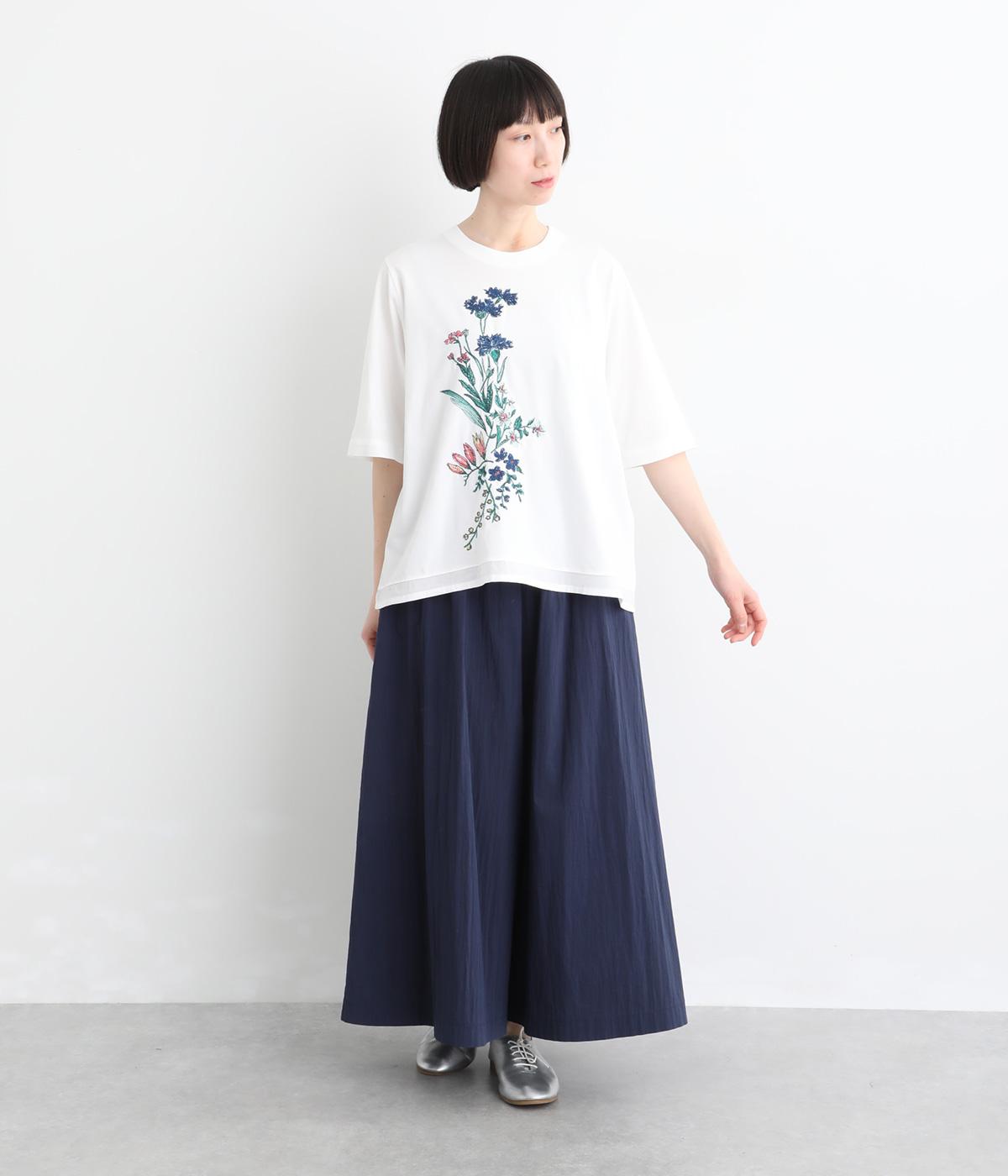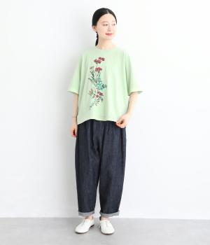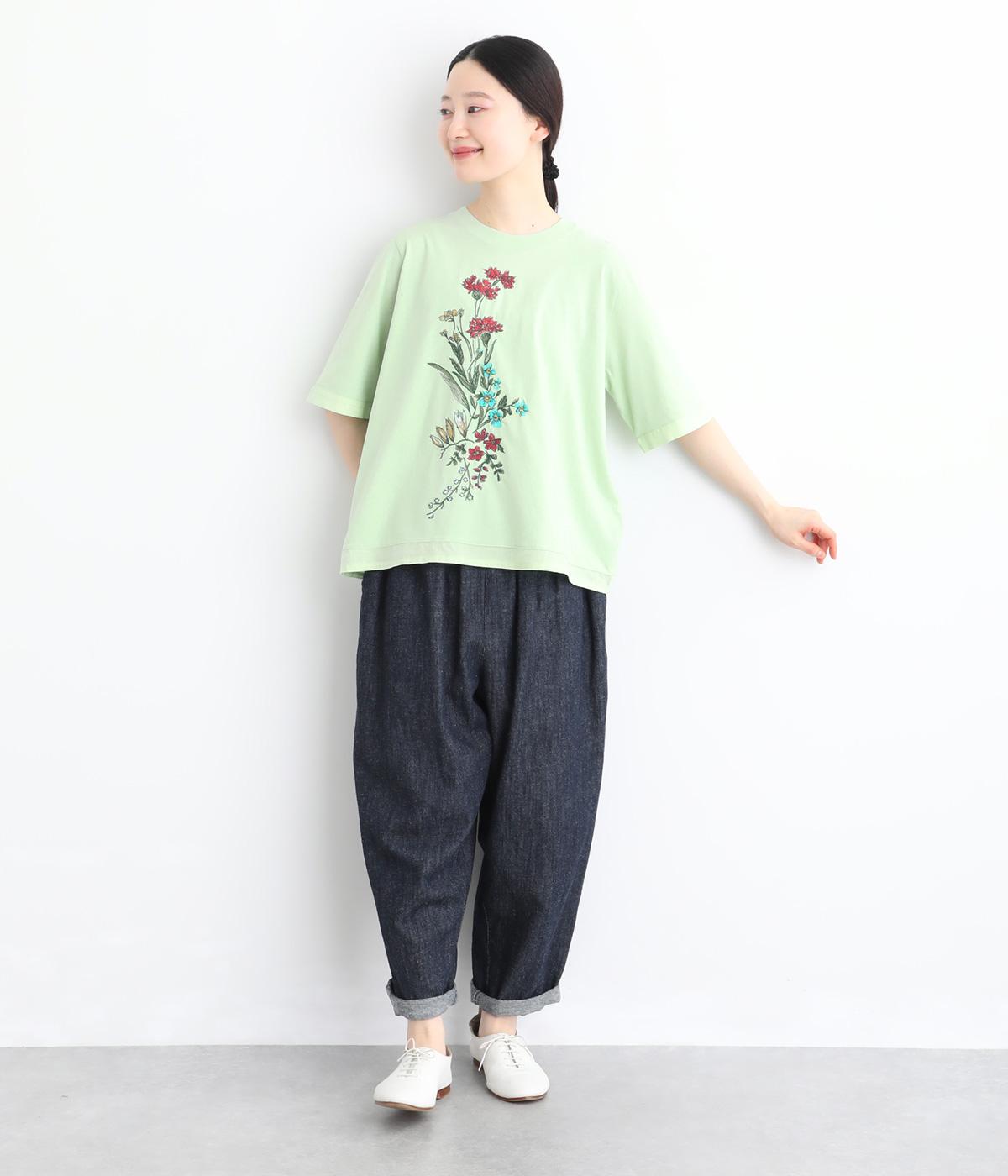 フロントに大きくあしらった花々の刺しゅうが目を引くプルオーバーです。鮮かな色づかいが映え、装いにほどよい華やかさを添えます。袖口や裾には別地を配し、さりげない変化をプラス。ややゆとりのあるシルエットが、軽やかな着こなしを叶えます。