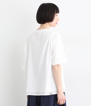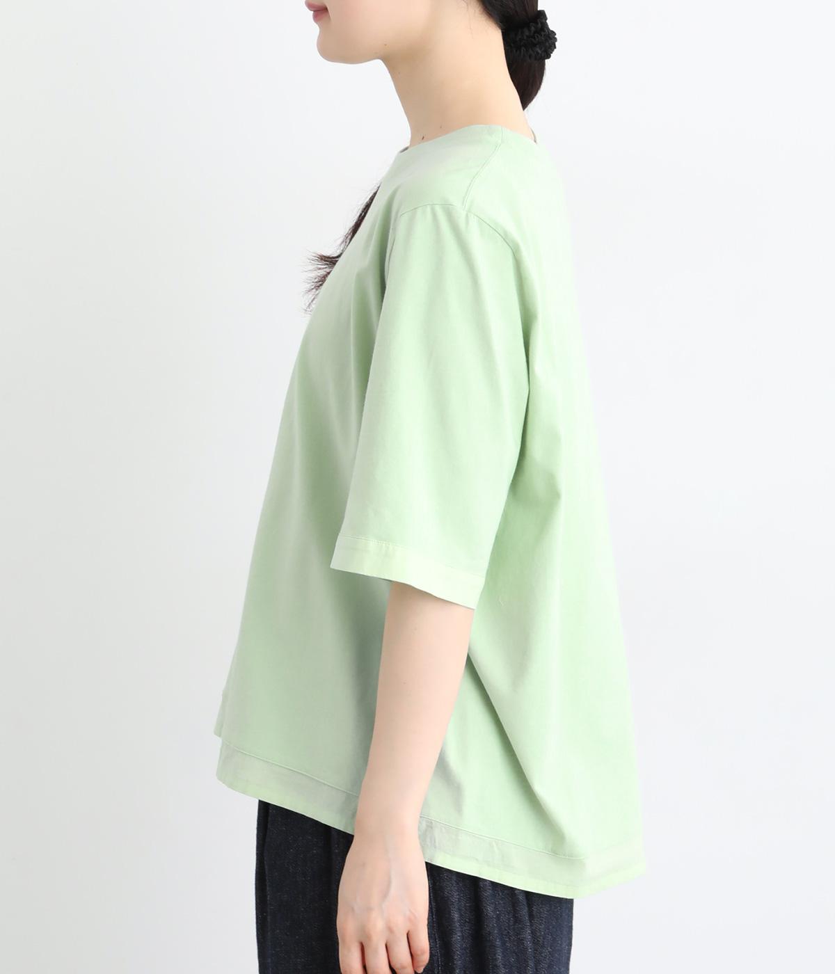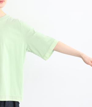 やわらかくしなやかなコットン天竺素材を使用しています。なめらかな肌ざわりと軽やかさが特徴で、やや薄手ながらも安心感のある着心地に。ほどよい伸縮性もあり、体の動きに寄り添います。