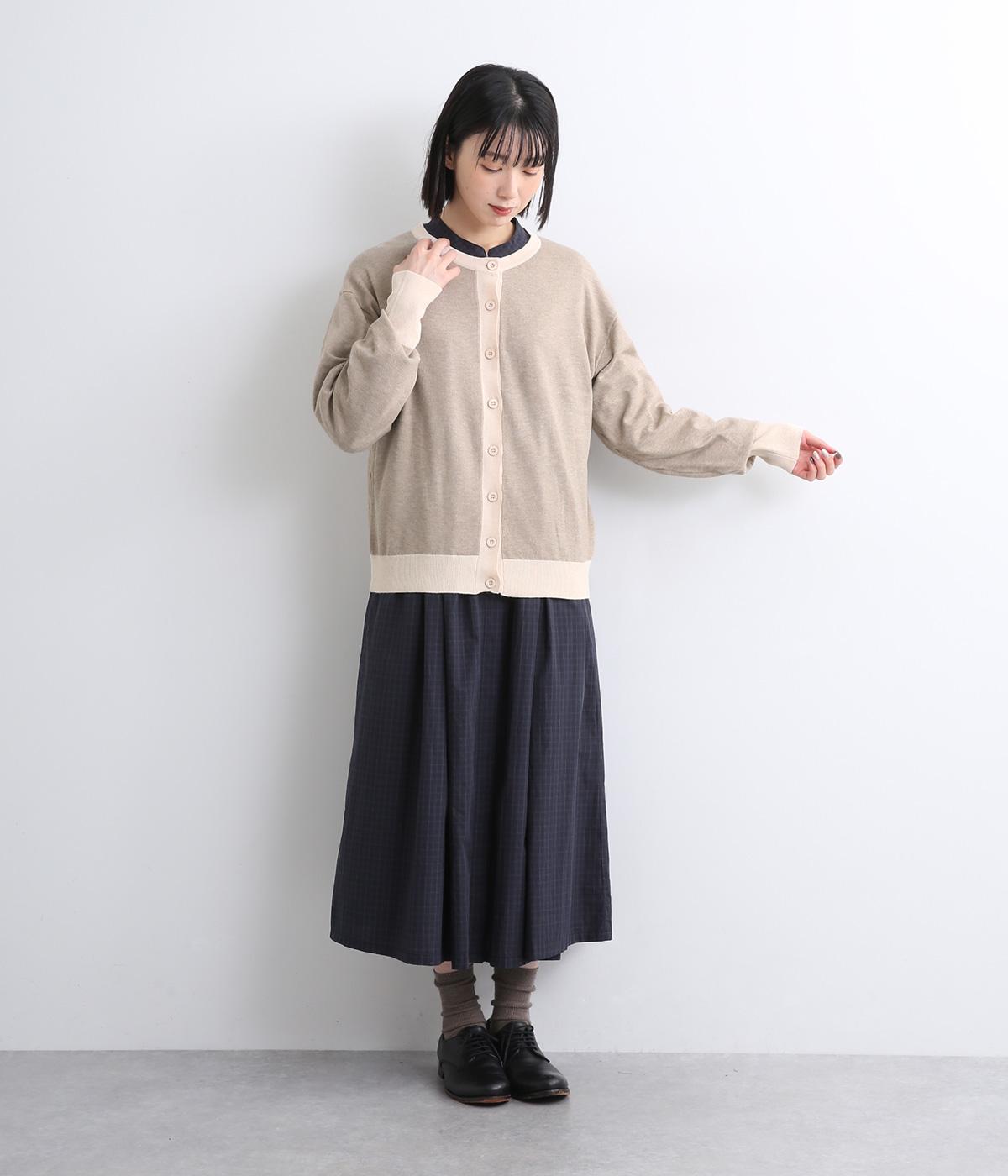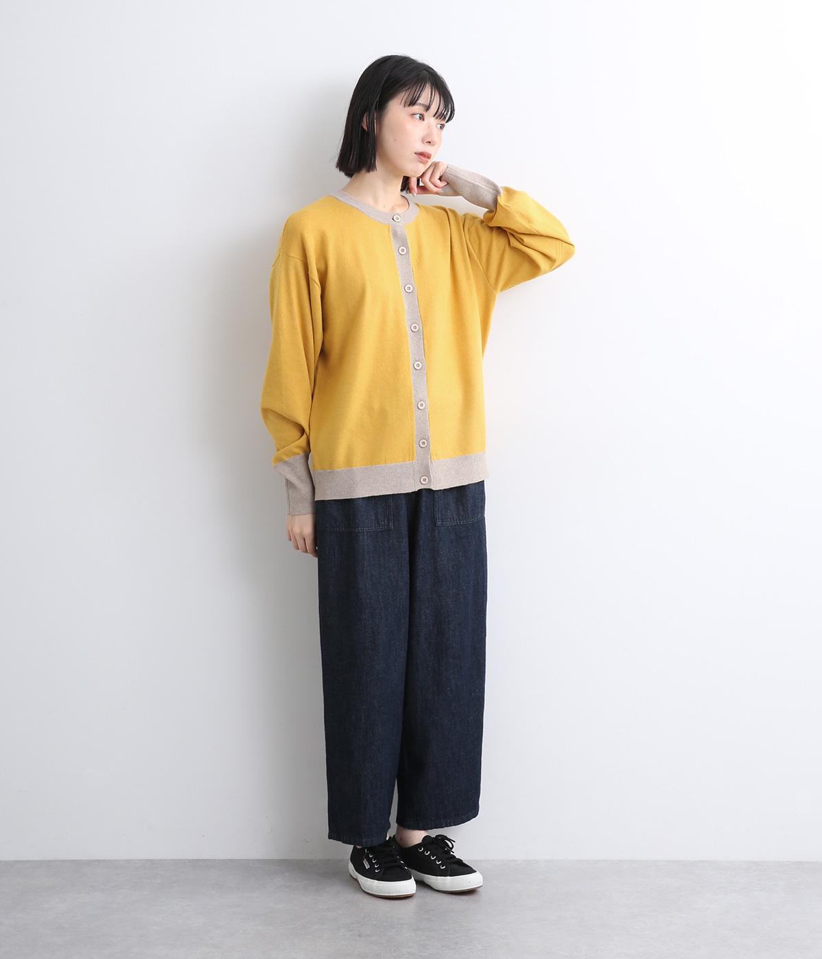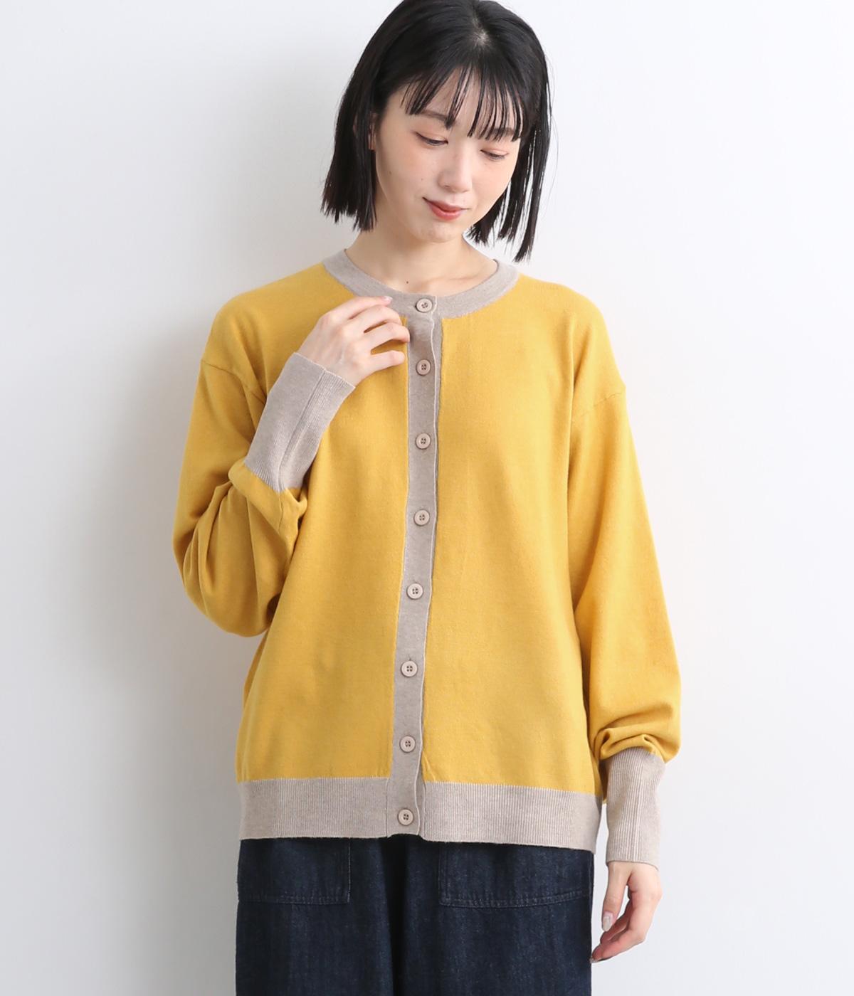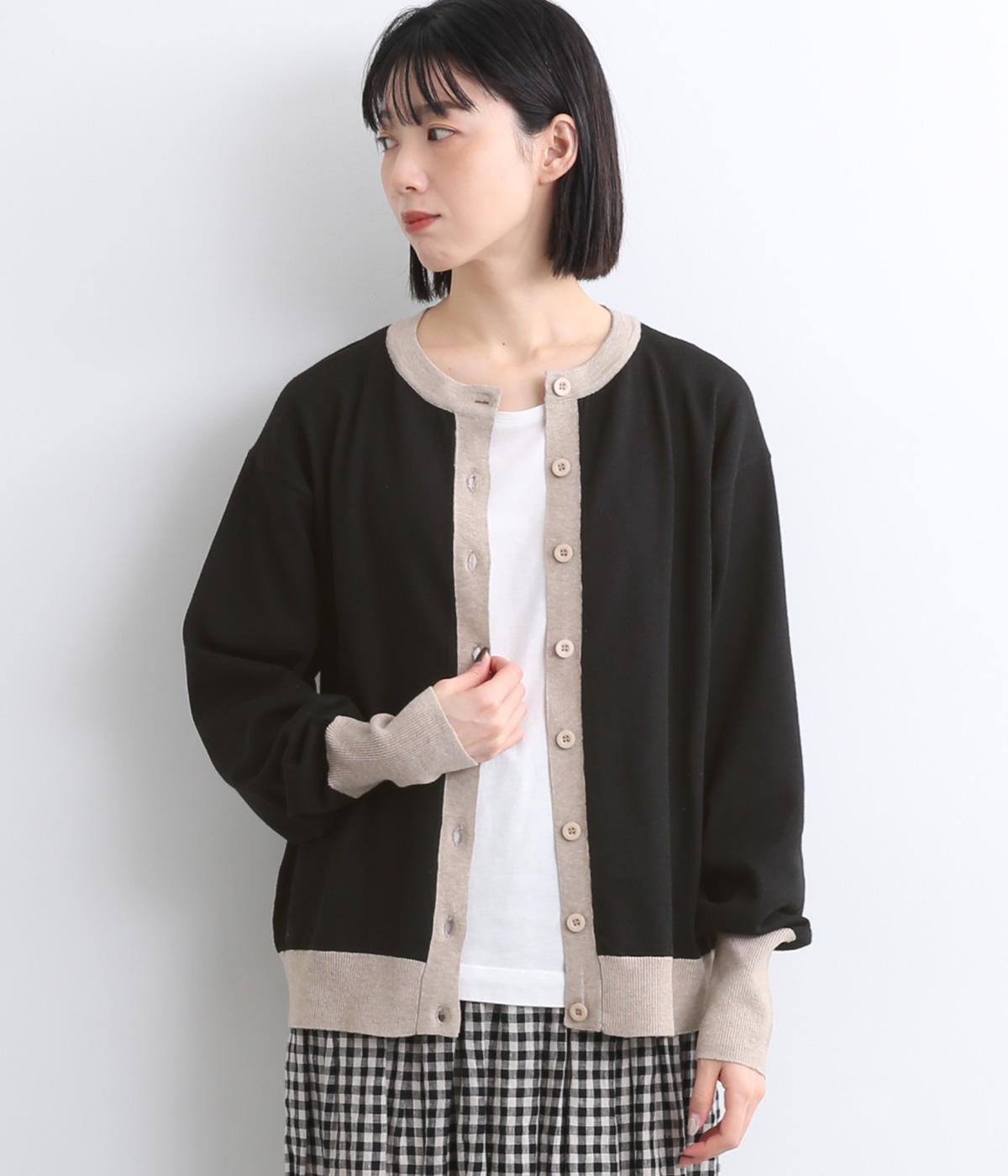 いつものスタイルに新鮮味をプラスしてくれる配色カーディガンです。さりげなく印象を変えられるカーディガンは季節の変わり目に重宝する一枚です。前を閉めてトップスとして着るのもおすすめです。