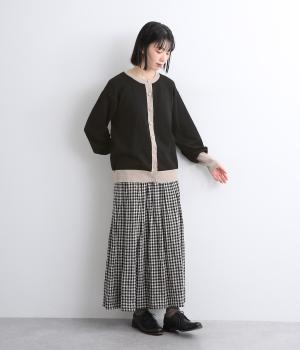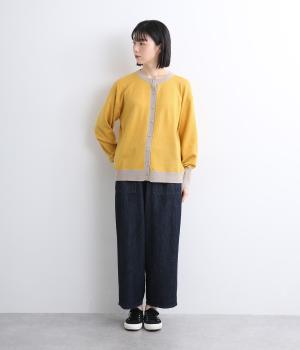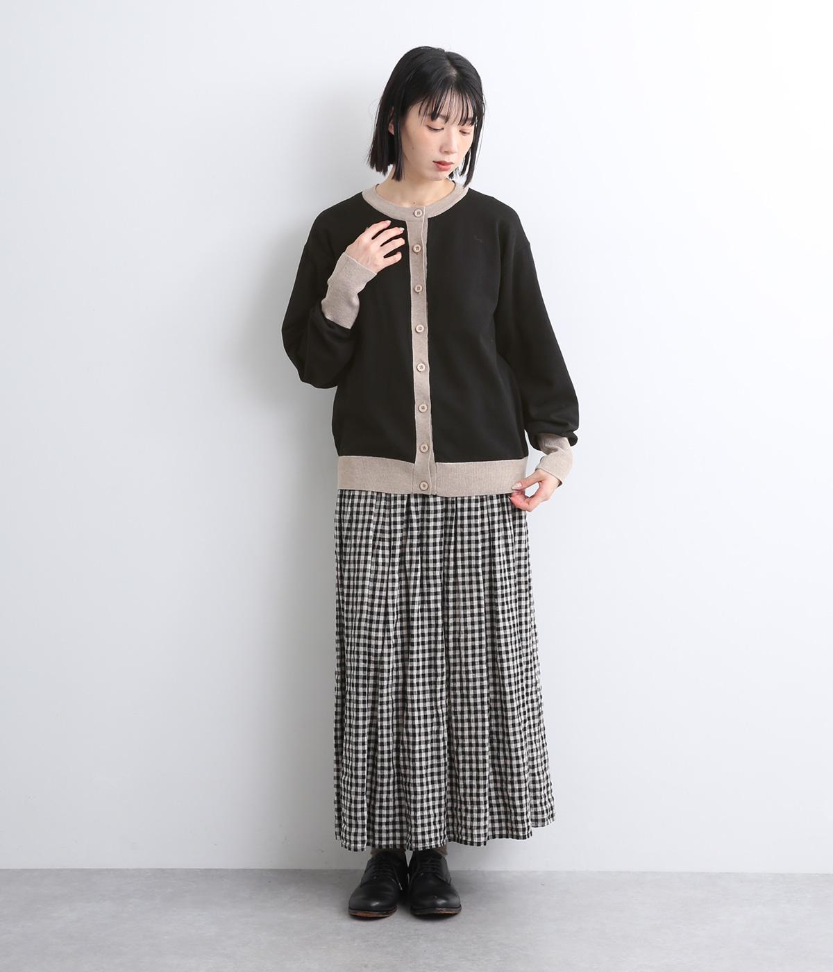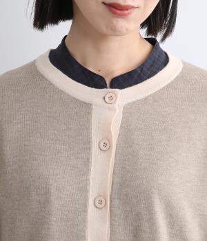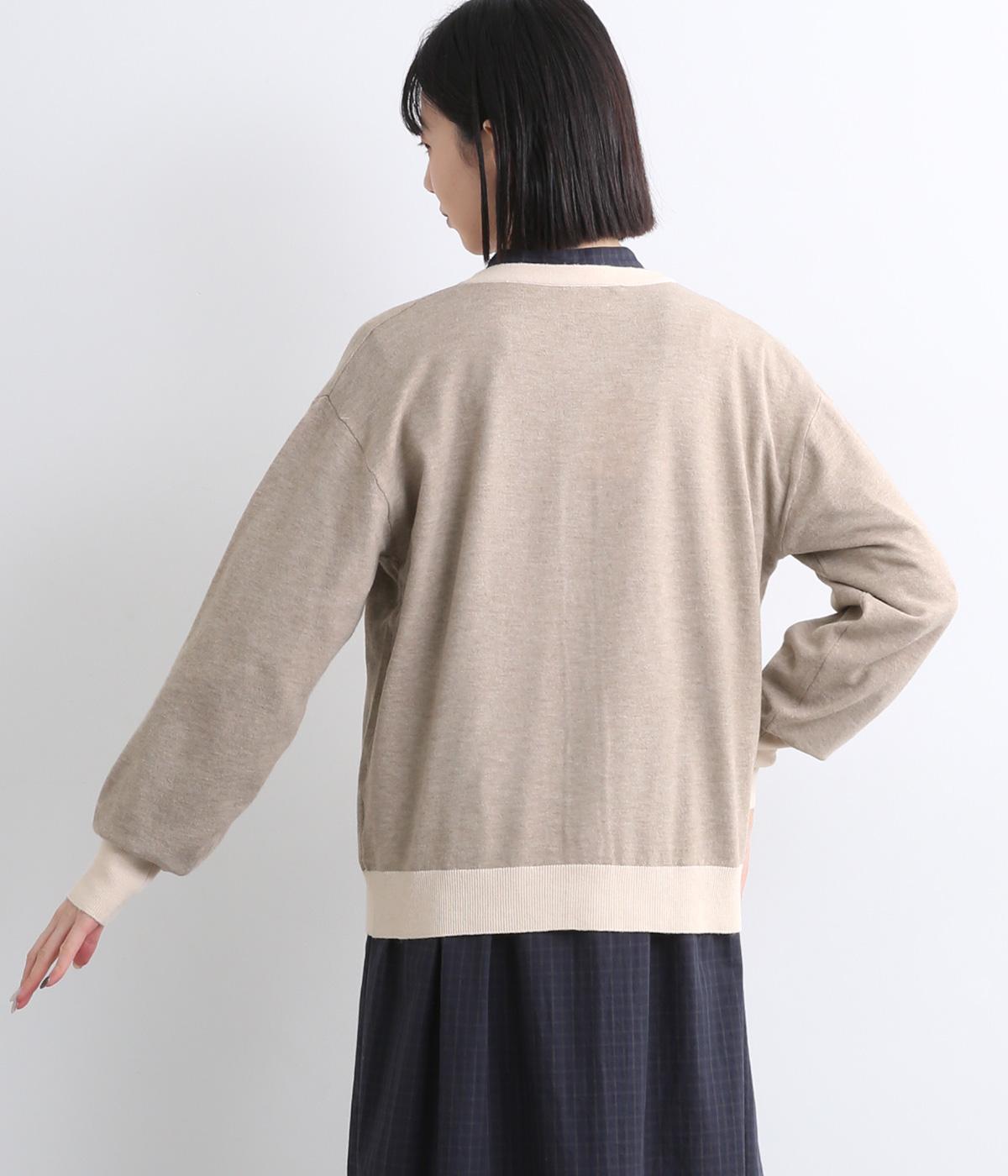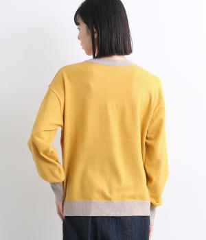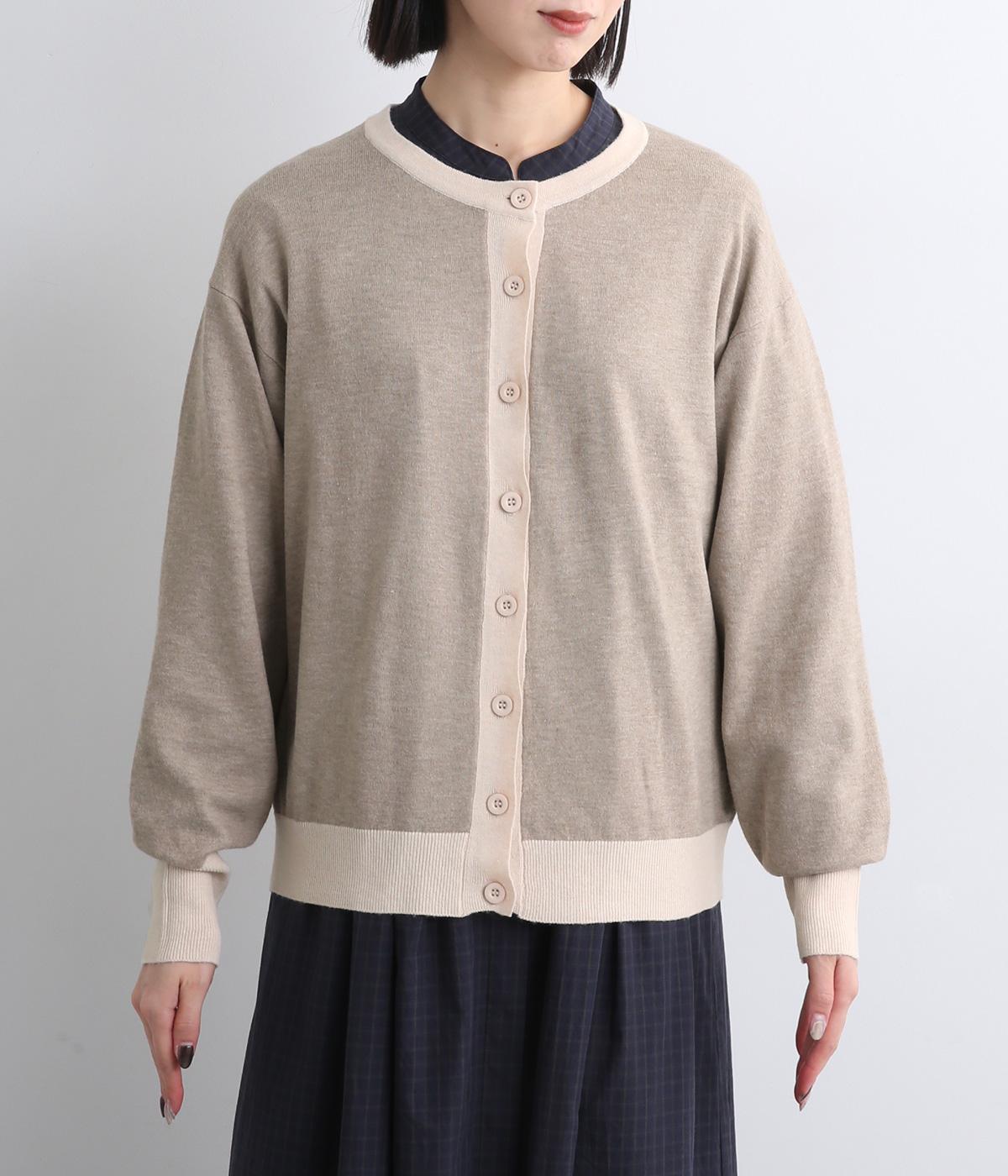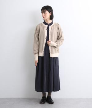 いつものスタイルに新鮮味をプラスしてくれる配色カーディガンです。さりげなく印象を変えられるカーディガンは季節の変わり目に重宝する一枚です。前を閉めてトップスとして着るのもおすすめです。