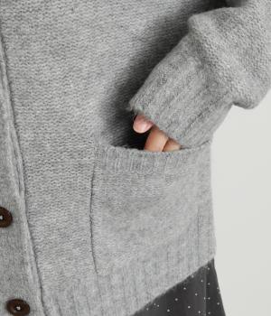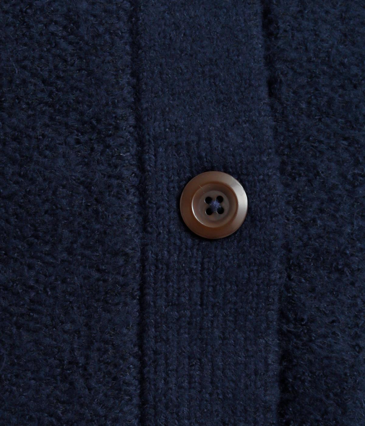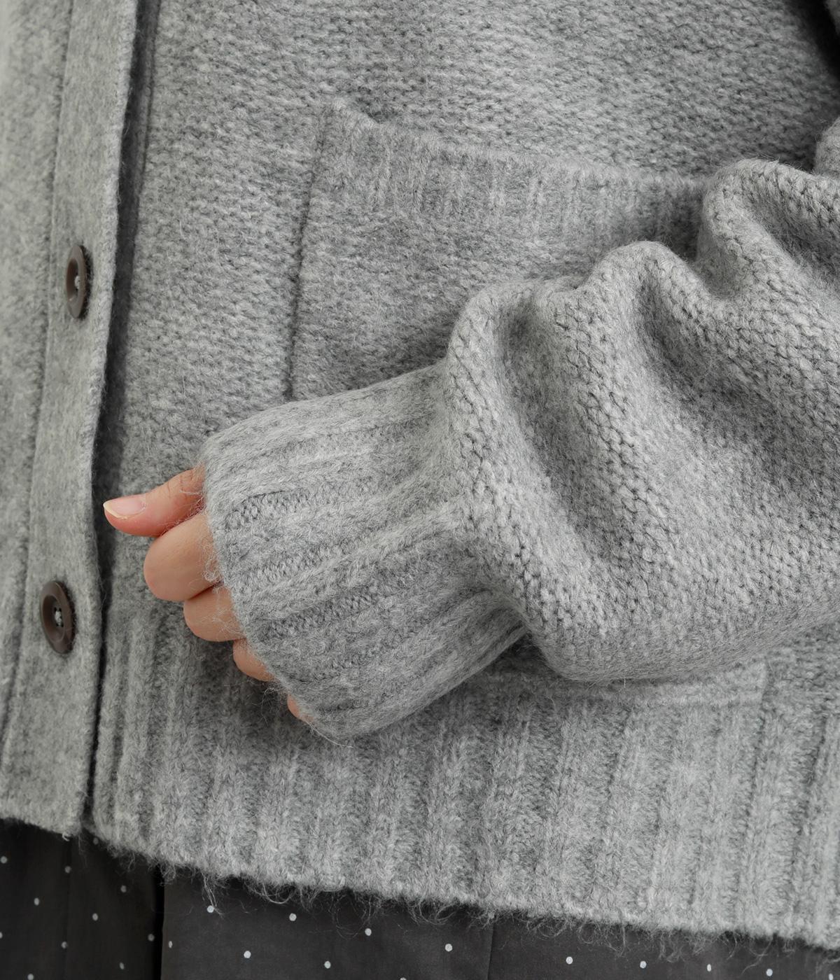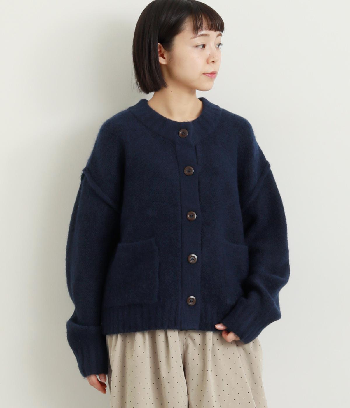 やさしい風合いのニットに、存在感のあるボタンとポケットをあしらったカーディガン。首元をすっきりと見せるモックネックが、ナチュラルさのなかに上品な印象を添えます。シンプルなフォルムで、カジュアルからきれいめまで幅広いコーディネートに着まわせるアイテムです。