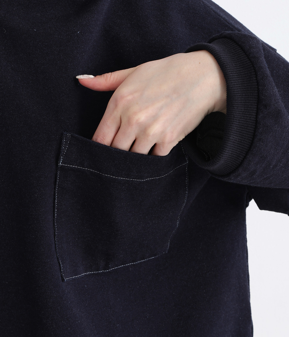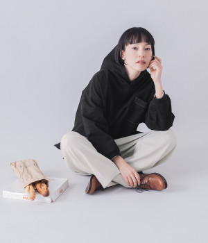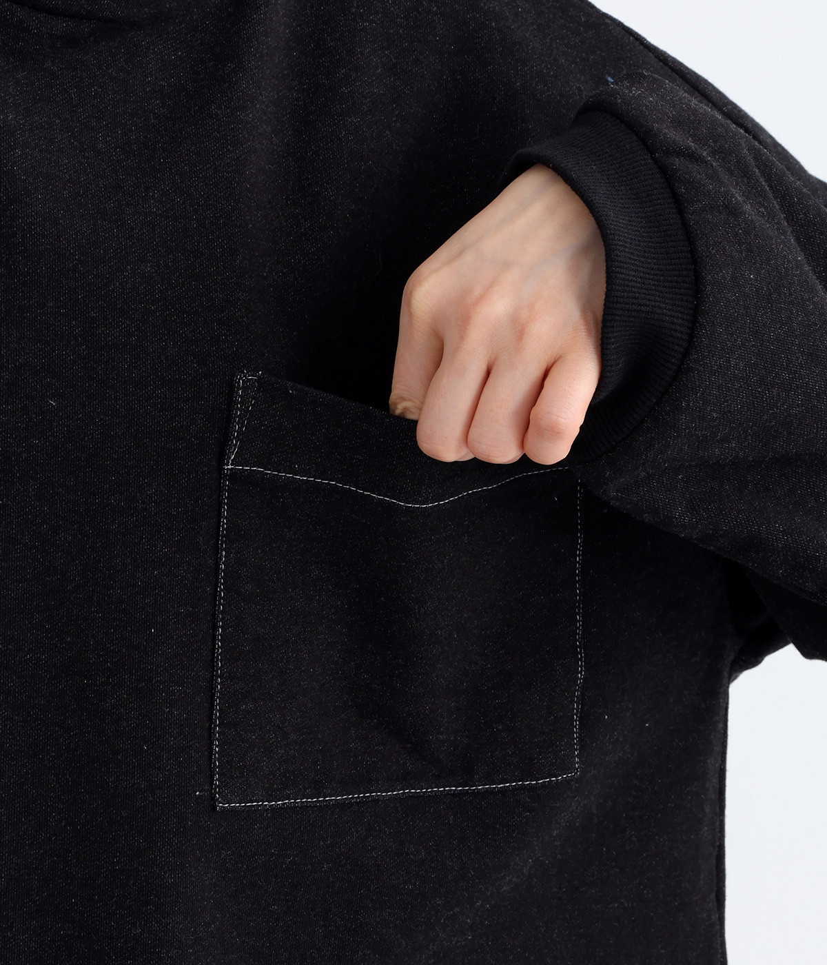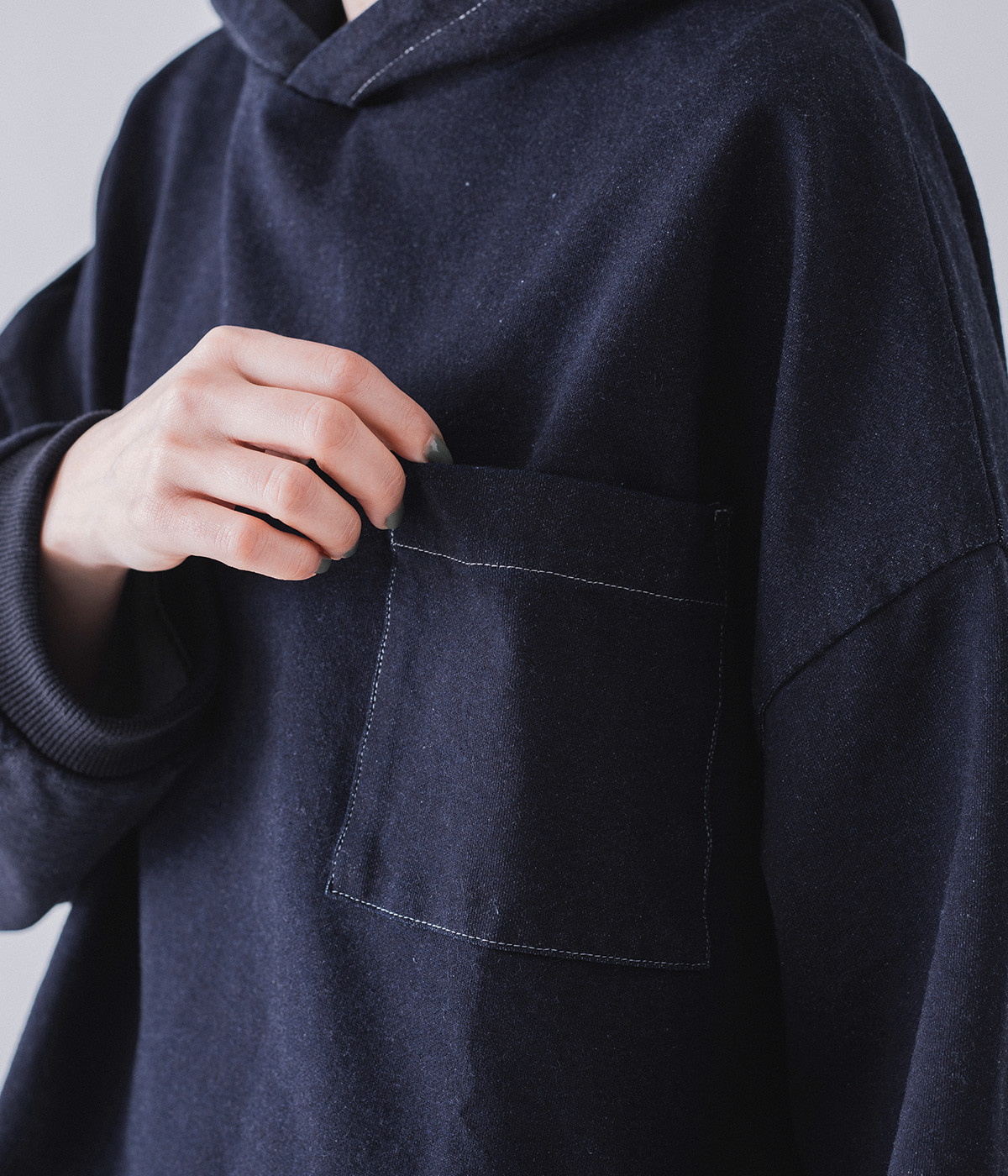 大きな胸ポケットがアクセント。裾と袖口はリブ仕立てにしてメリハリを演出し、ボリューミーなワイドシルエットをすっきりと見せてくれます。コーディネートに取り入れやすく、存在感を発揮するのが優秀。