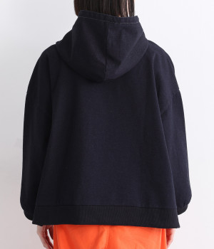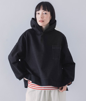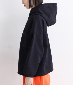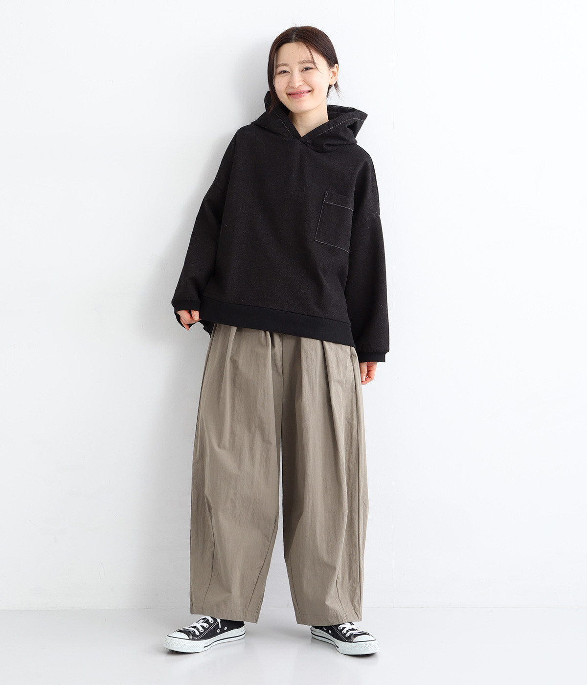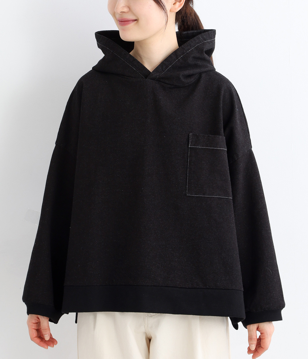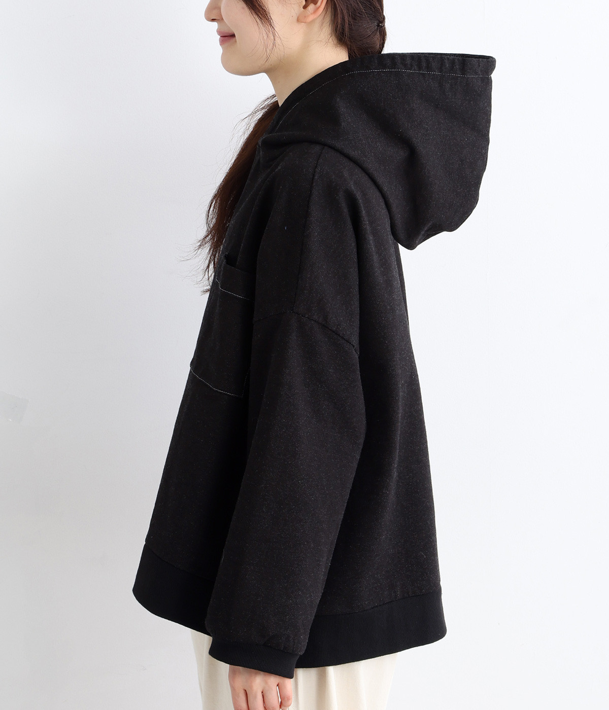 大きな胸ポケットがアクセント。裾と袖口はリブ仕立てにしてメリハリを演出し、ボリューミーなワイドシルエットをすっきりと見せてくれます。コーディネートに取り入れやすく、存在感を発揮するのが優秀。