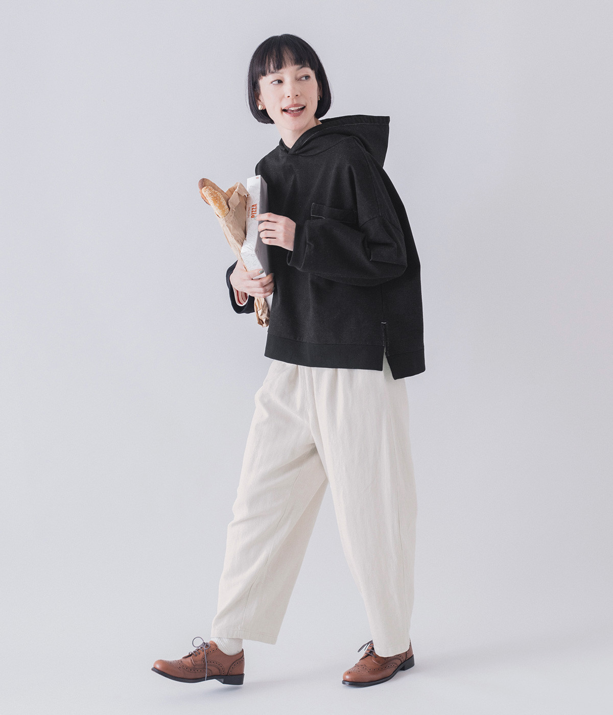 カジュアルムードをさり気なく取り入れられる裏毛デニム素材。デニムらしさをキープしつつも身軽く、デイリースタイルに合わせやすいスウェットライクな着心地が特徴です。