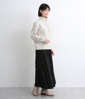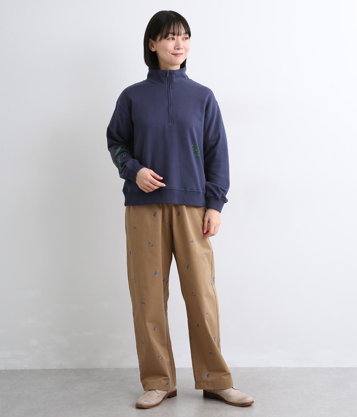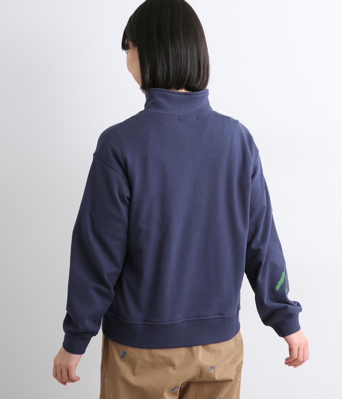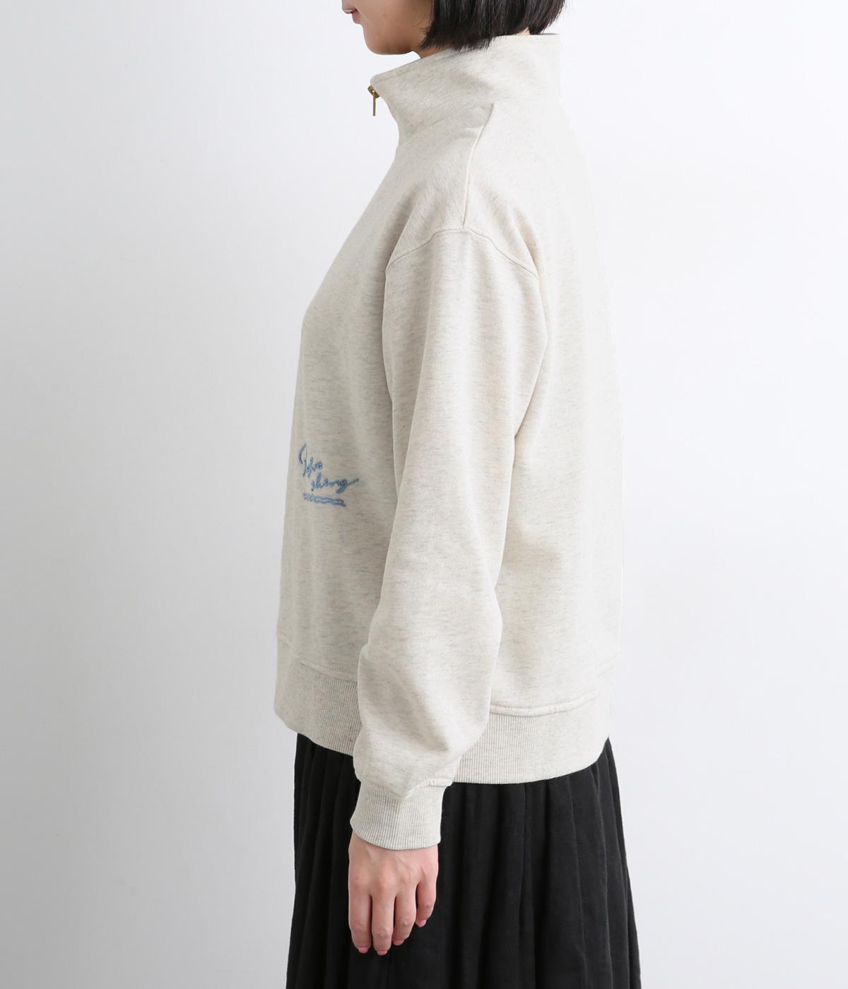 定番のハーフジップに個性的なアクセントを添え、トレンド感のある仕上がりに。ジップを上まで上げてハイネックにしたり、開けて襟を折り返したりと、さまざまな着方を楽しめます。味わい深いHORSE刺しゅうがポイントです。
