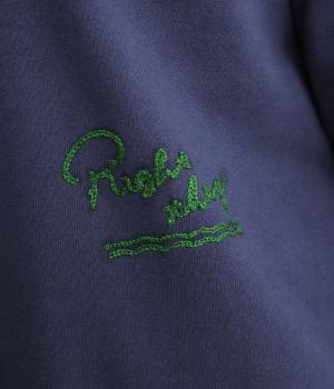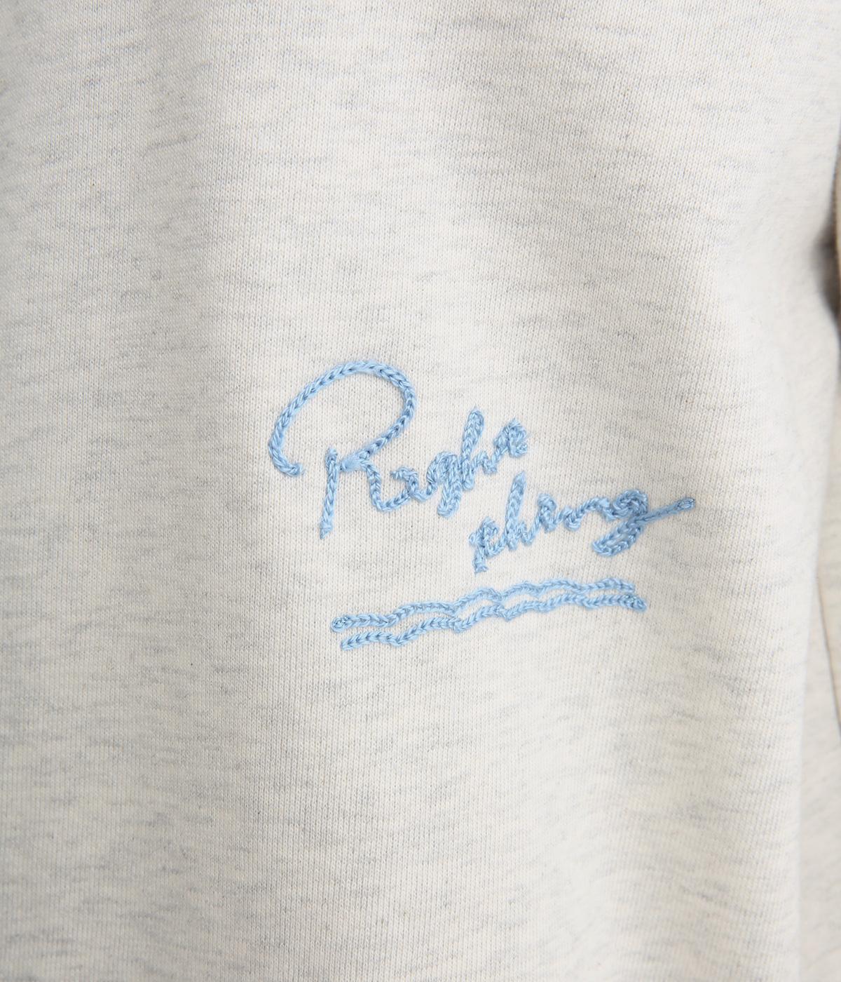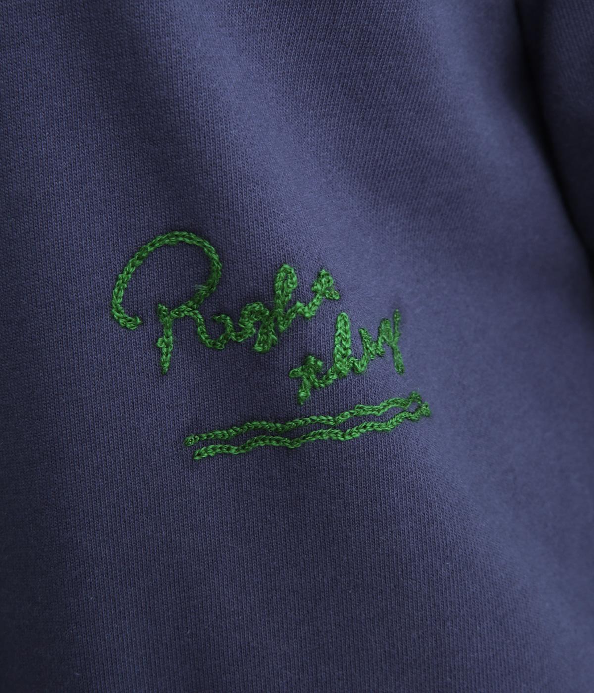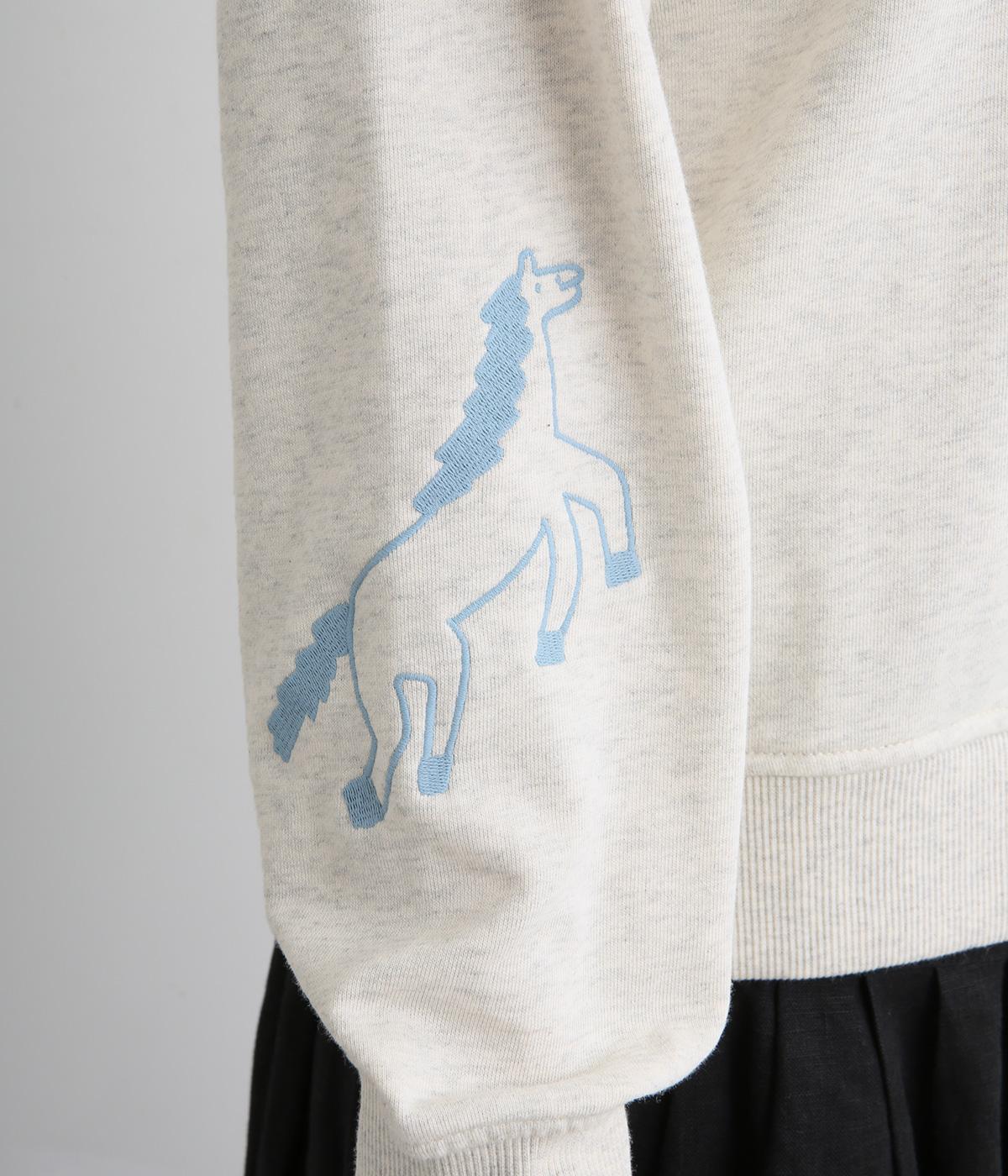 ふんわりとソフトな手ざわりが心地いい裏毛素材を使用しました。扱いやすく、デイリー使いにぴったりな素材感です。身頃のロゴと右袖の馬は刺しゅうであしらいました。
