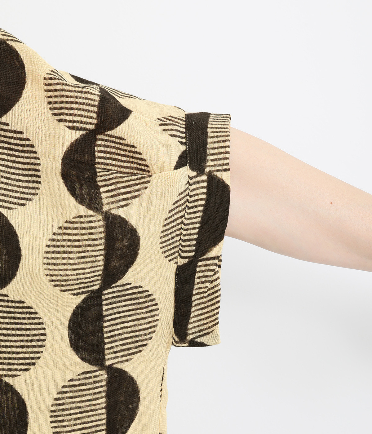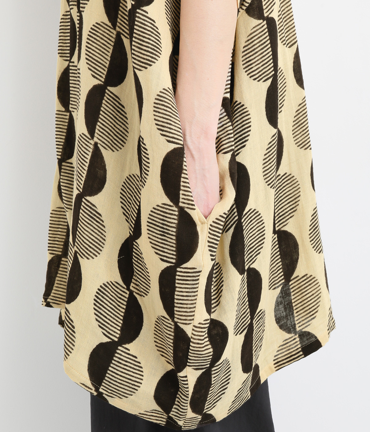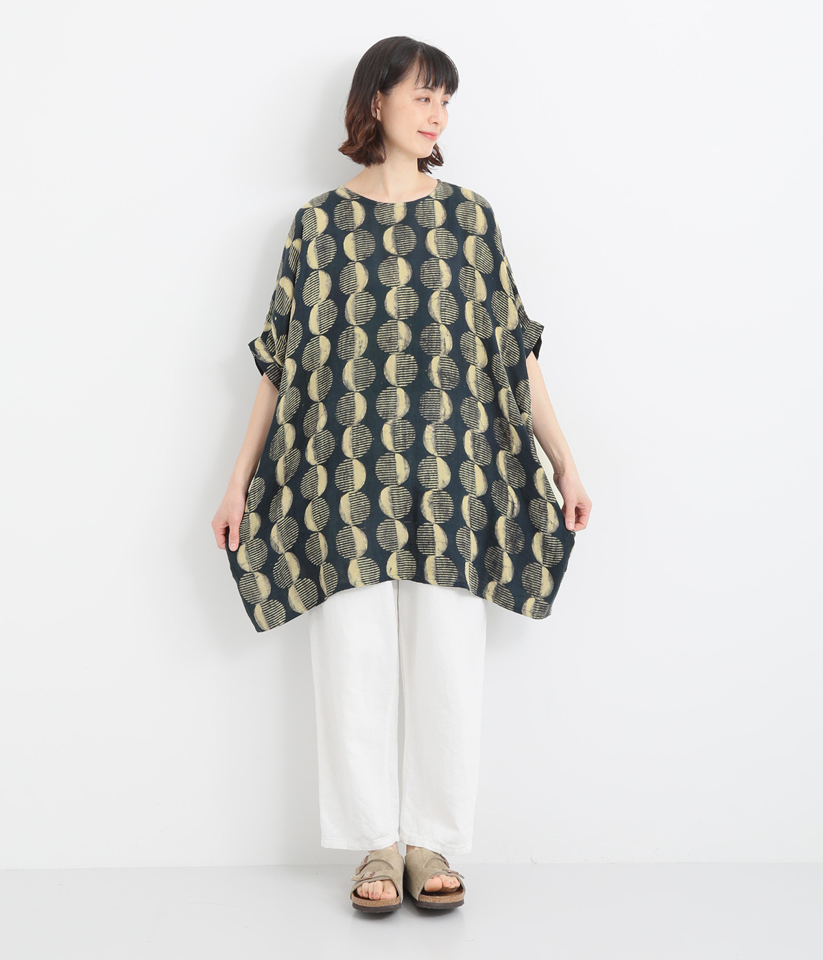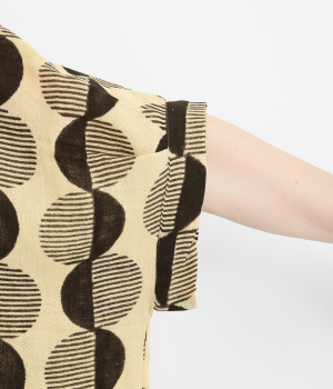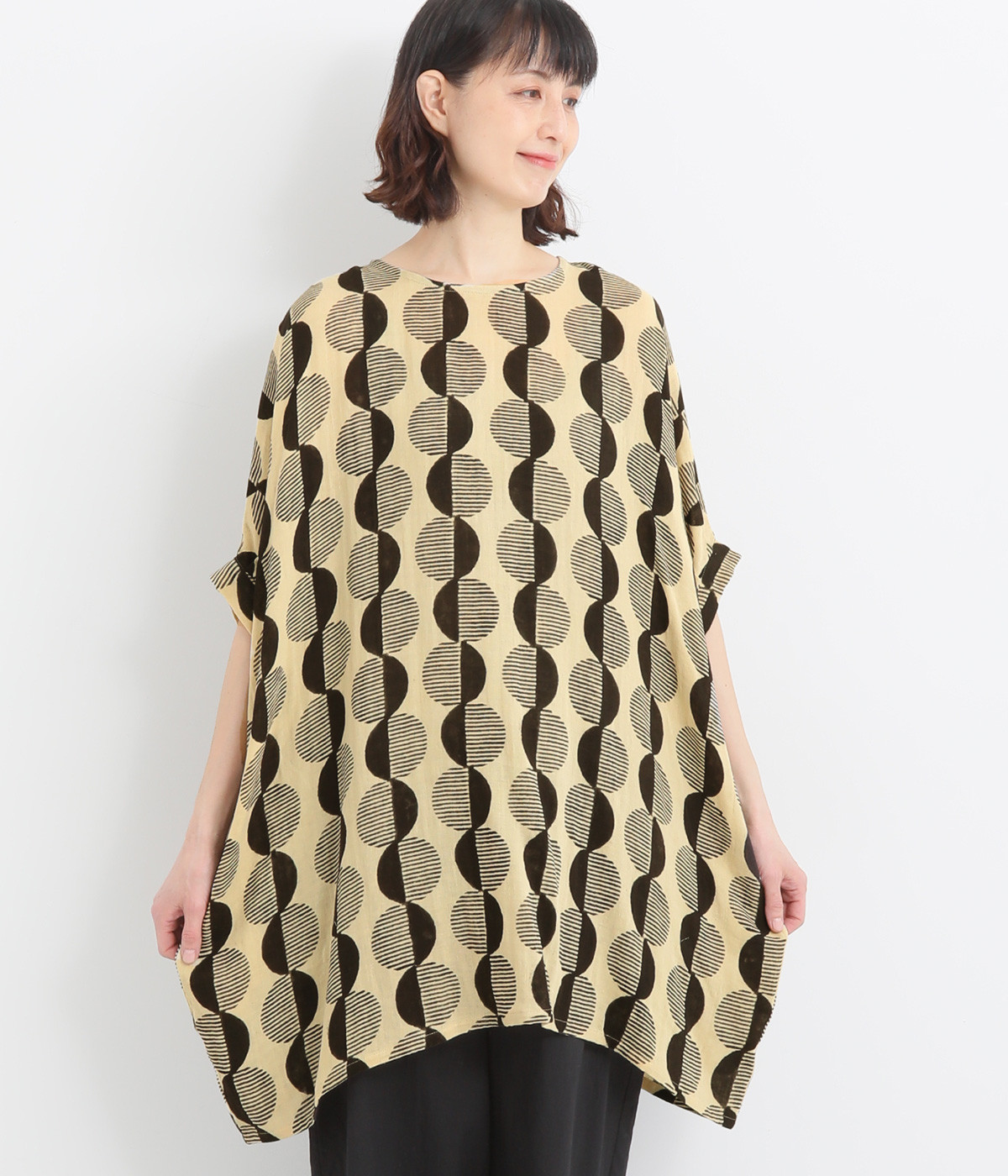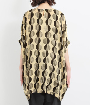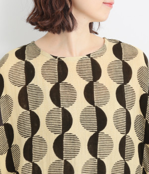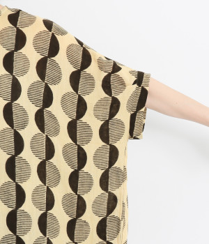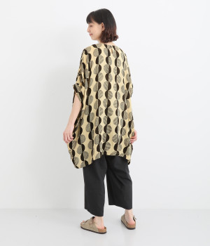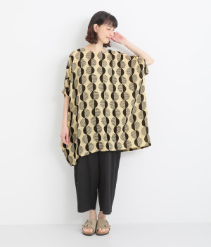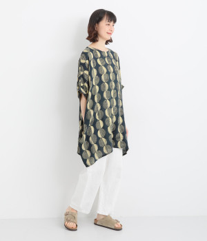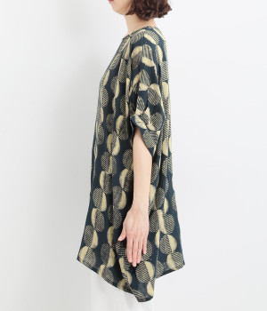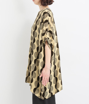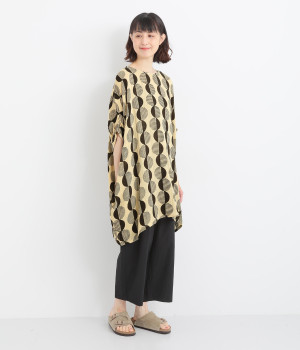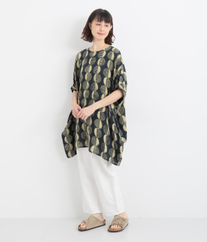 特徴的なテキスタイルを活かして、ゆったりとしたチュニックを仕立てました。体のラインを拾いにくいシルエットで、着心地も快適です。自然に泳ぐ裾が優雅でこなれた印象をもたらします。