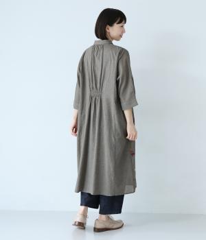 たくさんの個性豊かなランプをデザインした、立体感のある刺しゅうが目を引くシャツワンピースです。ゆとりを持たせたシルエットをすっきりと引き締める、後ろウエストに入れたシャーリングが◎。薄手の生地なので、パンツなどとのレイヤードも軽やかに決まります。