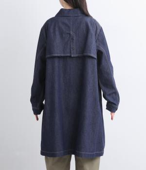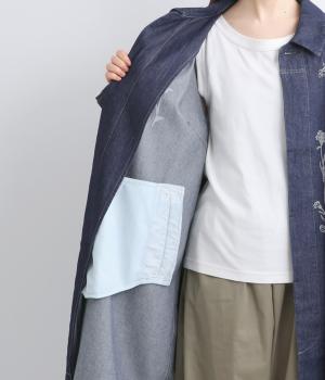 ほどよい厚さながら830gと軽量なコットンデニムとツイルで仕立てました。しなやかなハリがシルエットをきれいに描き、かたさの少ないソフトな肌ざわりで羽織りやすい素材感です。